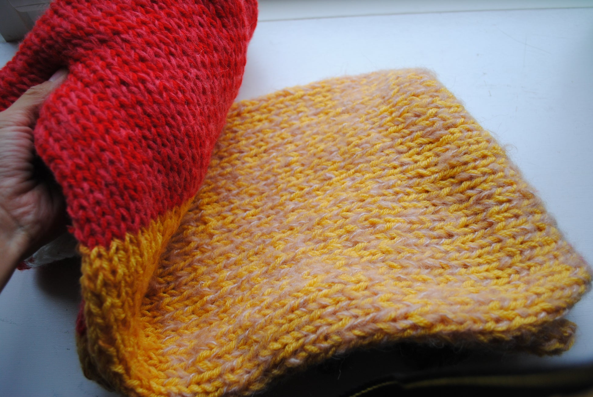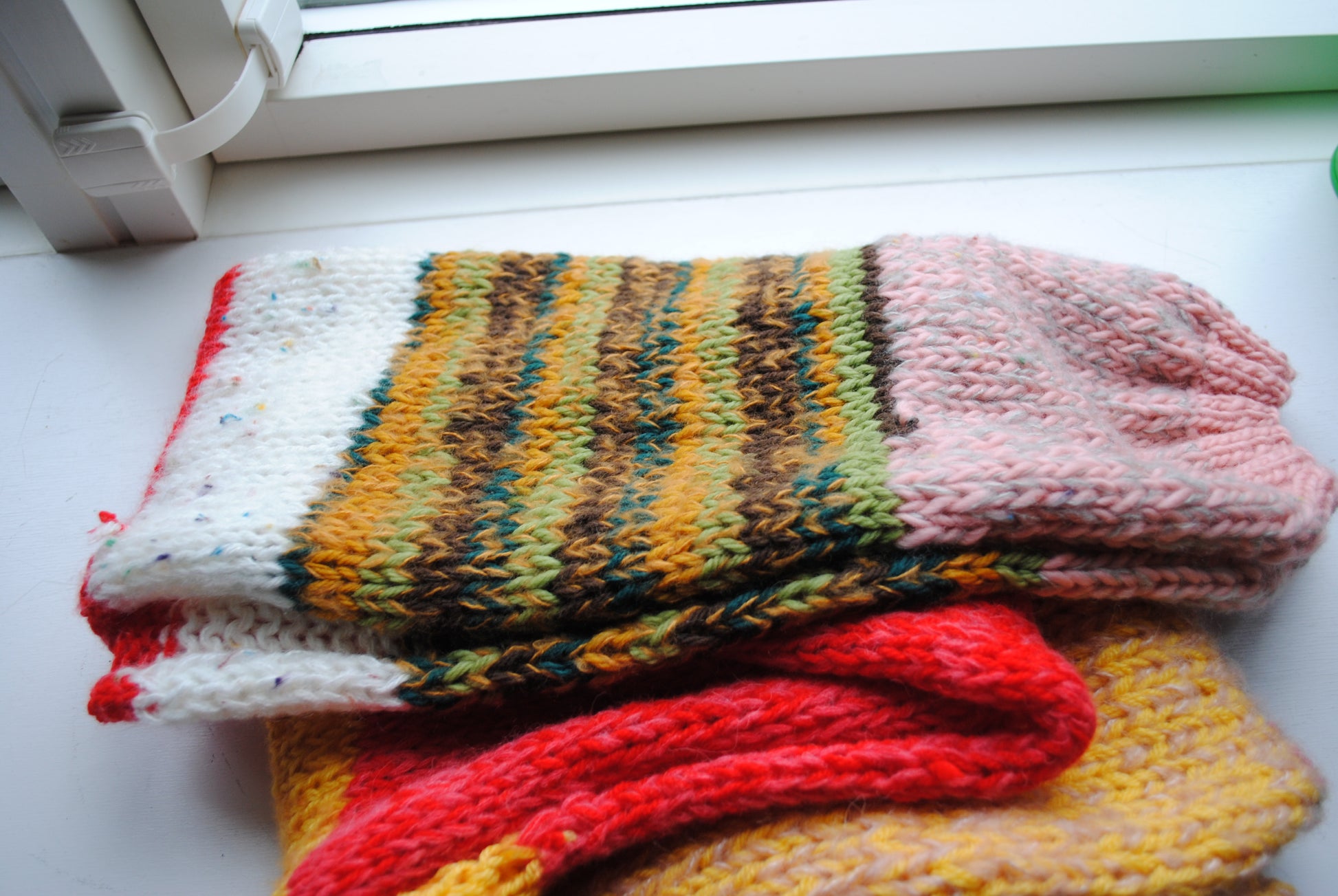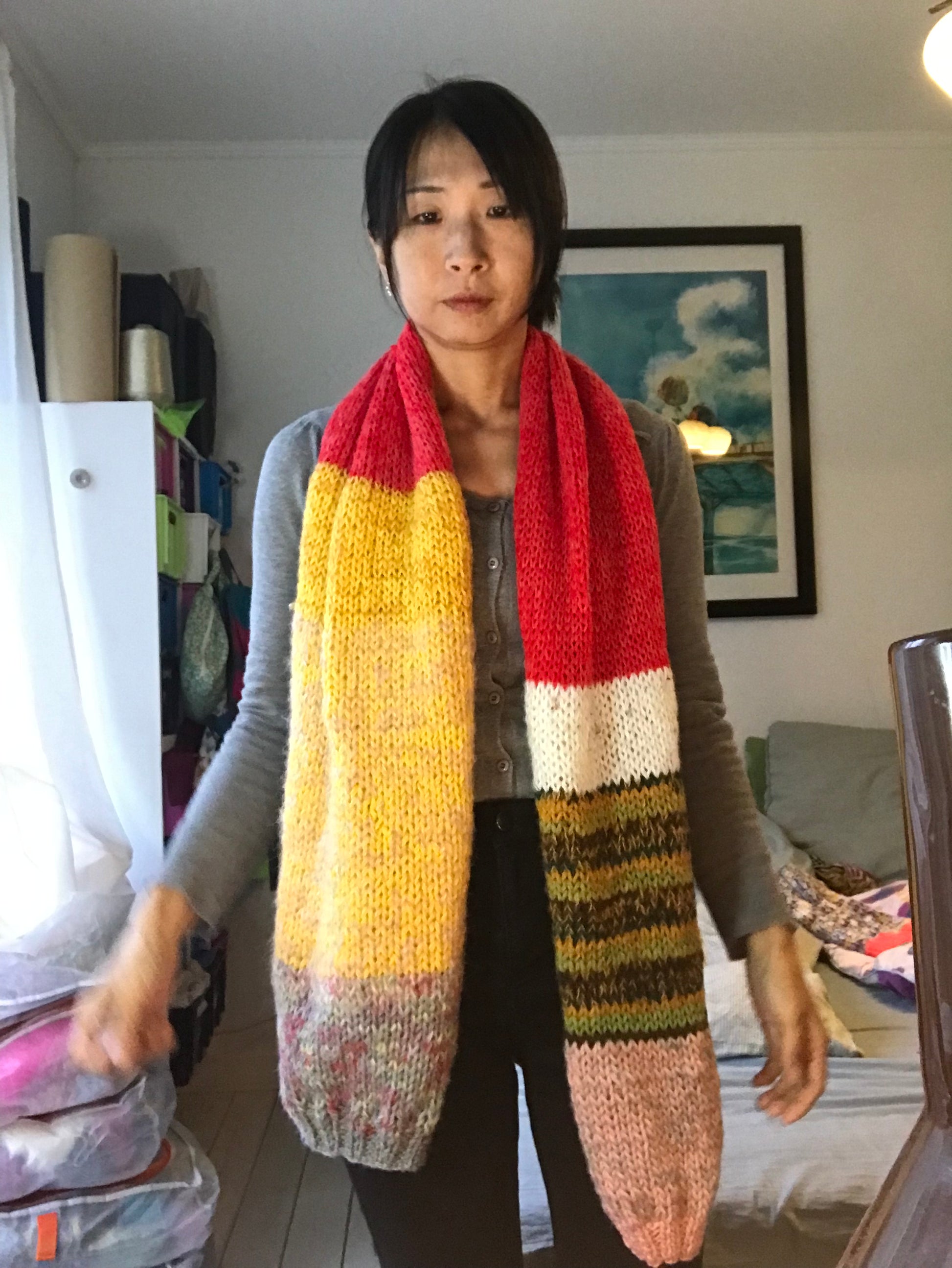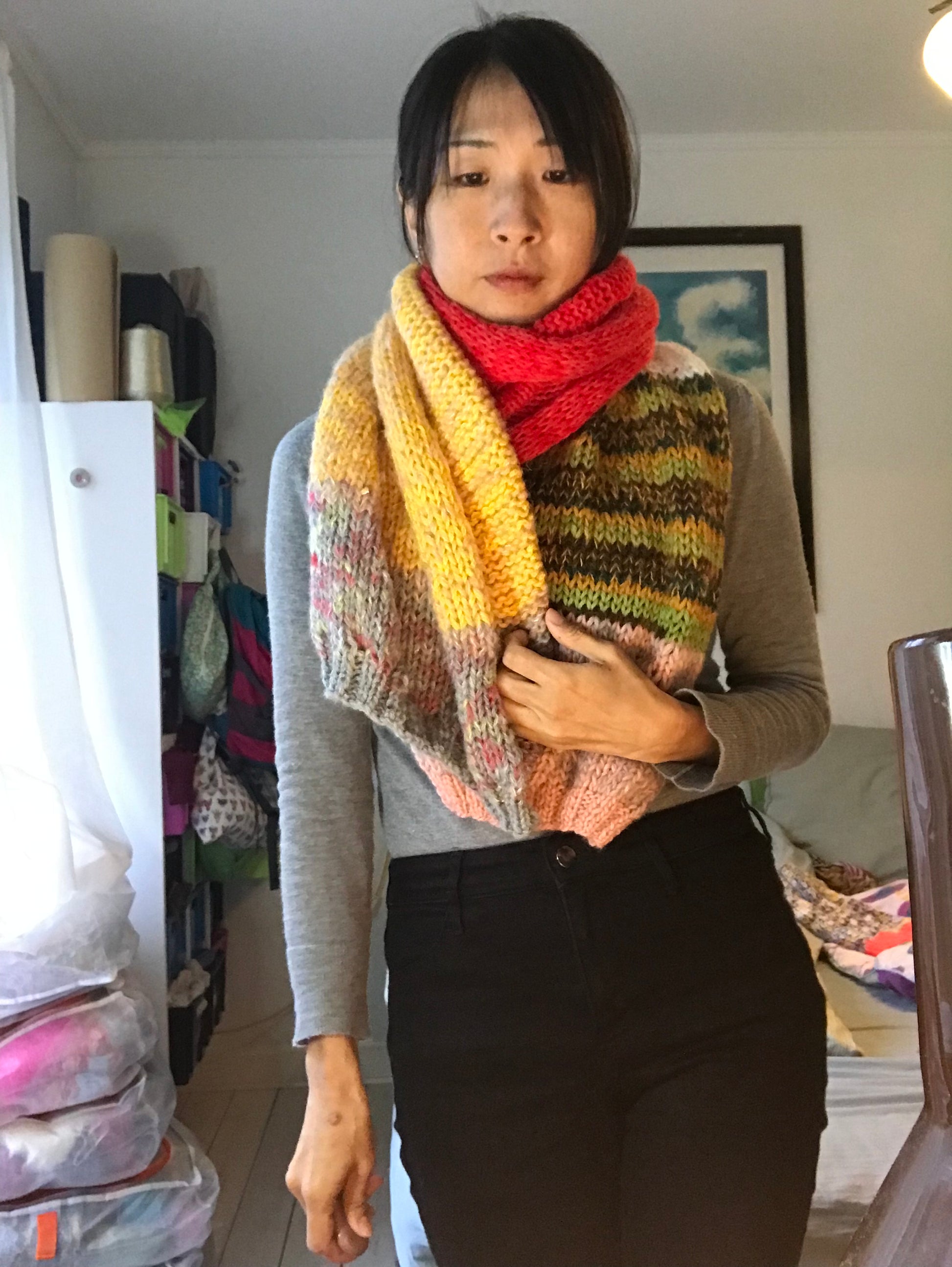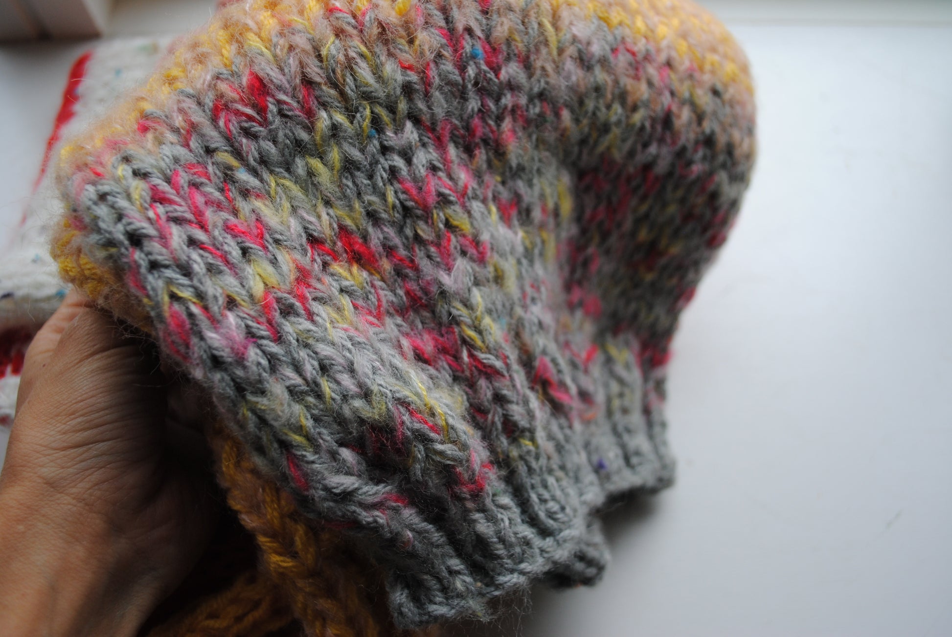 Jeg lavede en snood i verden ved hjælp af forskellige tråde.