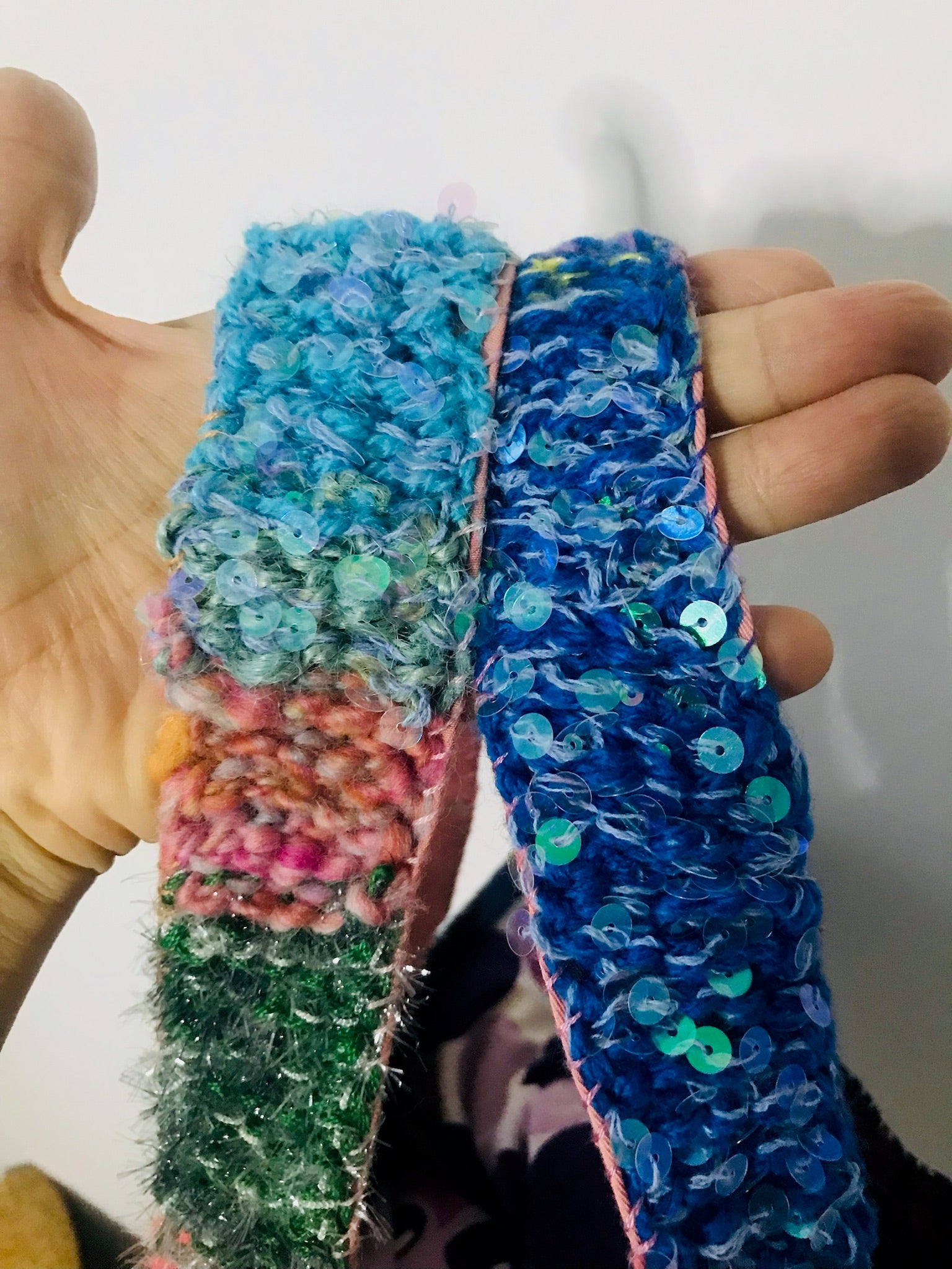Der er også en cirkel med blå perler på bagsiden af den ene 😊