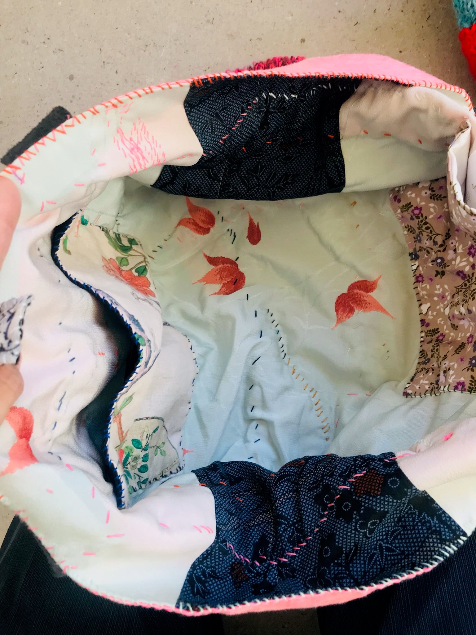 Taske håndsyet taske stof ægte læder håndtag slow fashion håndlavet 1662