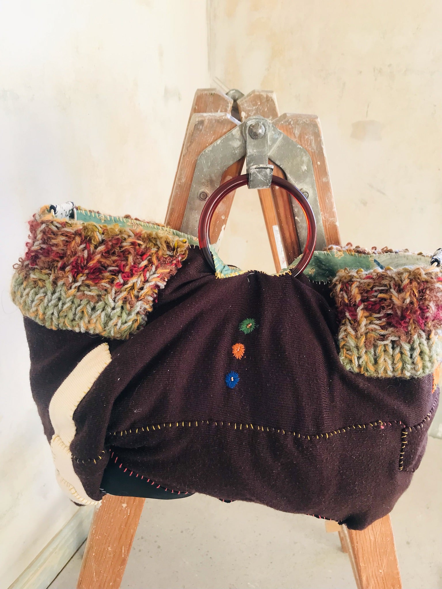 Taske håndsyet taske stof ægte læder håndtag slow fashion håndlavet 1666