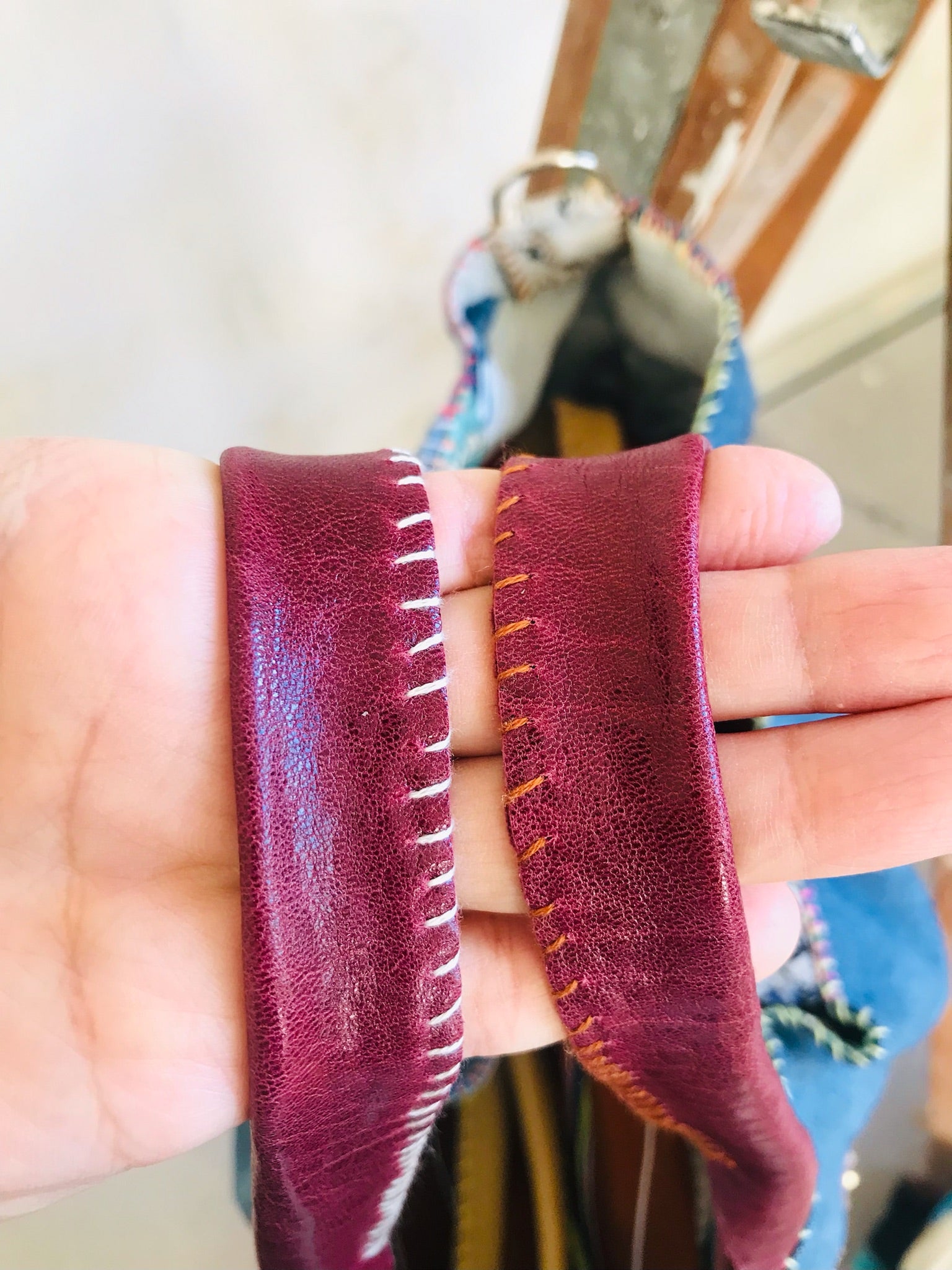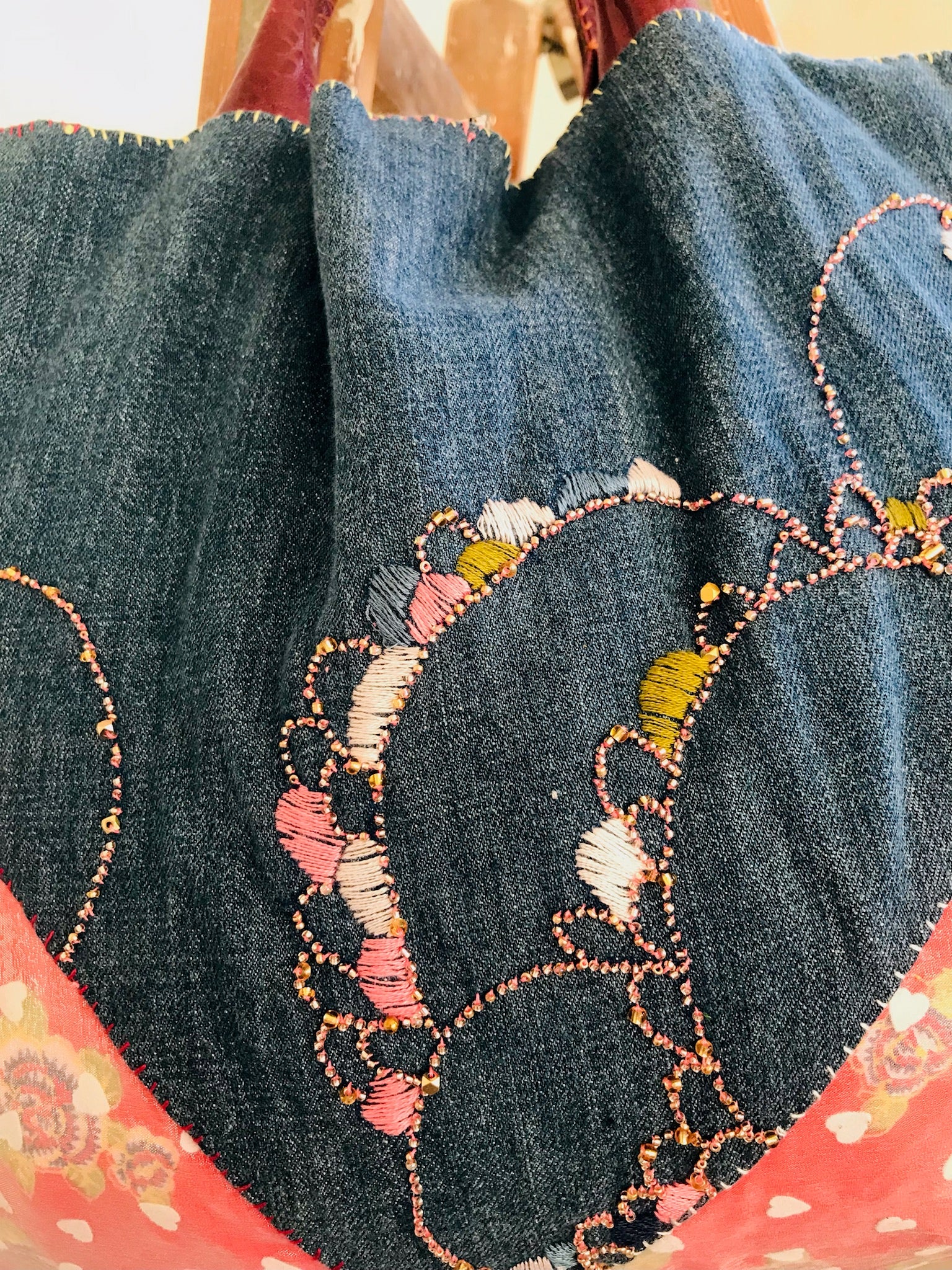 Taske håndsyet taske stof ægte læder håndtag slow fashion håndlavet 1672