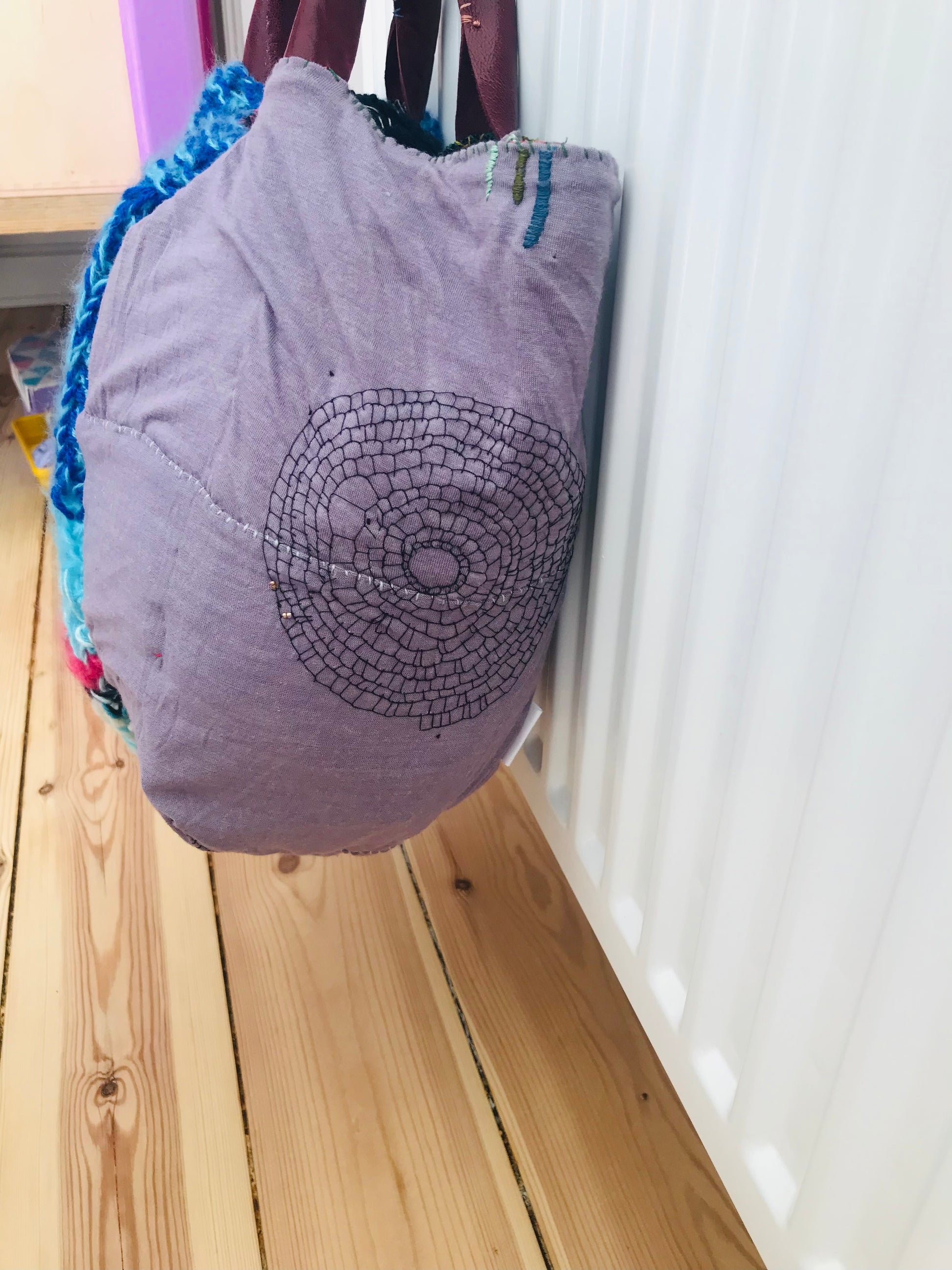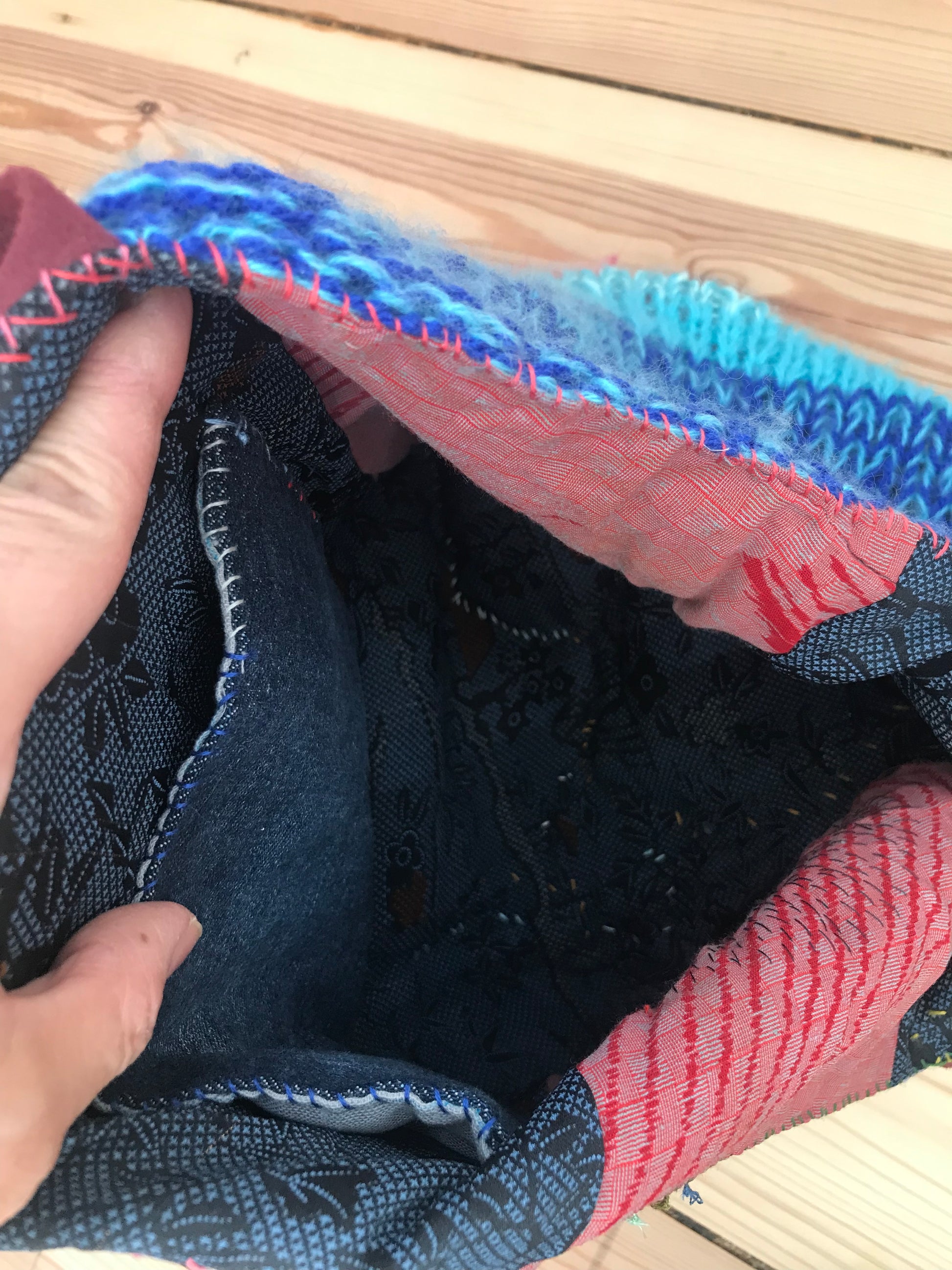 Taske håndsyet taske stof ægte læder håndtag slow fashion håndlavet 1696