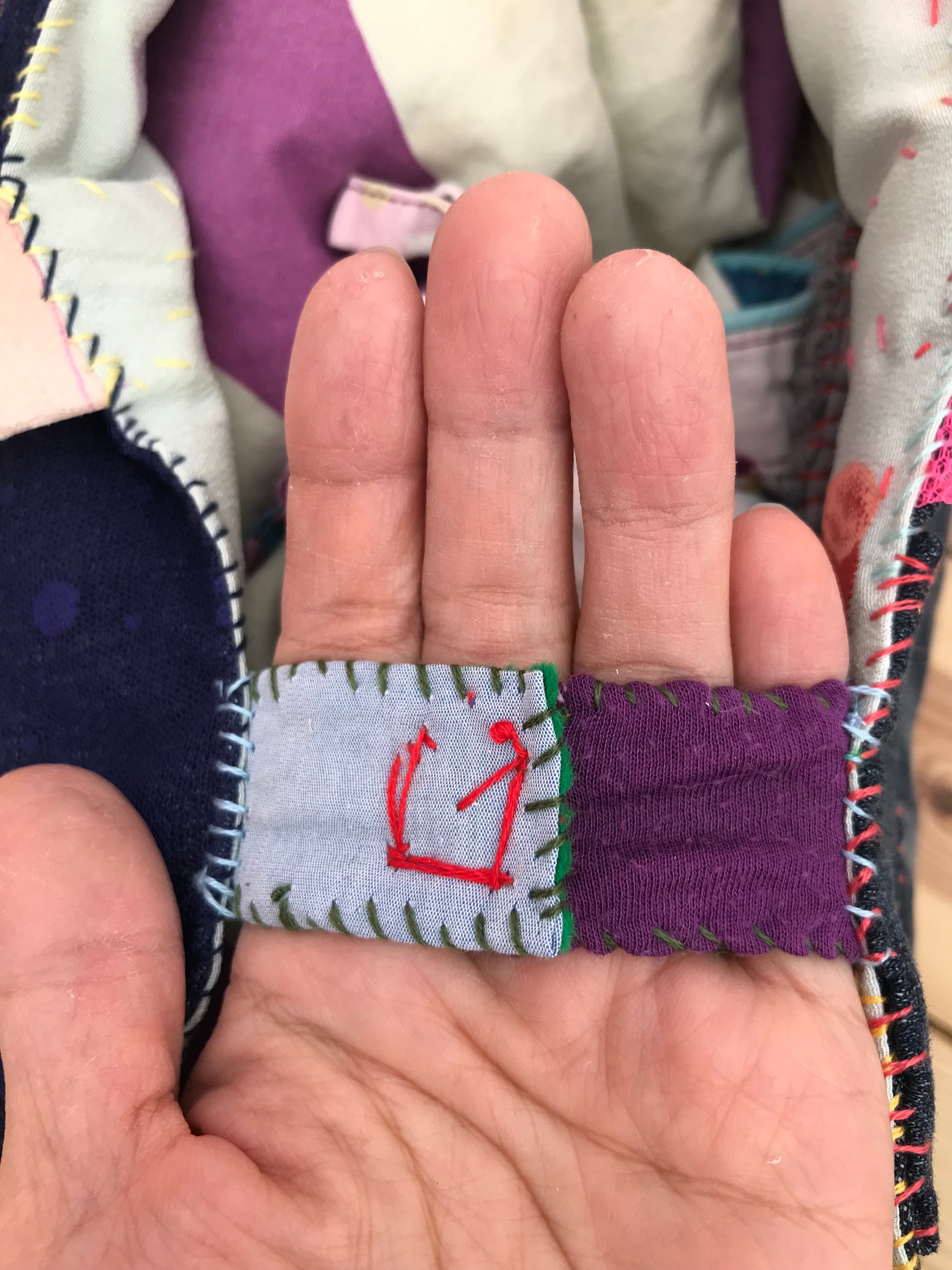 lavet af stof. Håndsyet.