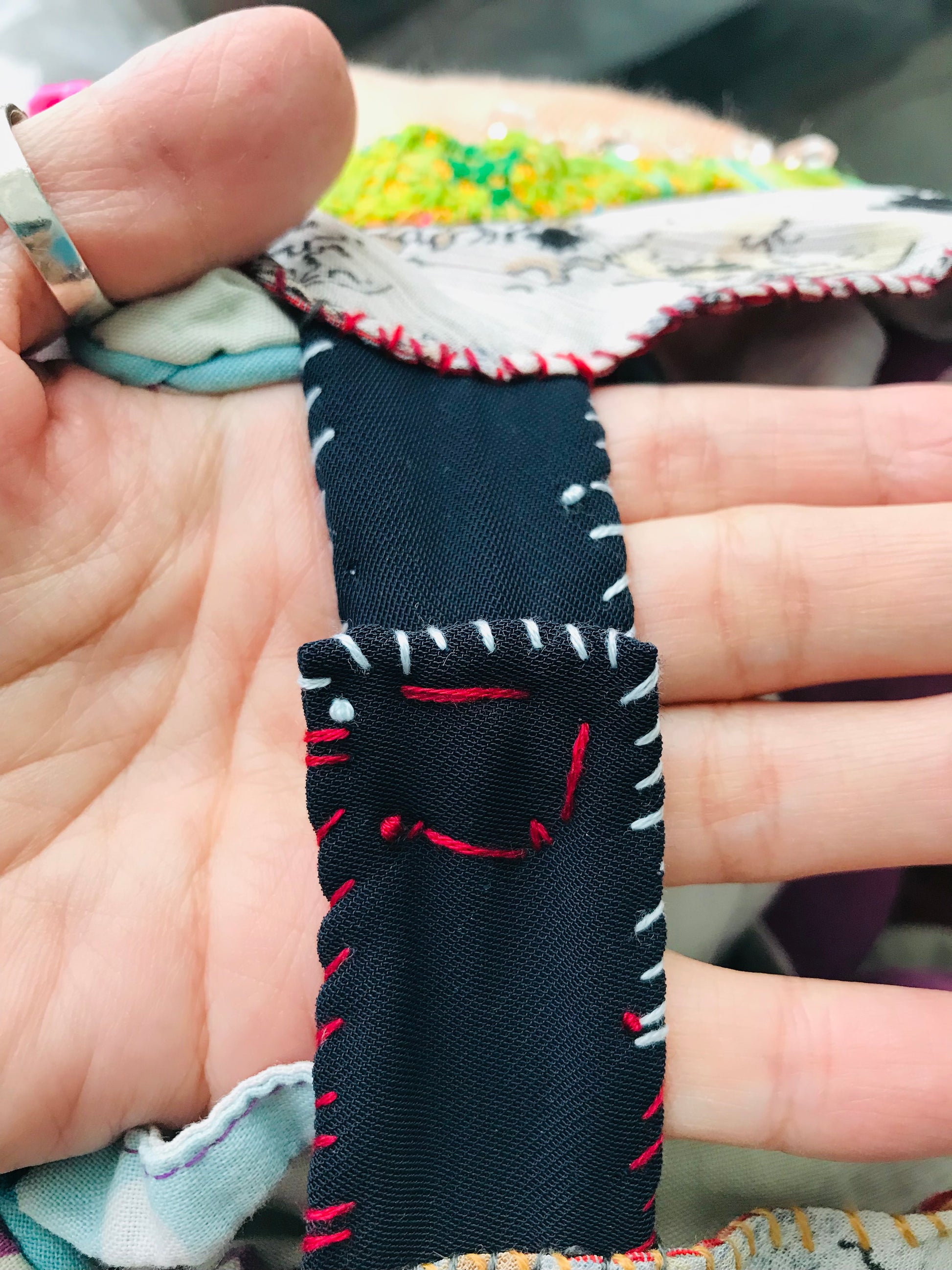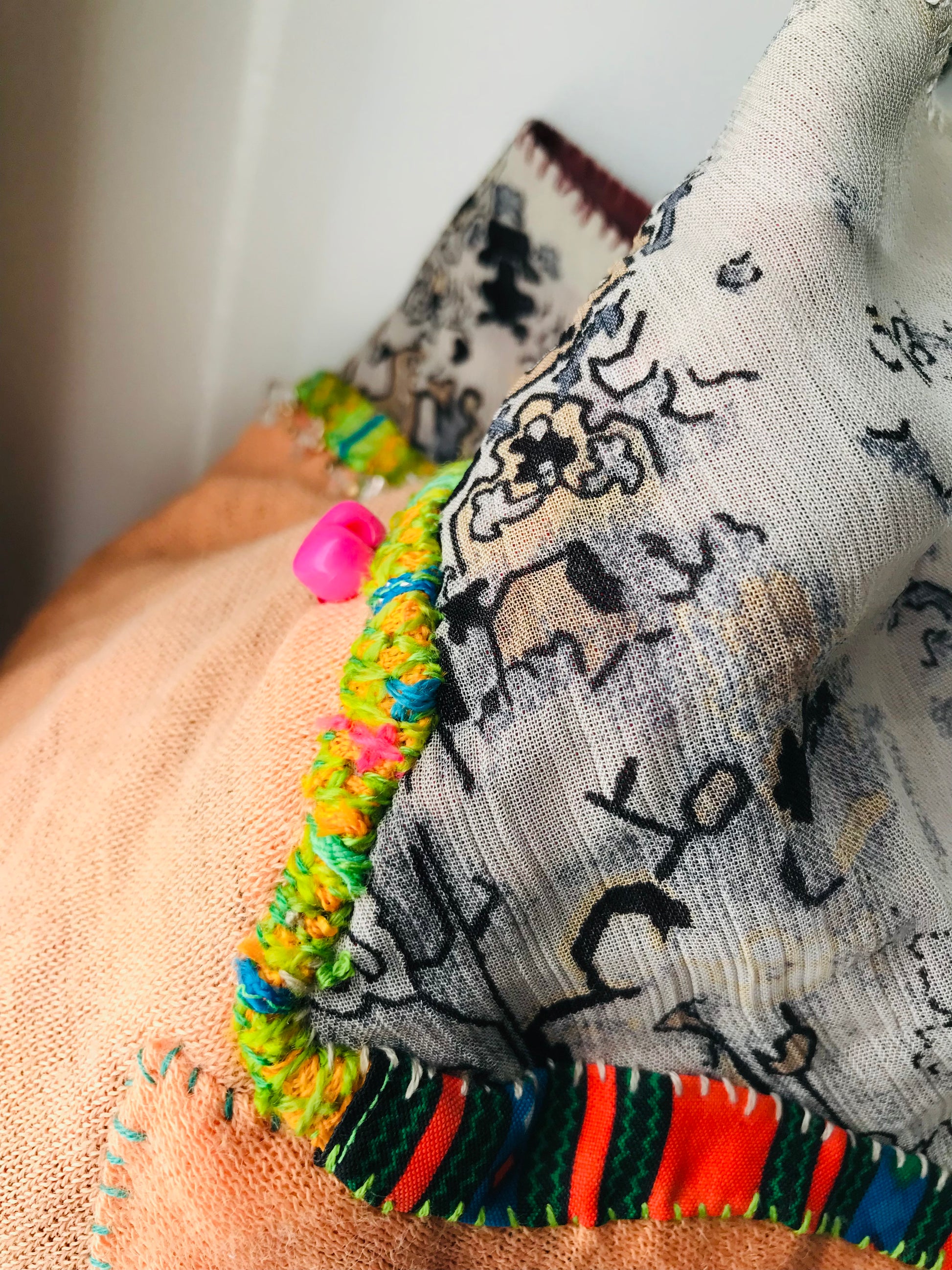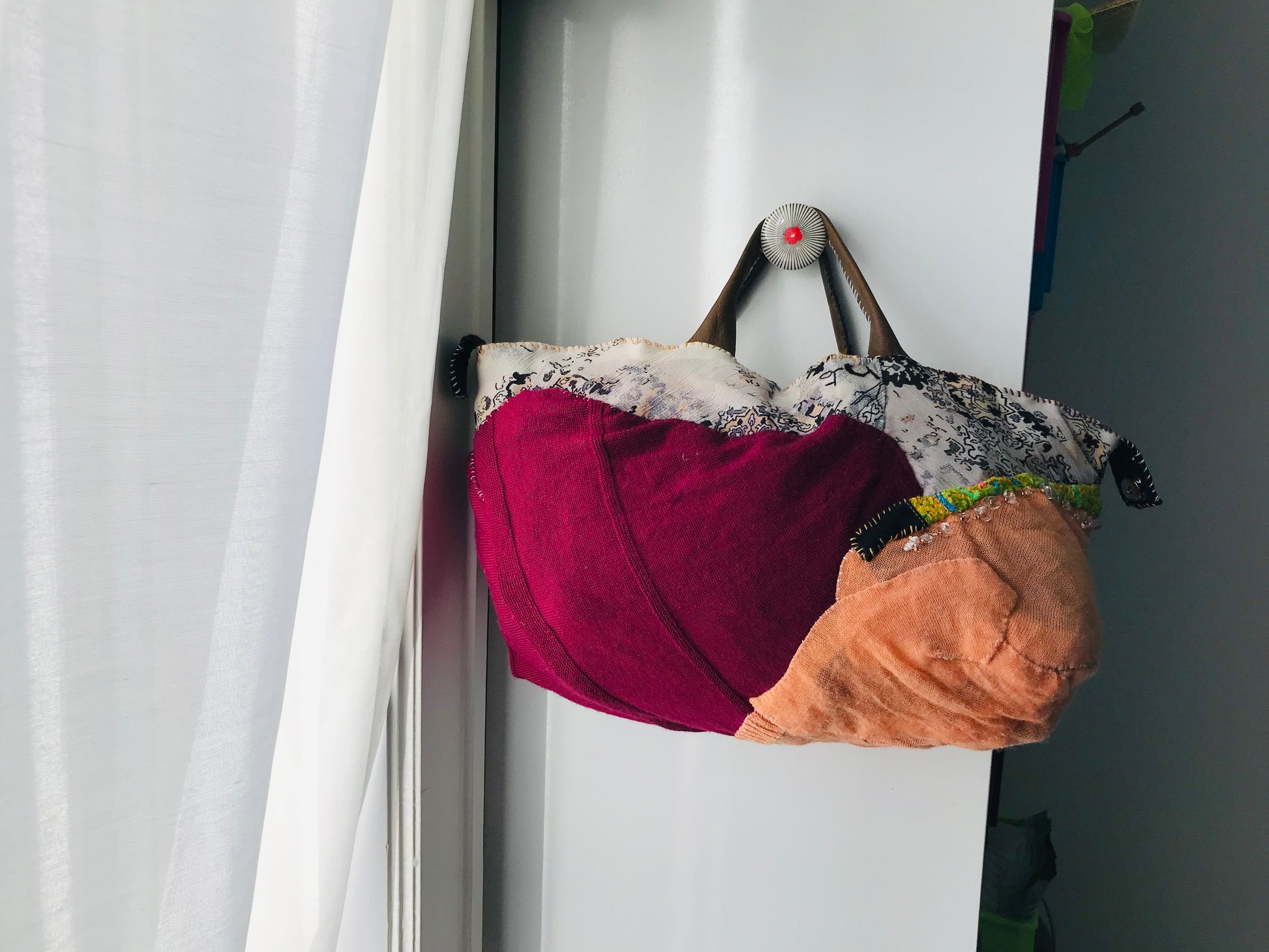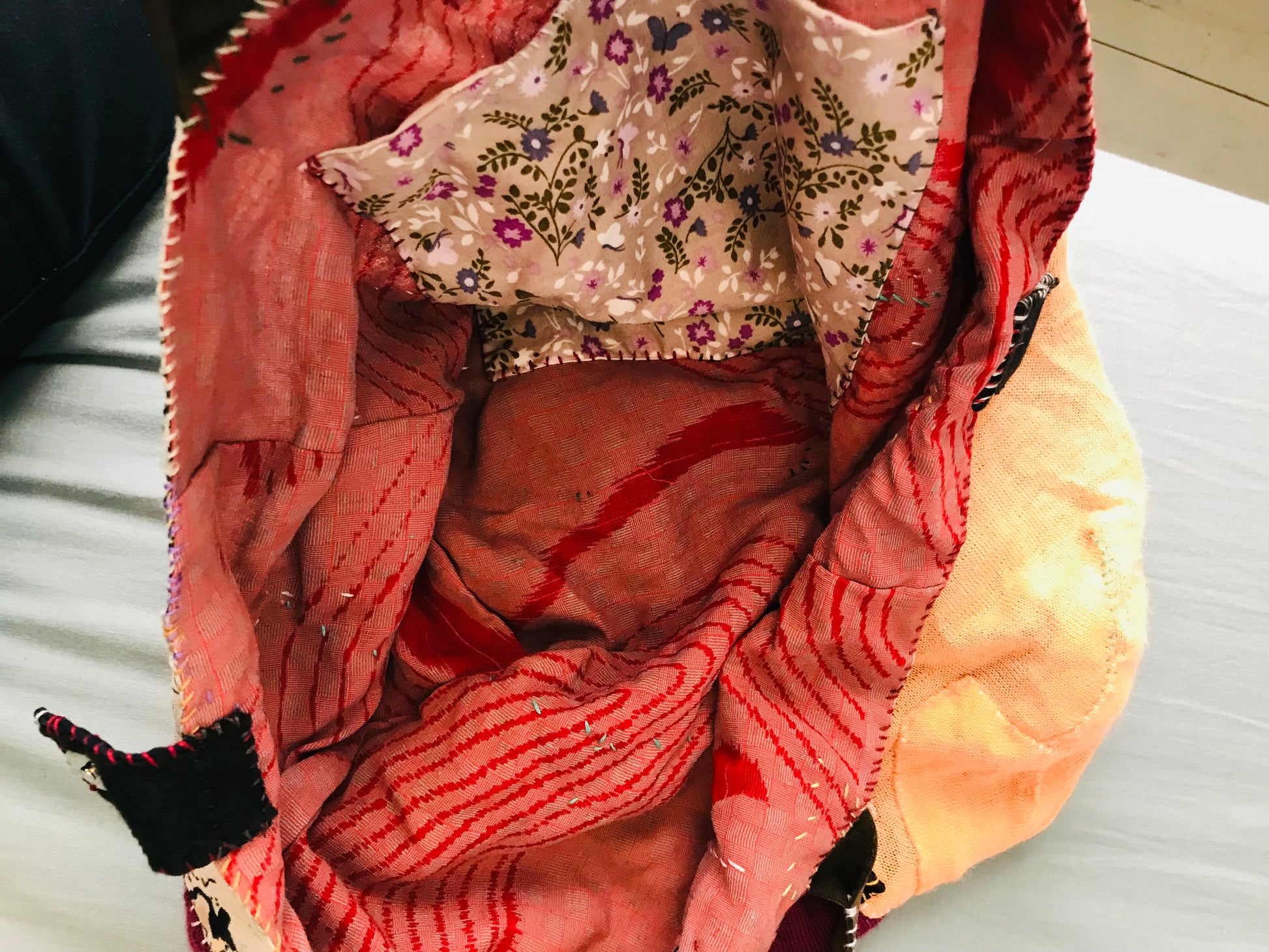 Taske håndsyet taske stof ægte læder håndtag håndlavet 1627