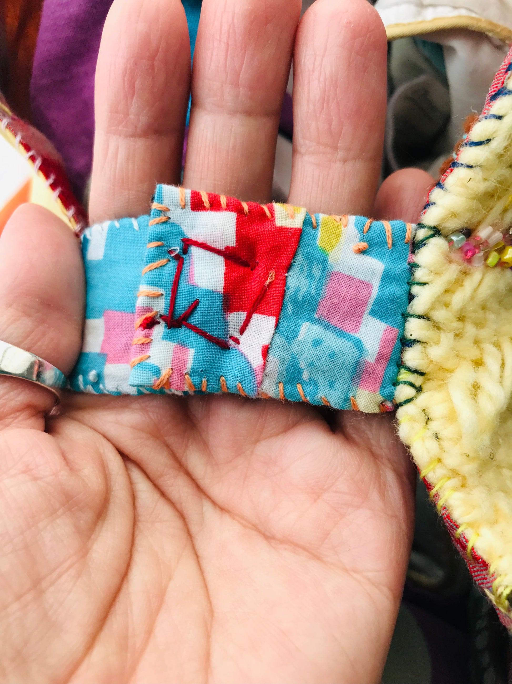 lavet af stof. Håndsyet.