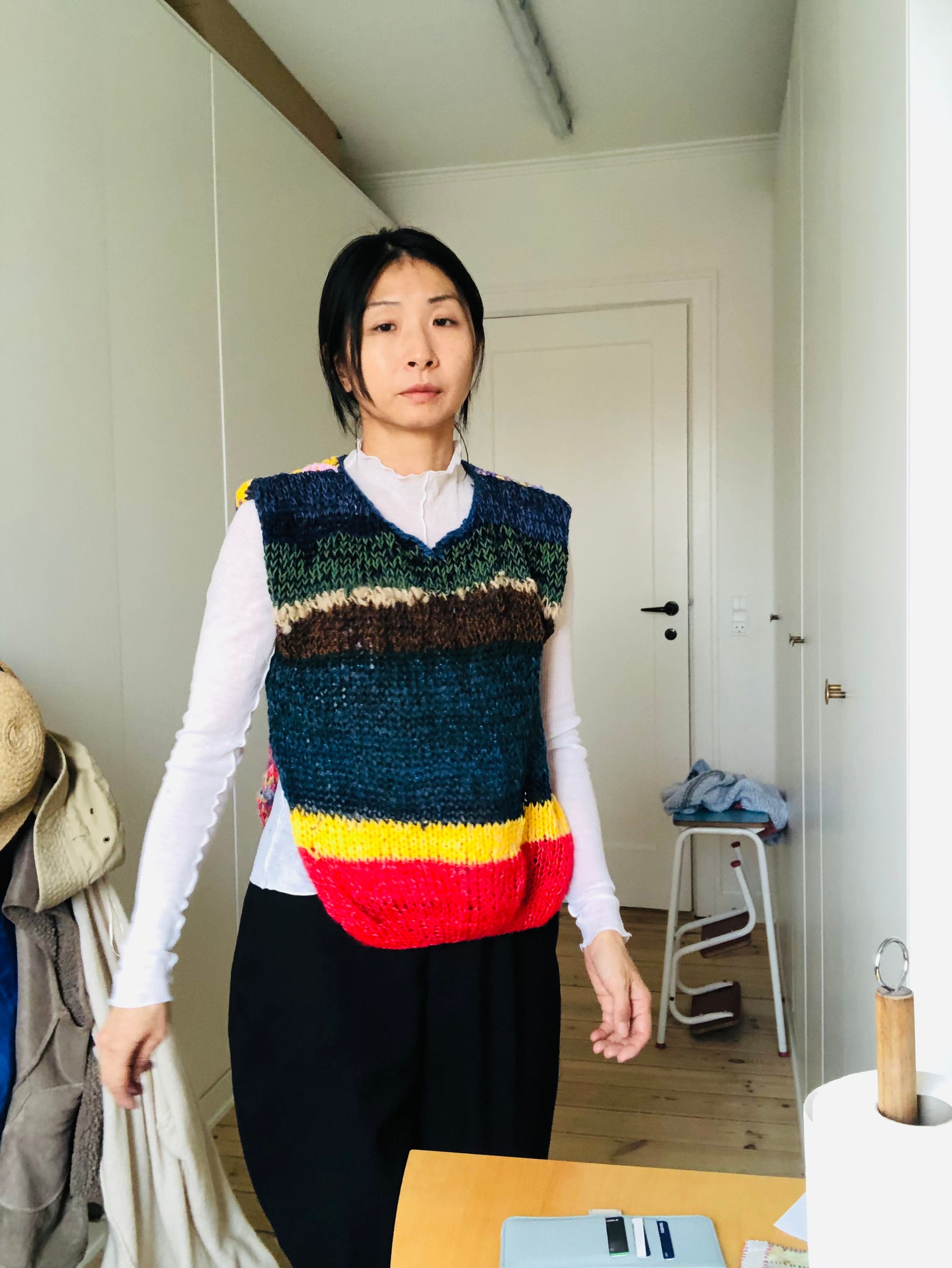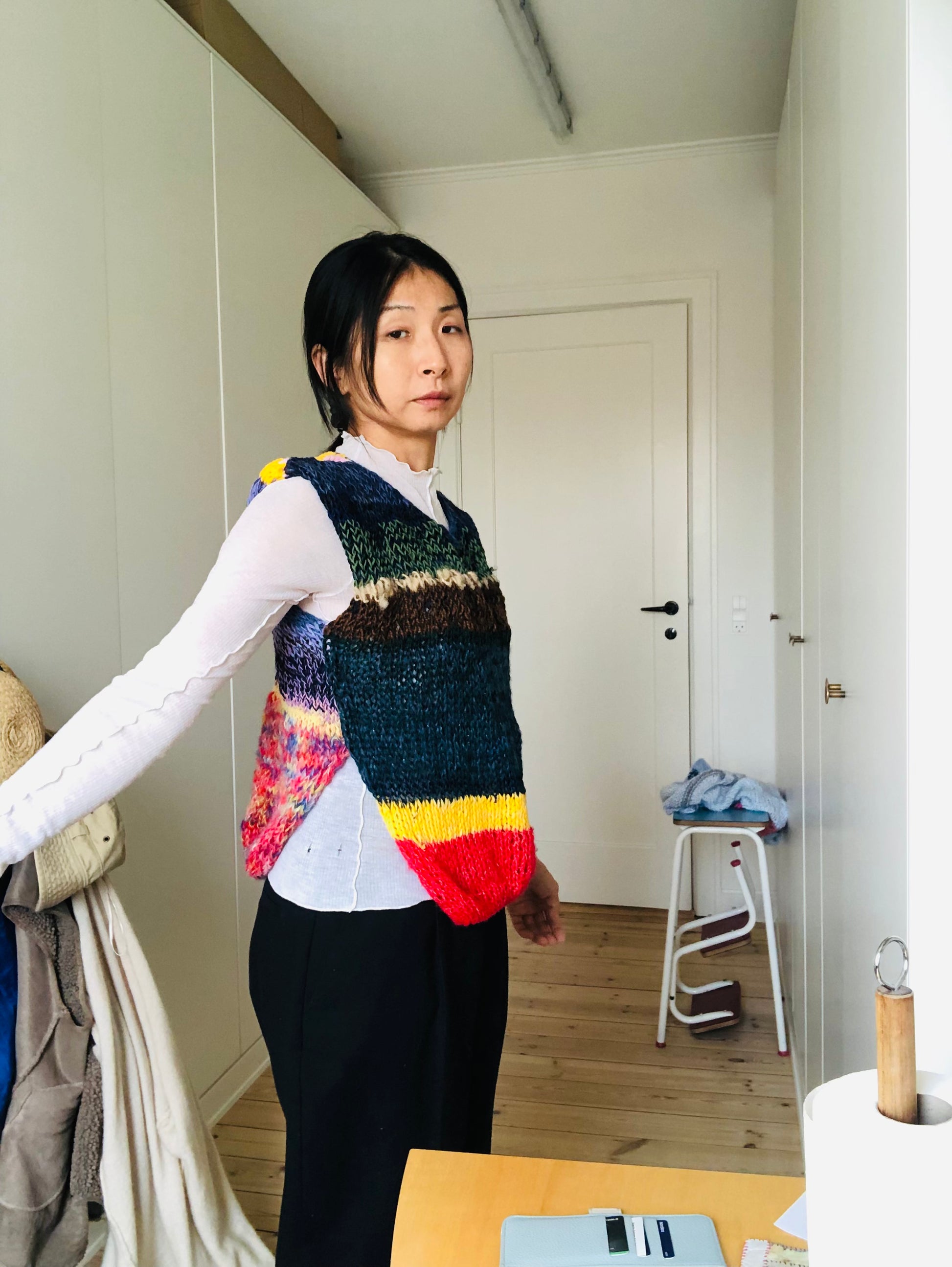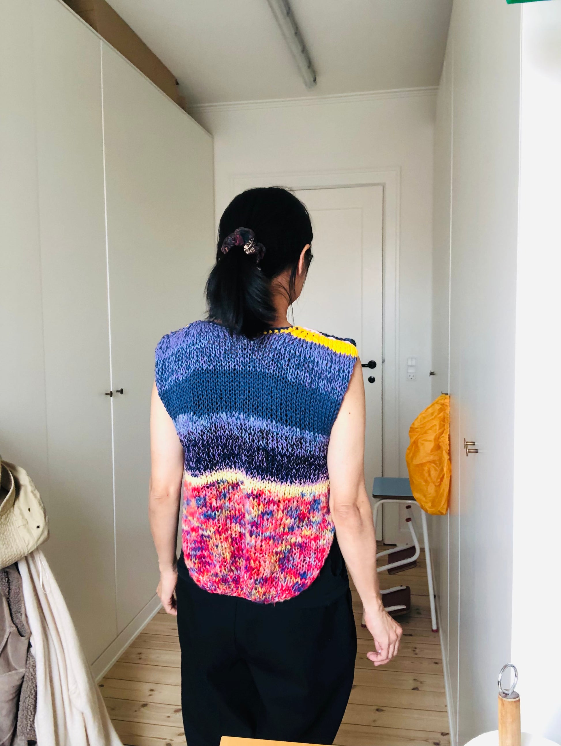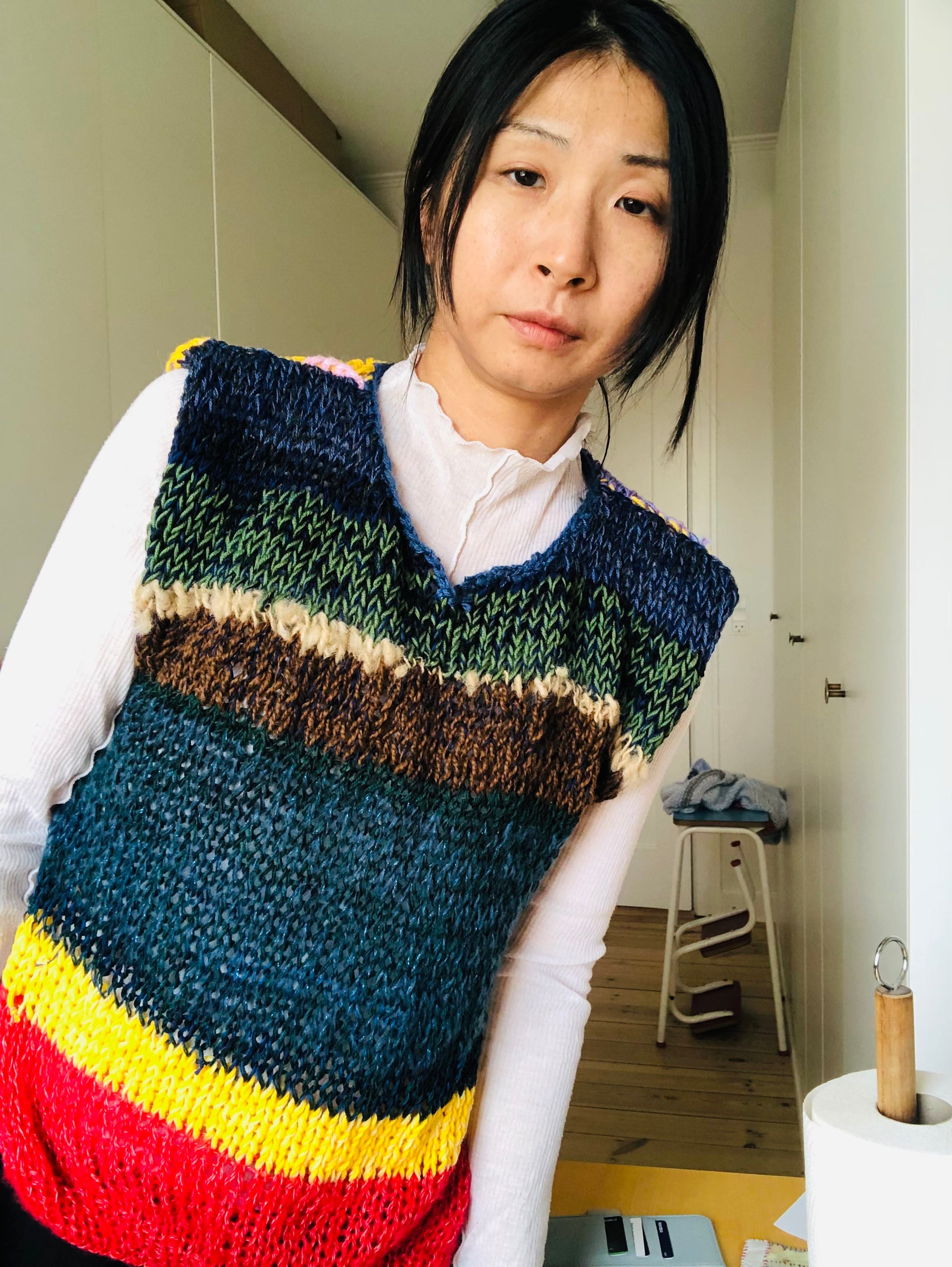 Using a variety of yarns, we created a one-of-a-kind sweater.