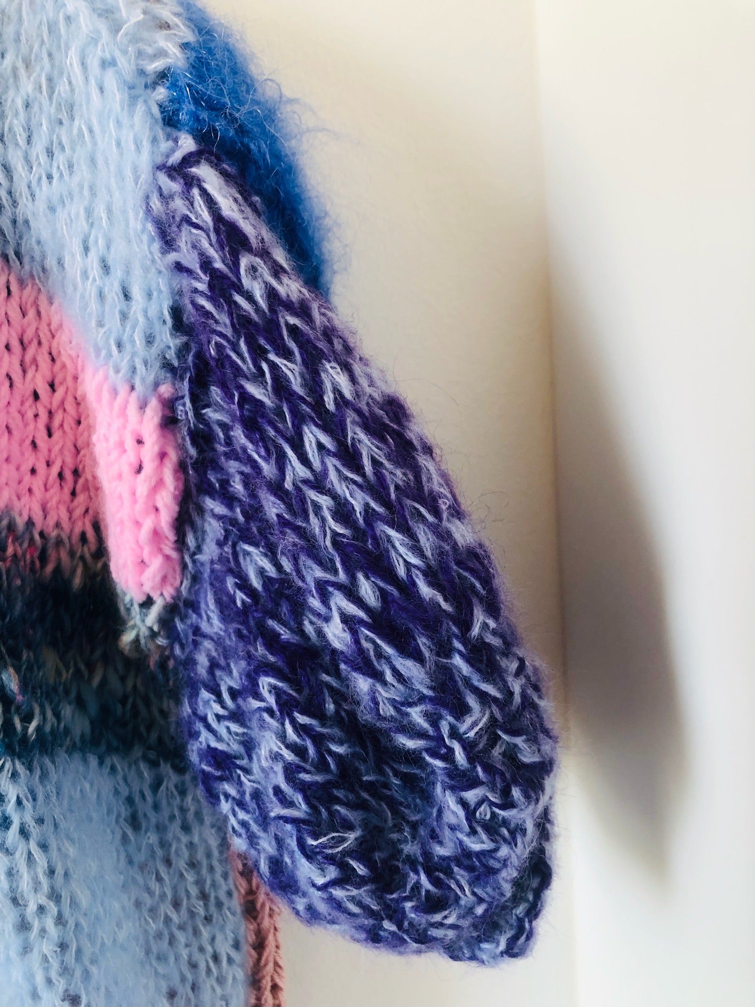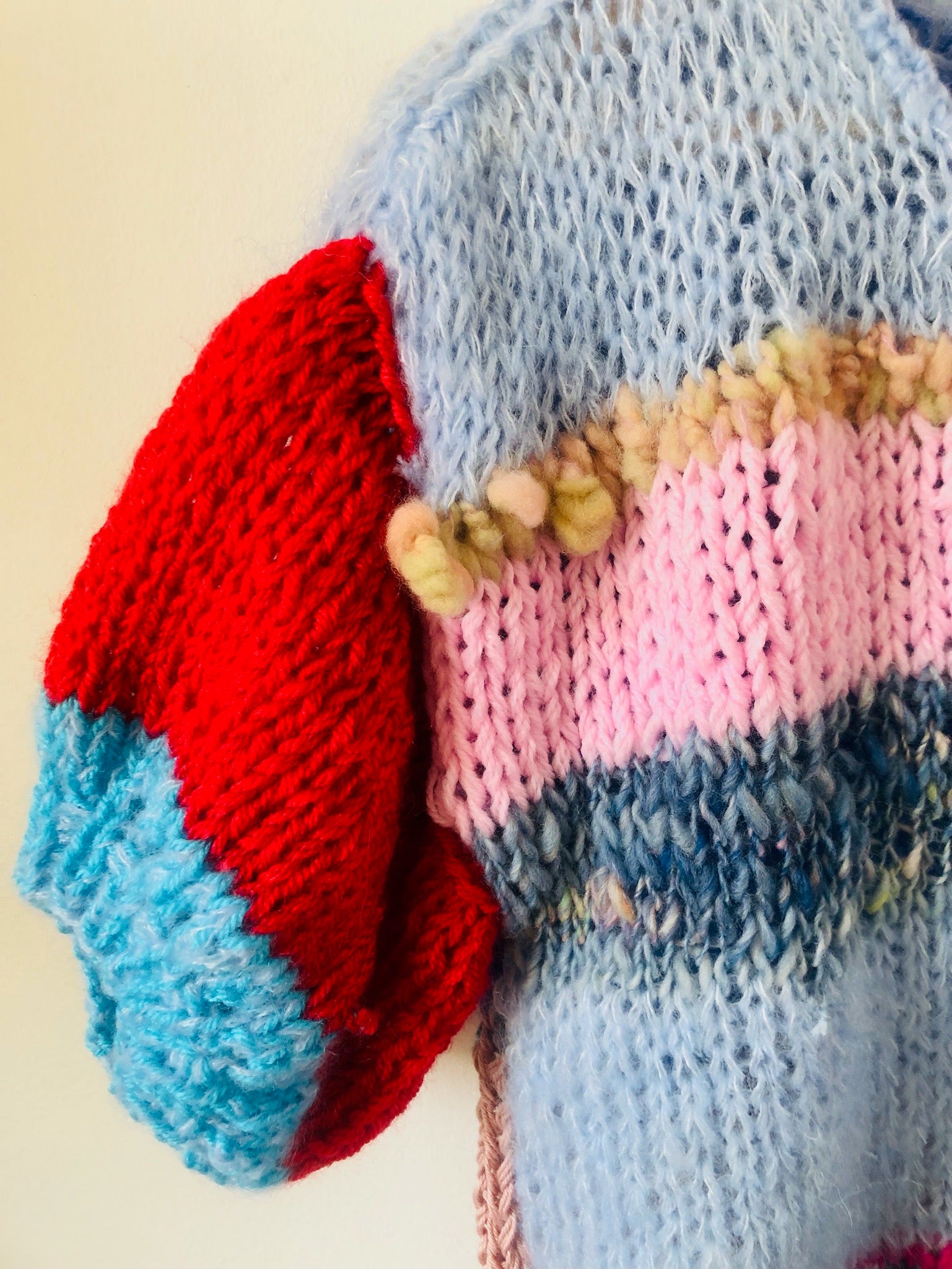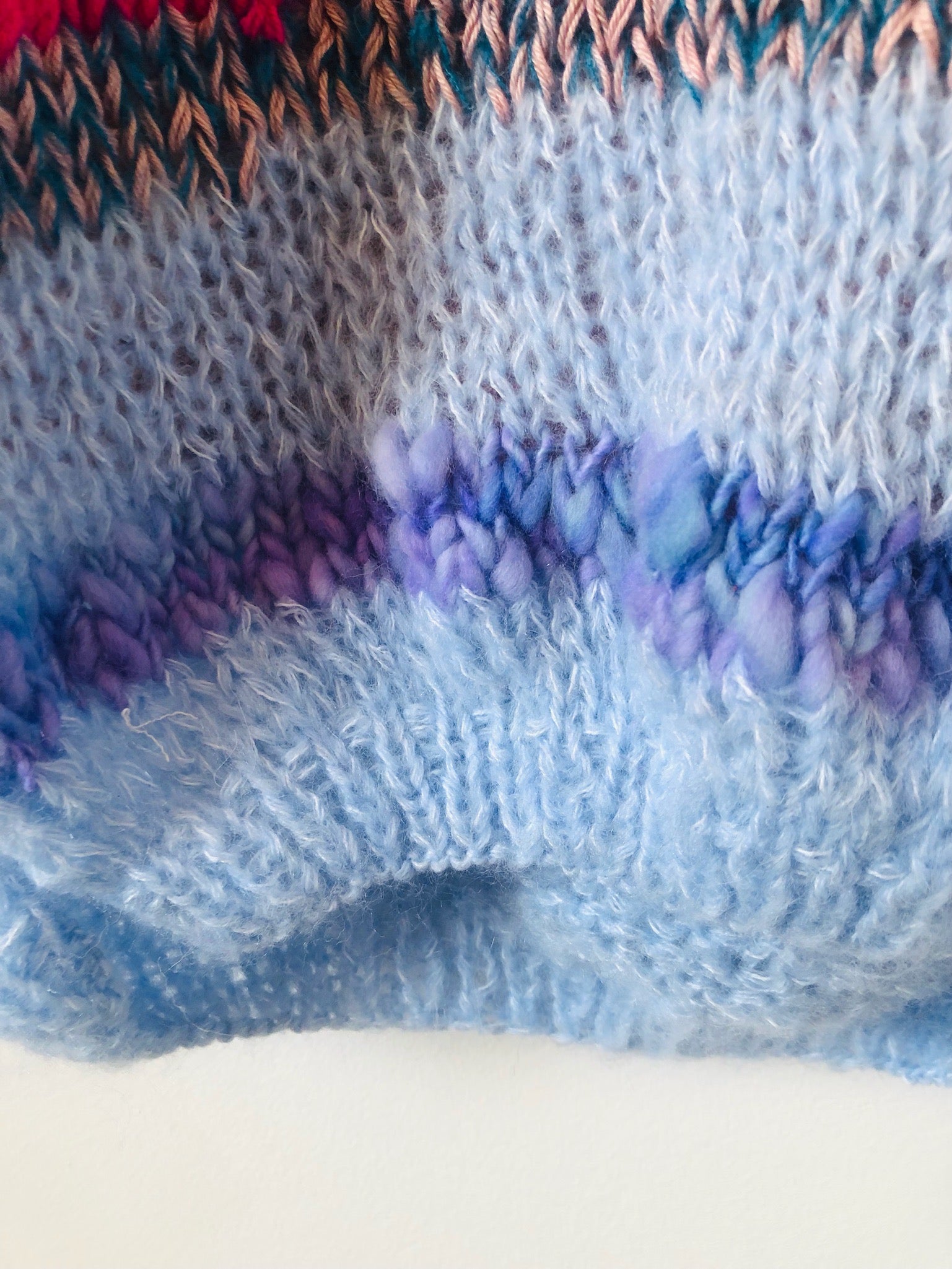 Sweater Hand Knitted Slow Fashion Fancy Yarn Oneofakind Short Mohair 2209
