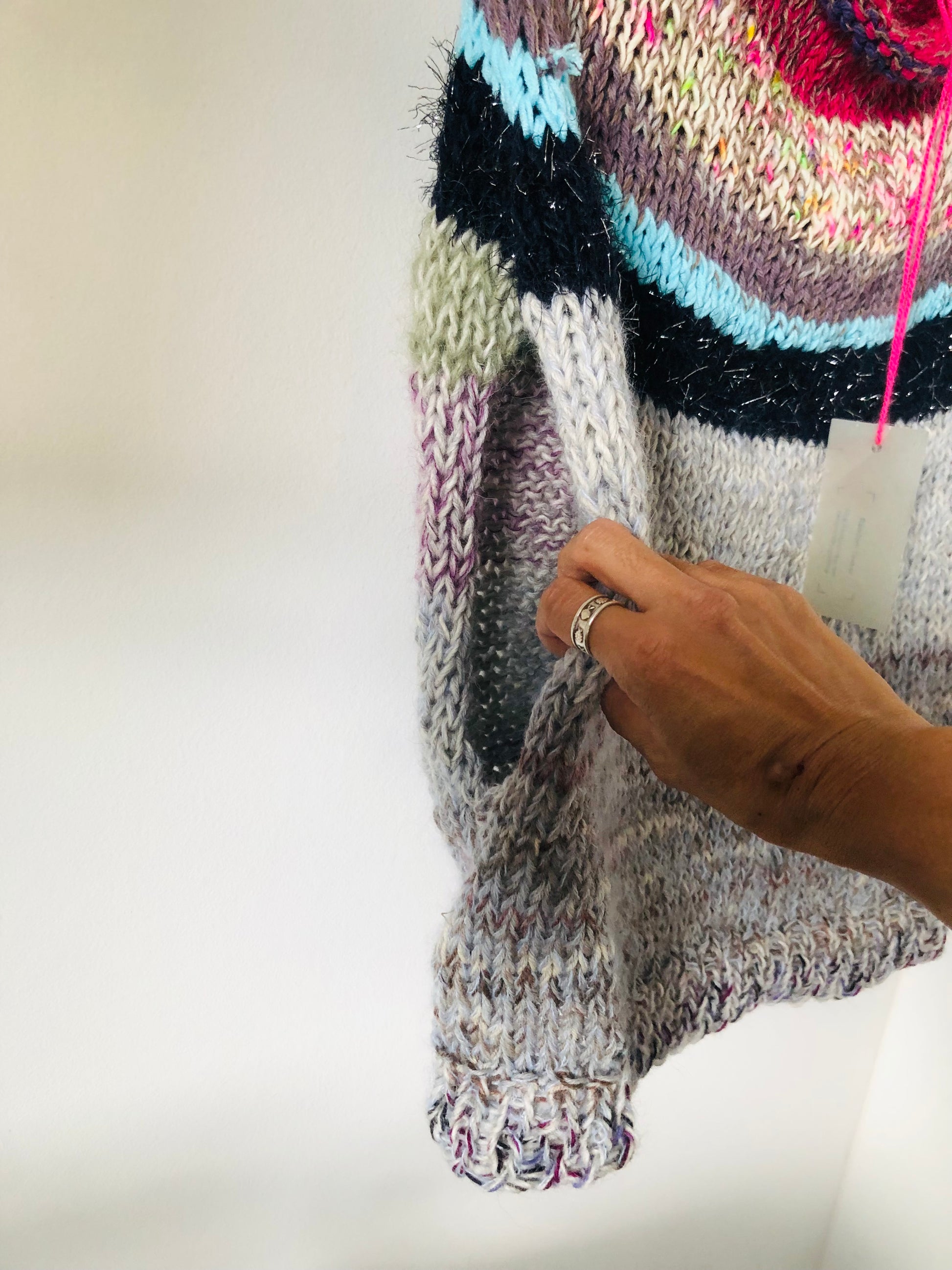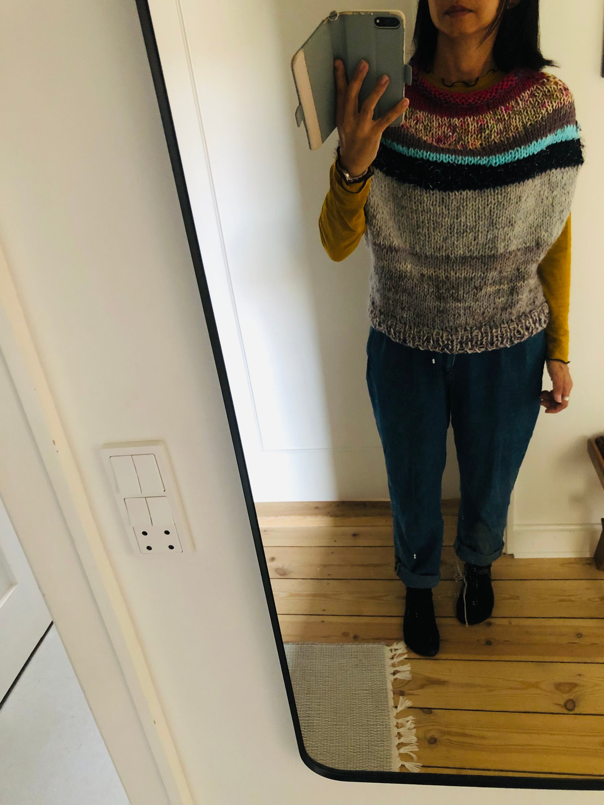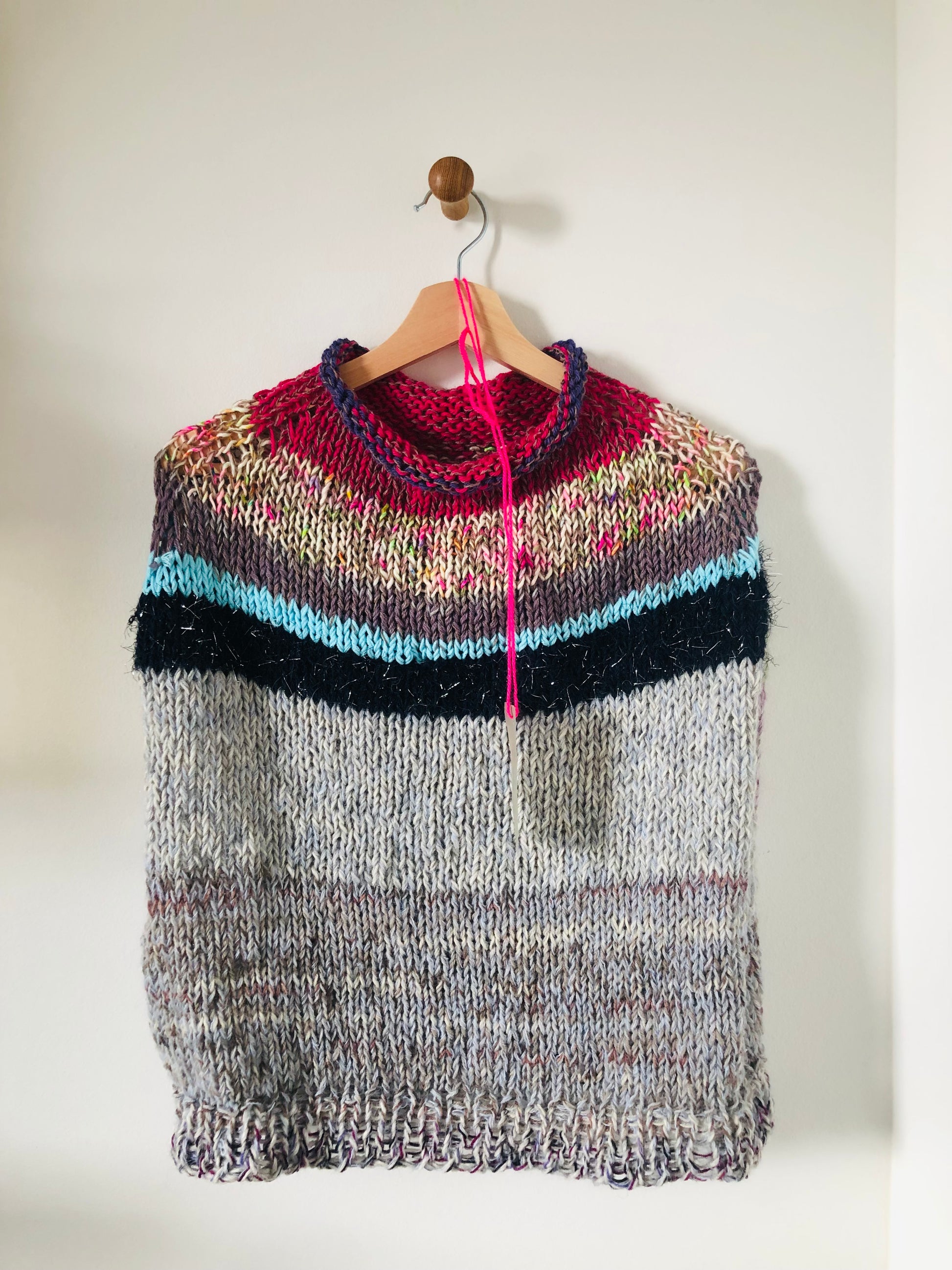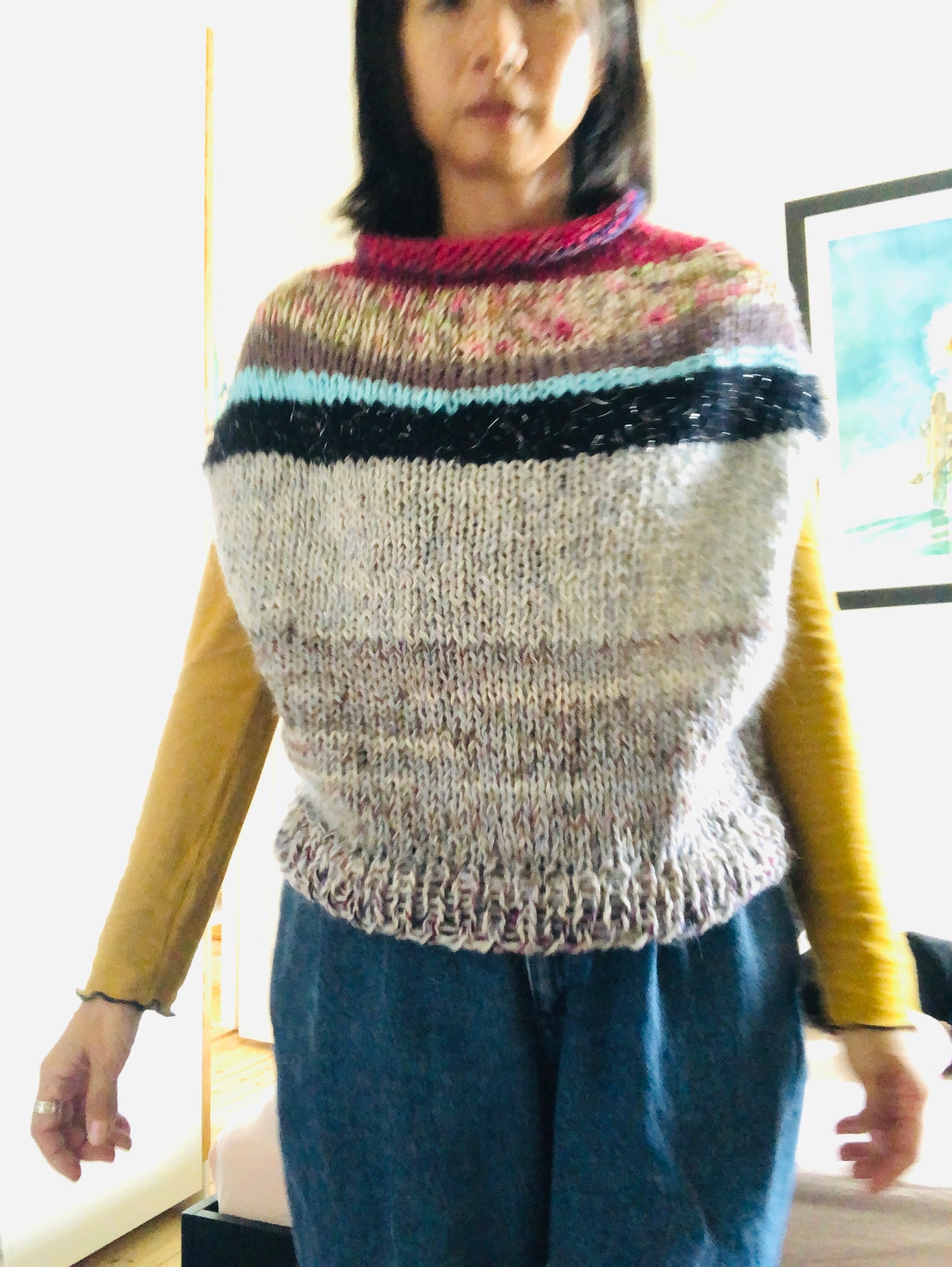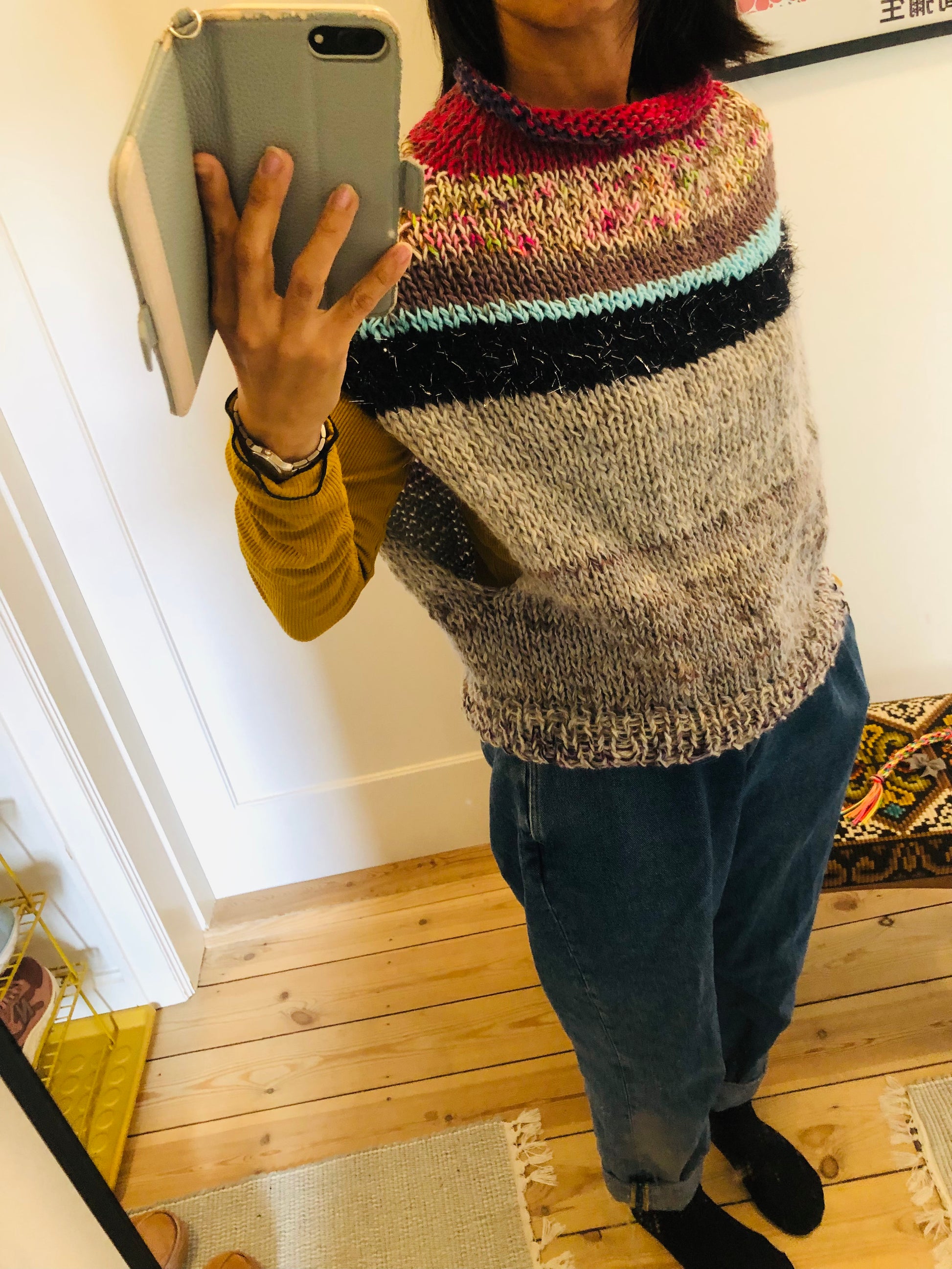 Hand-knitted sweater, slow fashion, fancy yarn, oneofakind, vest, poncho, 2301