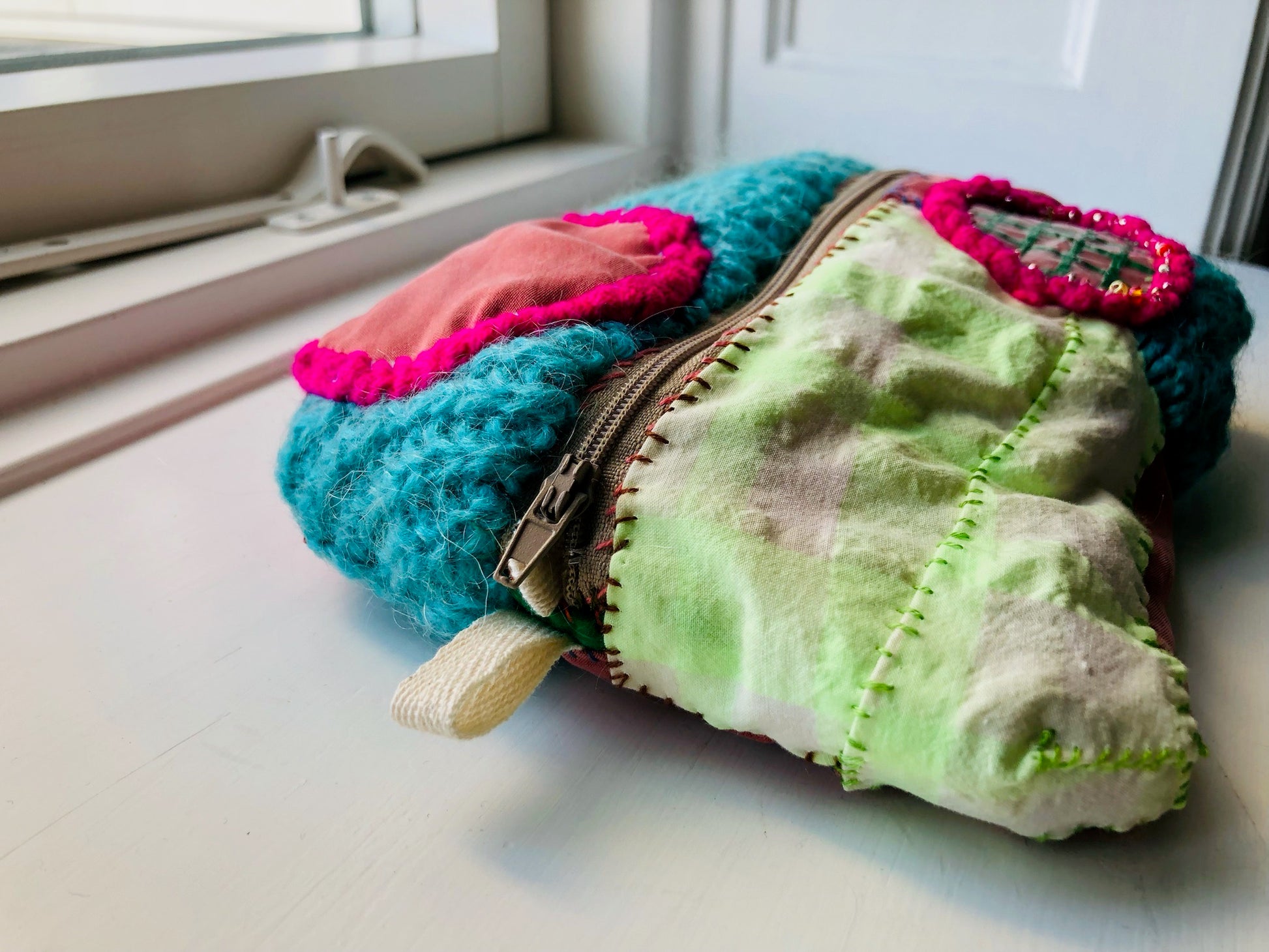 A hand-sewn cloth pouch.