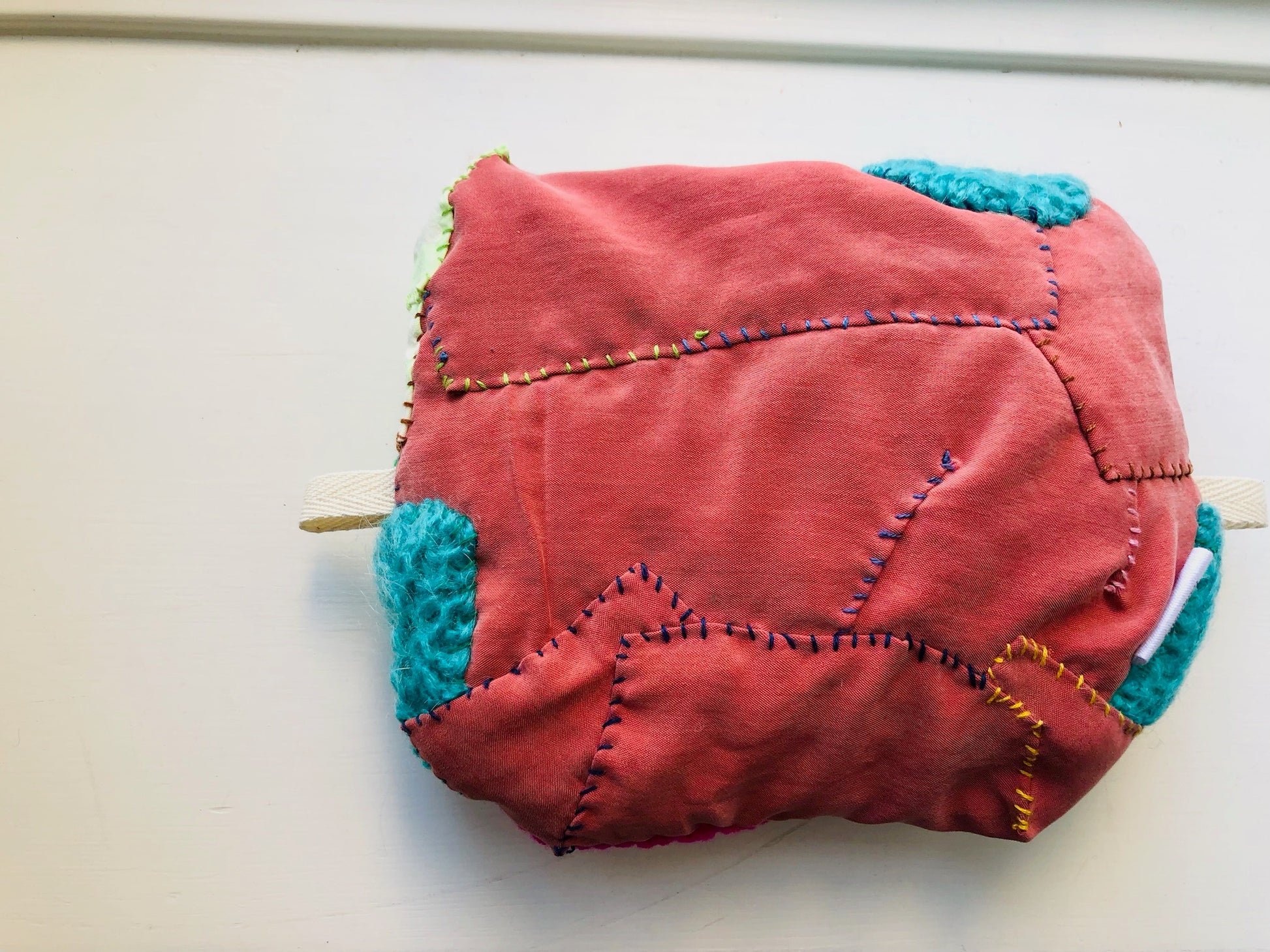 Made of fabric. Hand sewn.