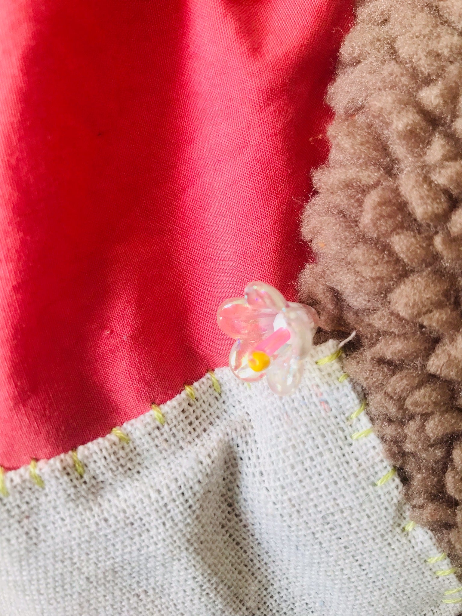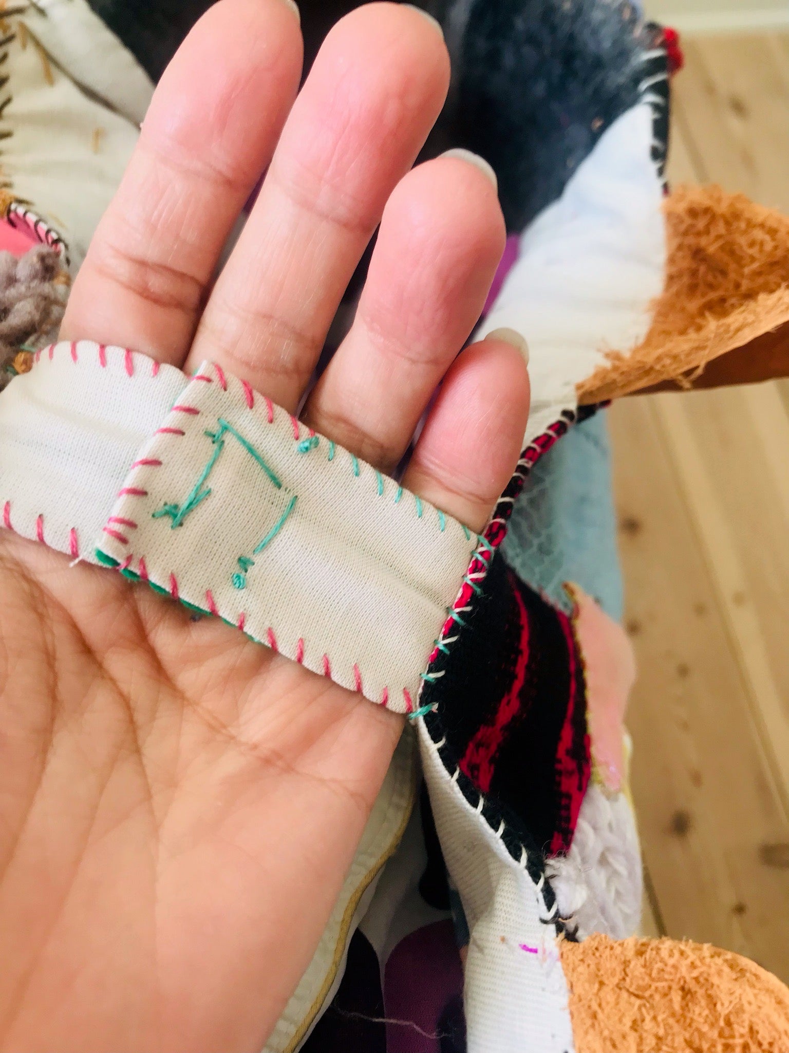 Made of fabric. Hand sewn.