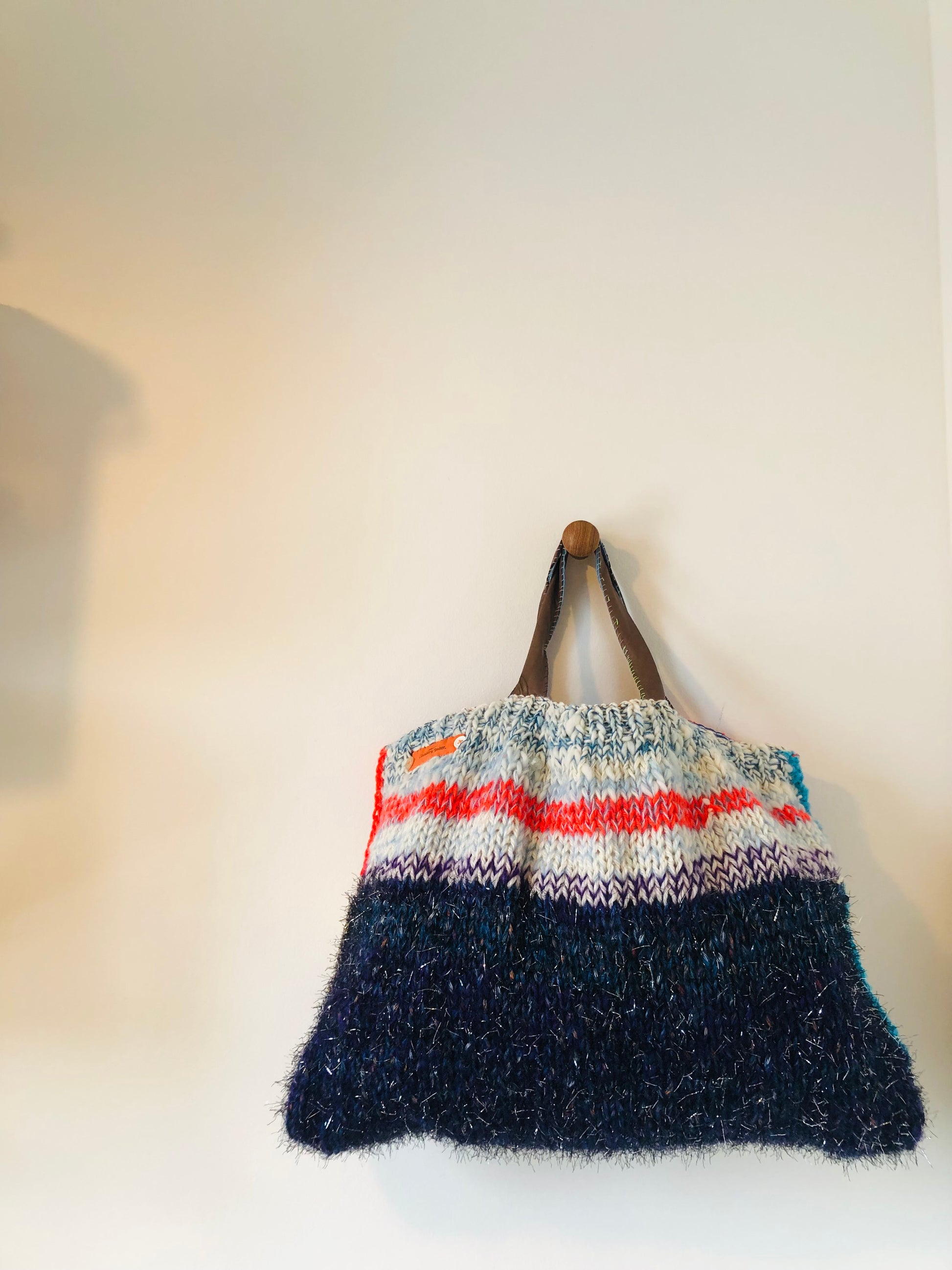 A piece that was slowly created by hand knitting and hand sewing.