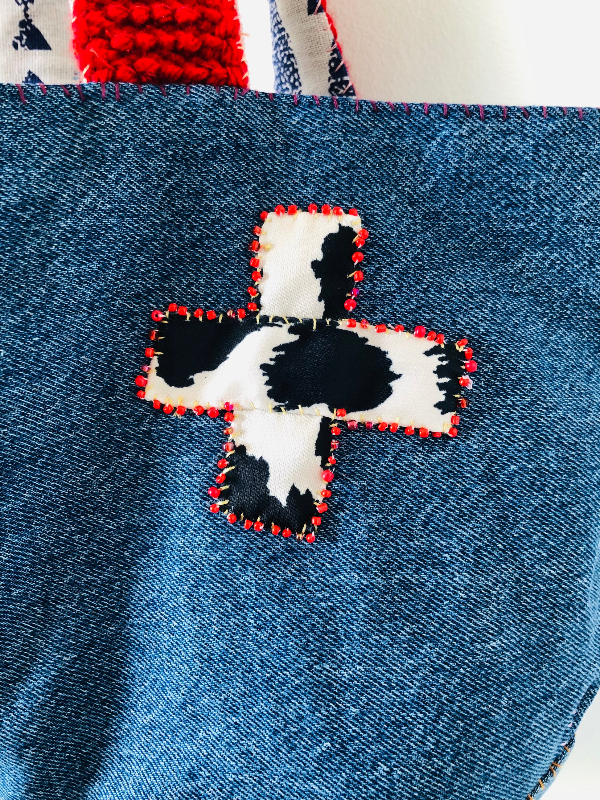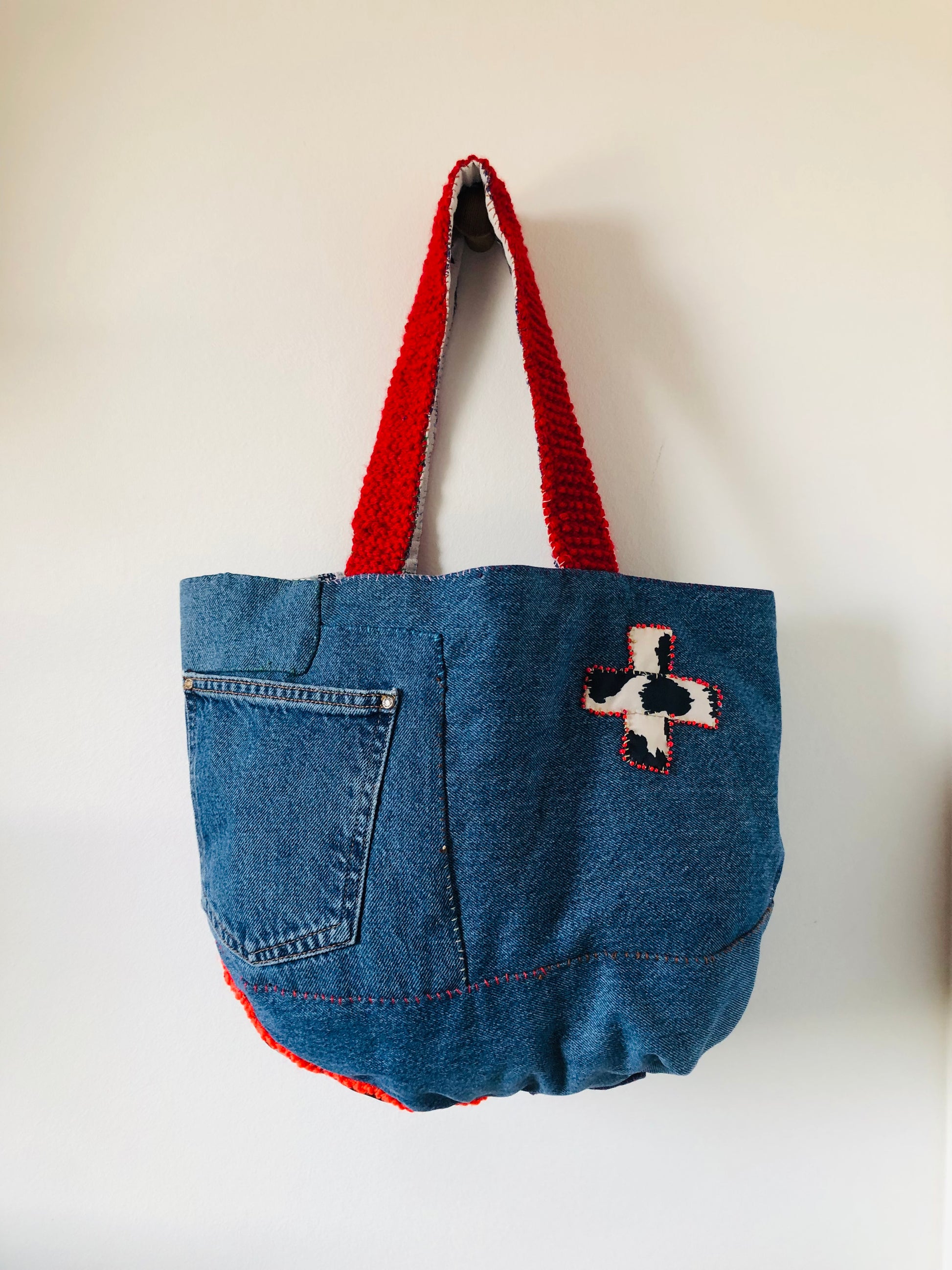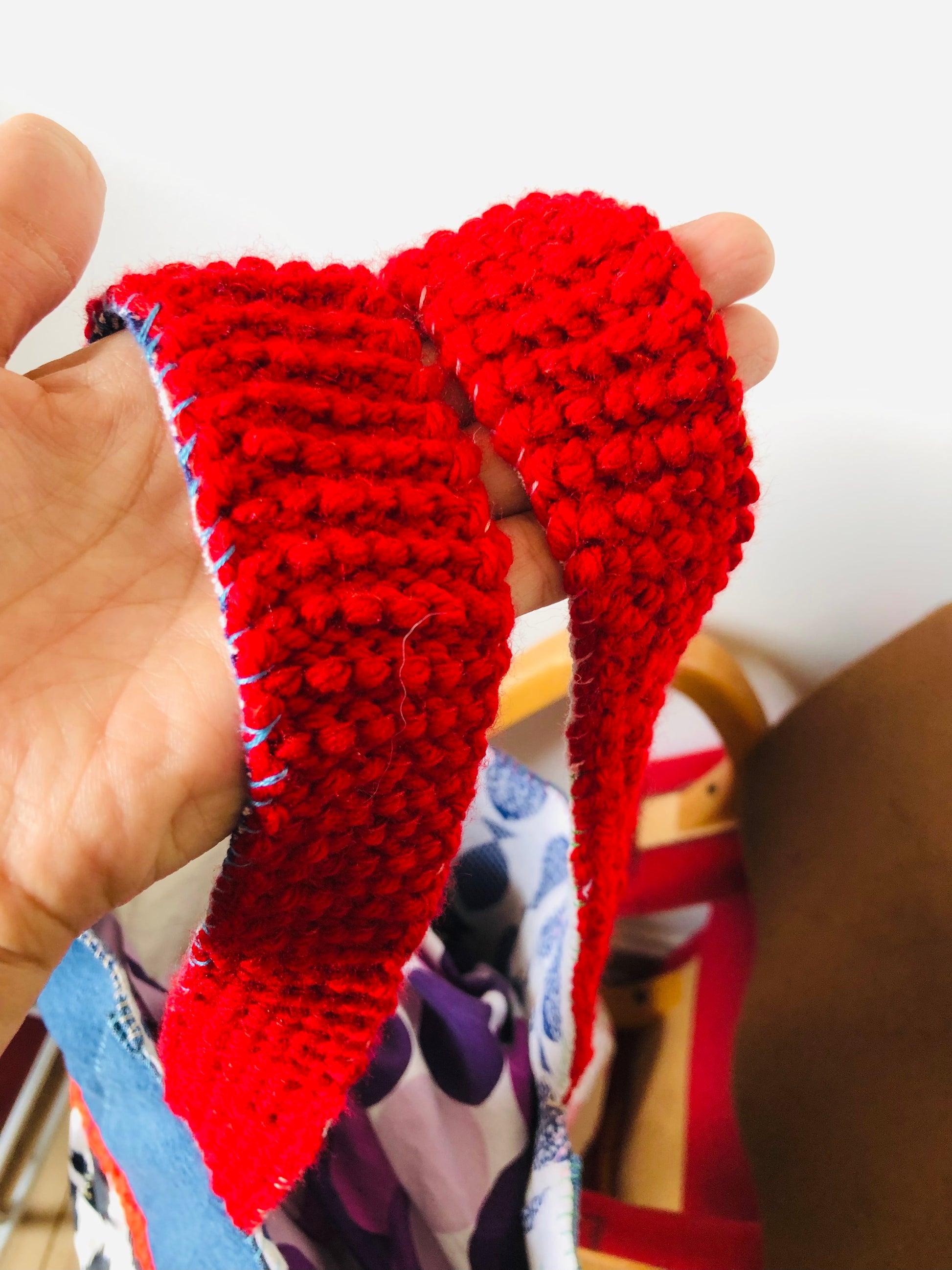 ⭕️The handle is knitted with Afghan stitch.