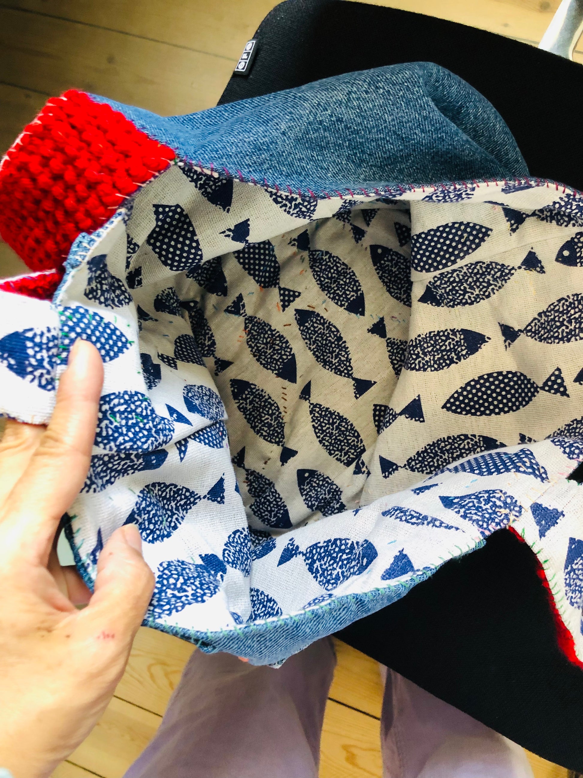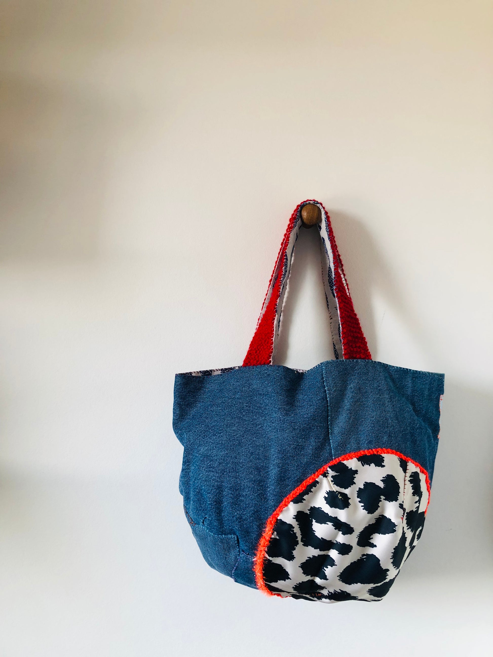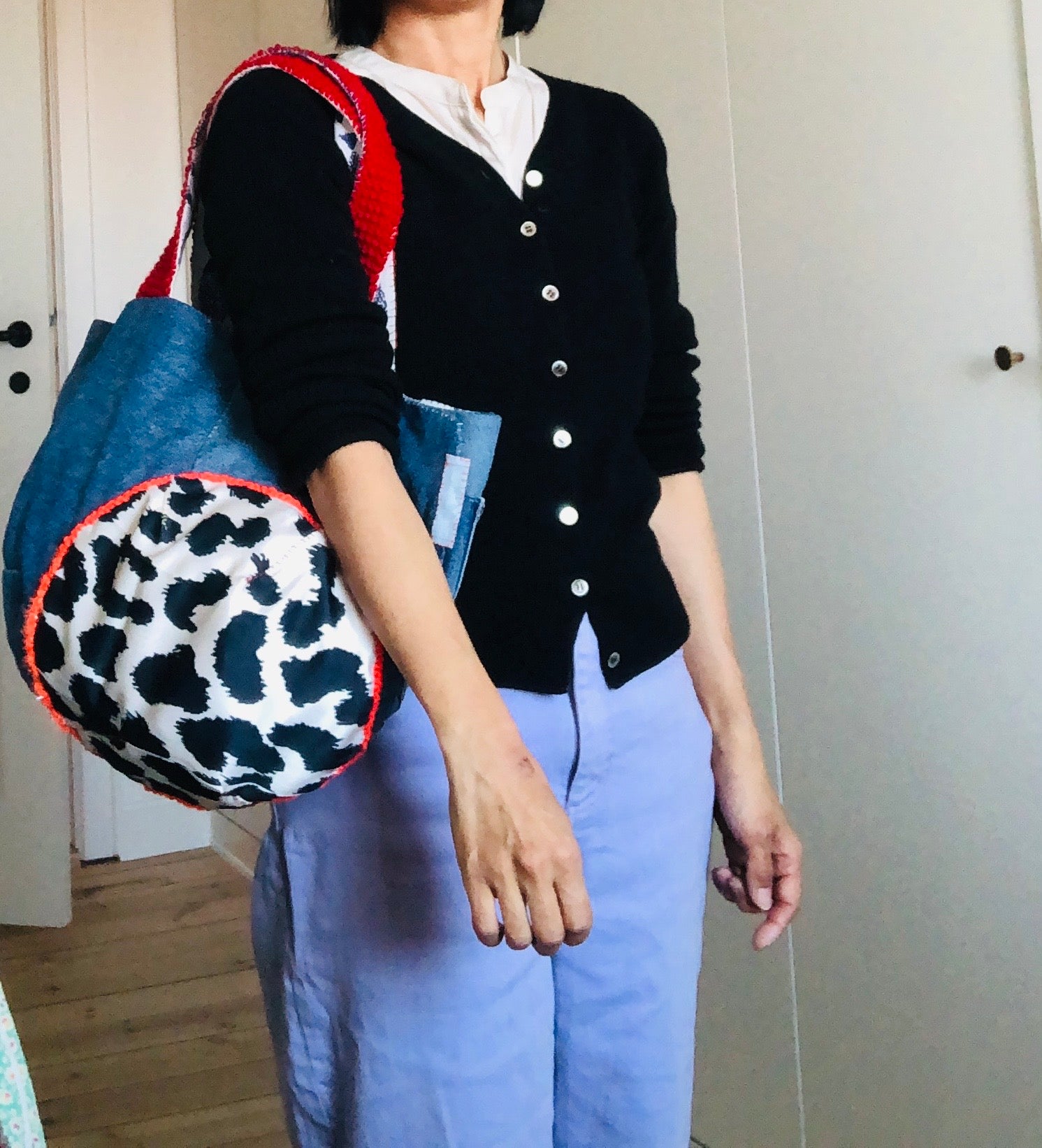 ⭕️The handle is knitted with Afghan stitch.
