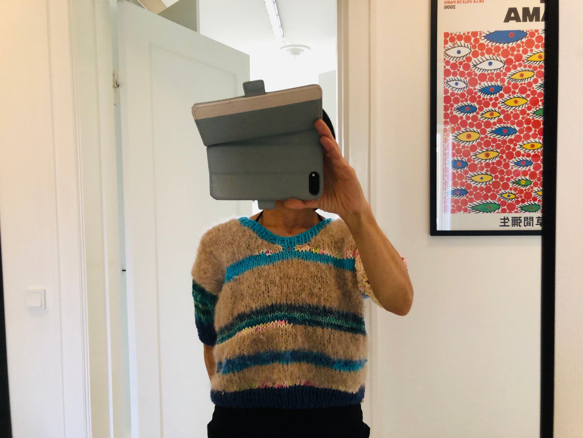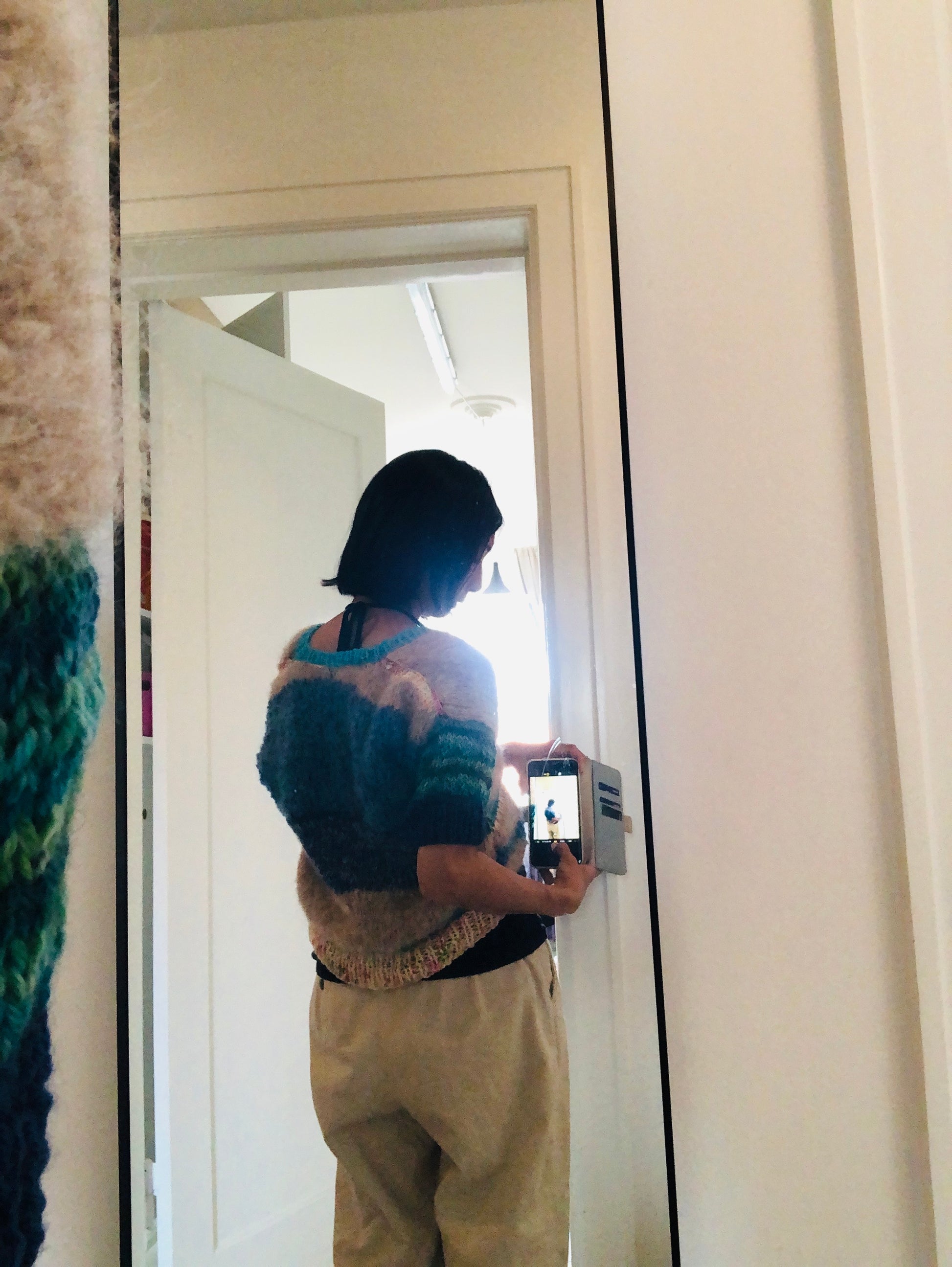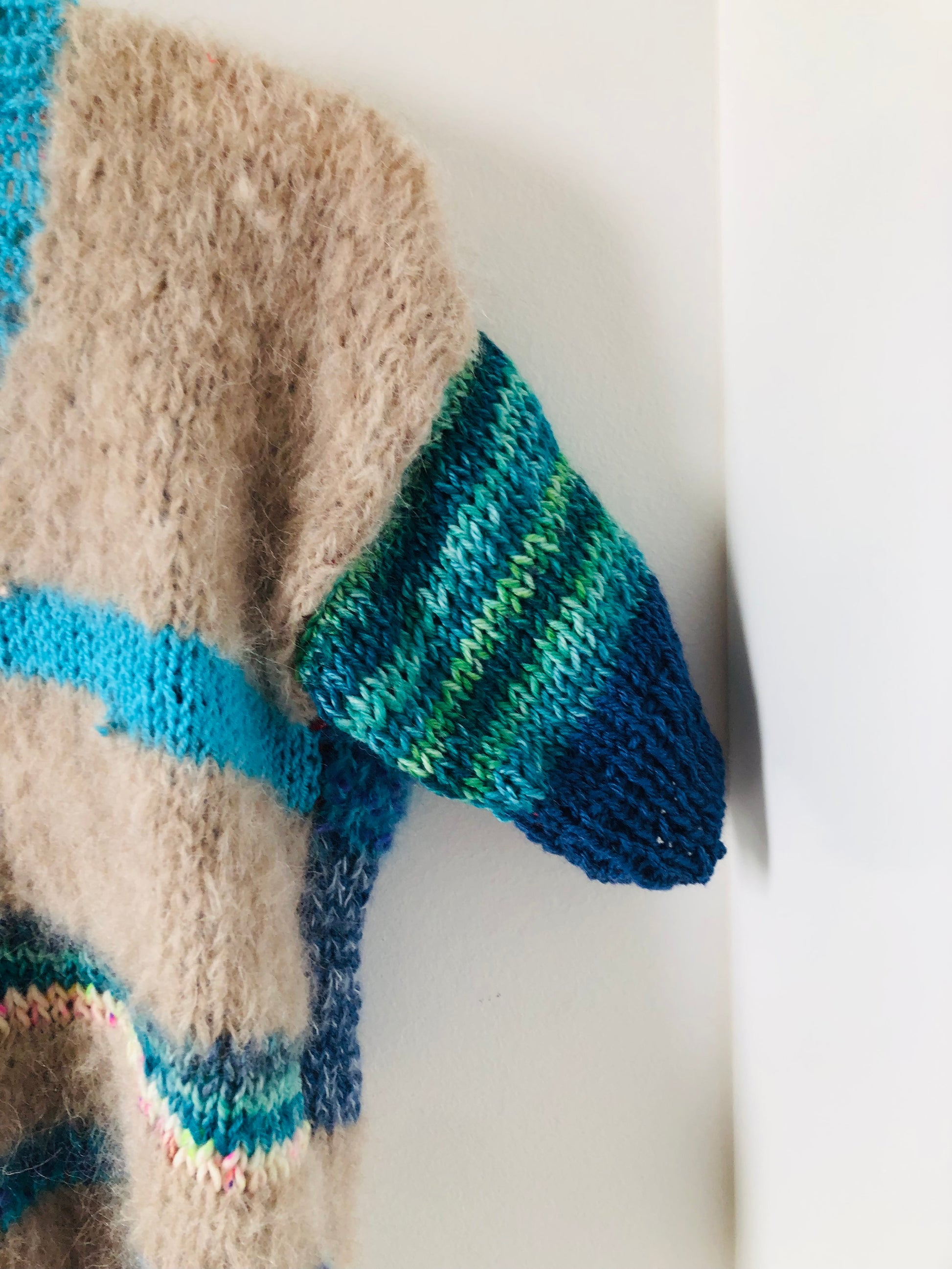 Sweater, Hand-knitted, Slow Fashion, Fancy Yarn, Oneofakind, Short Sleeve, Short Length, Mohair, 2233