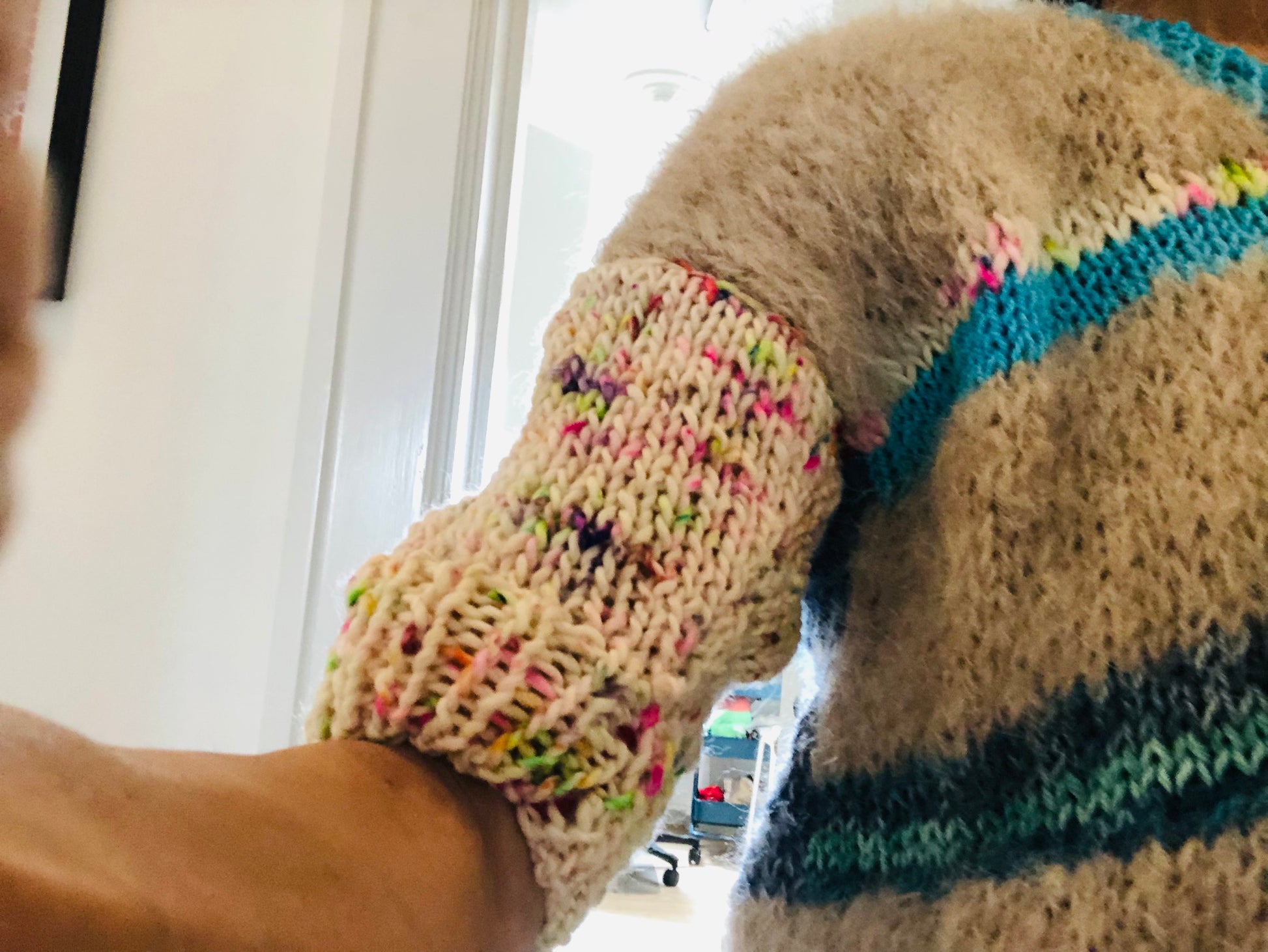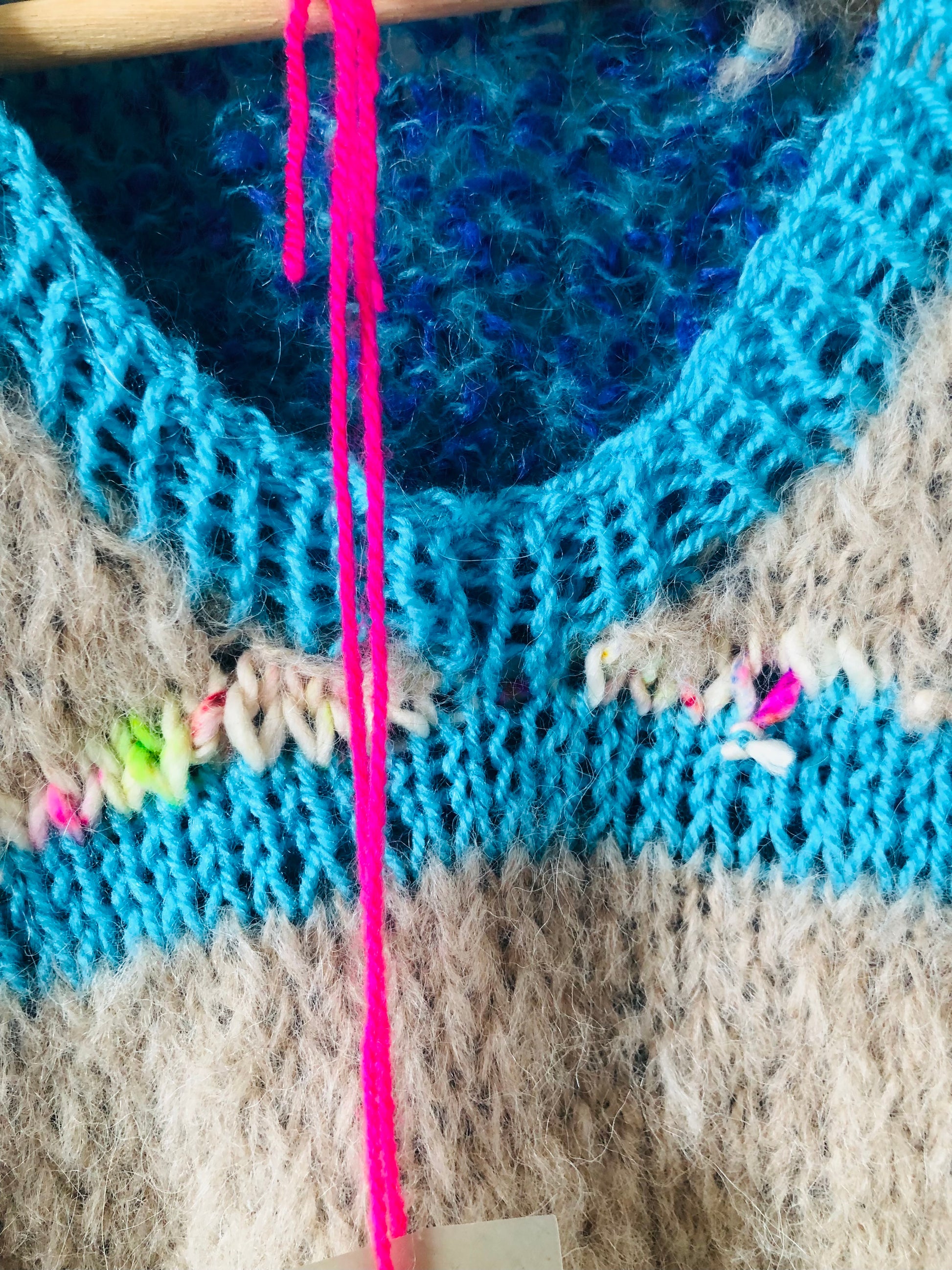 Using a variety of yarns, we created a one-of-a-kind sweater.