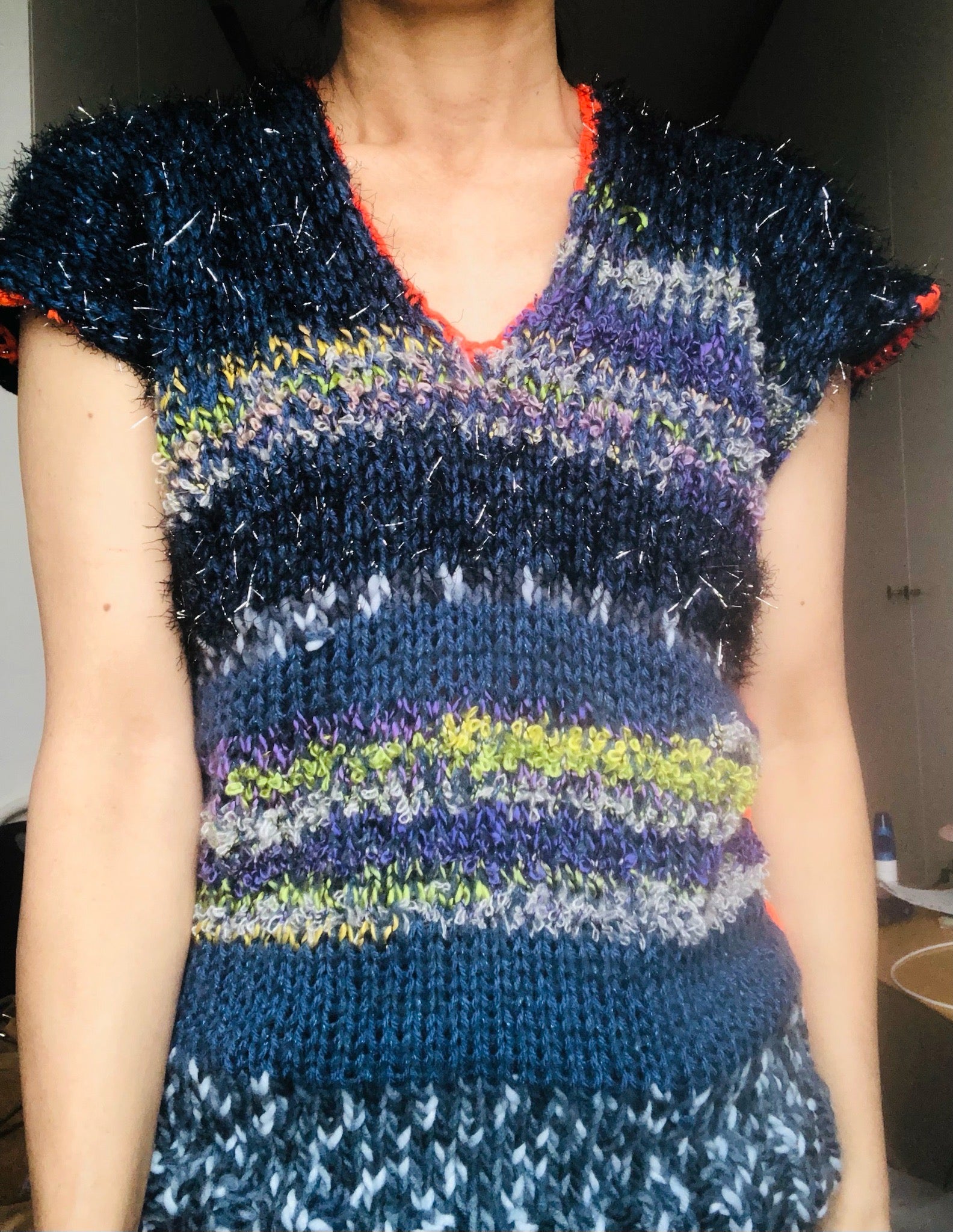 Sweater Hand Knitted Slow Fashion Fancy Yarn Oneofakind Short Mohair 2188
