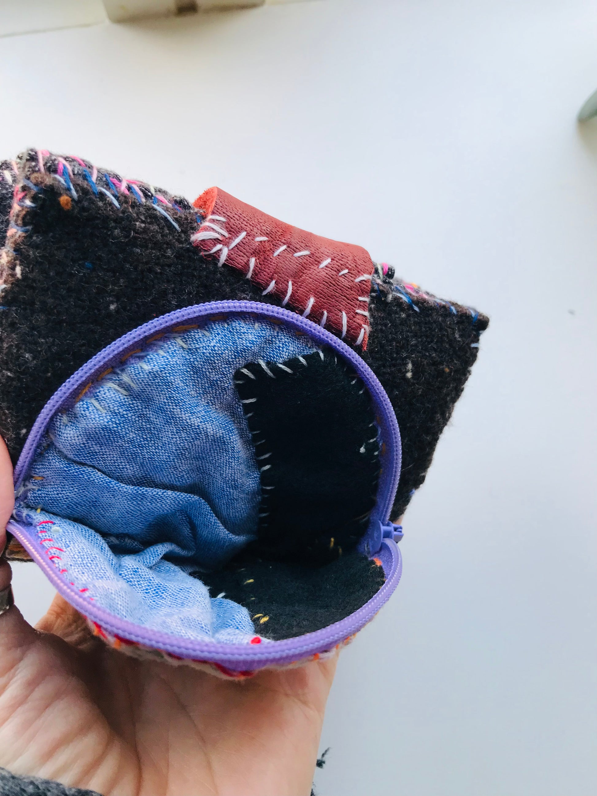 This wallet is hand sewn.