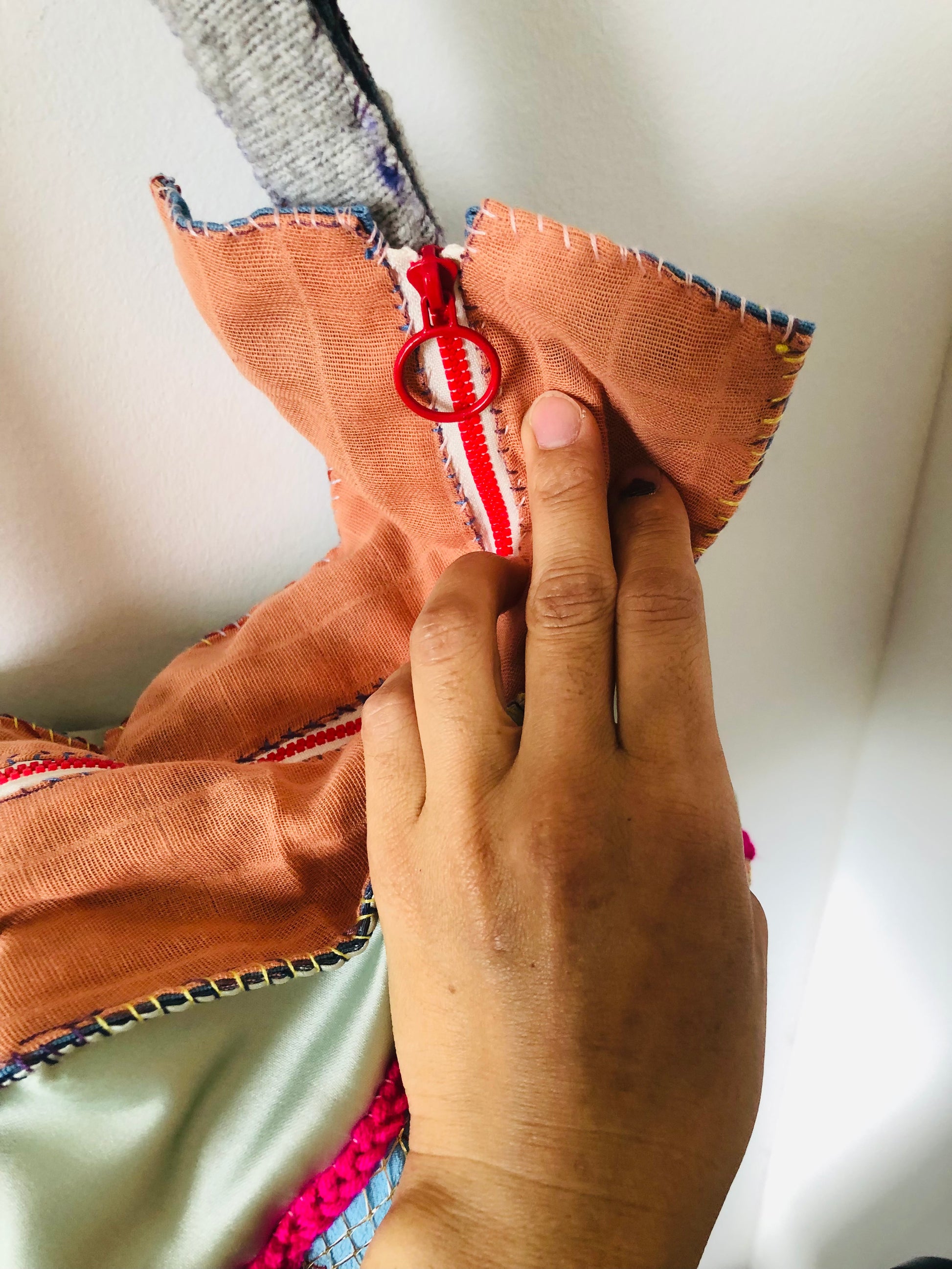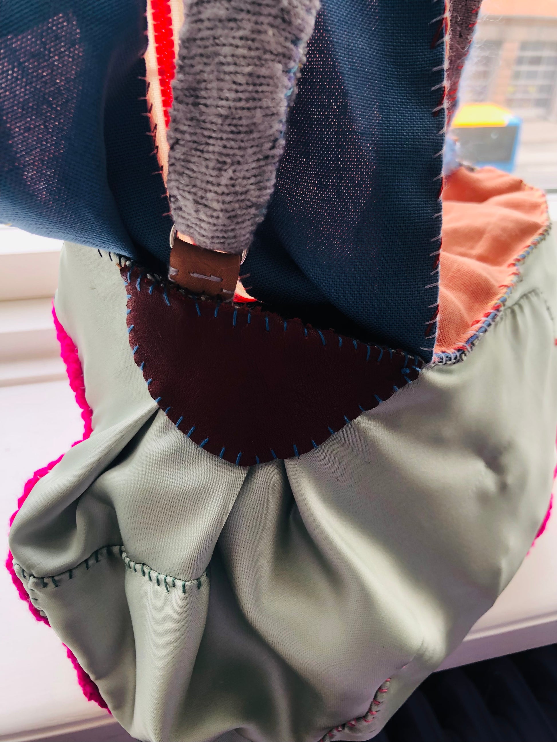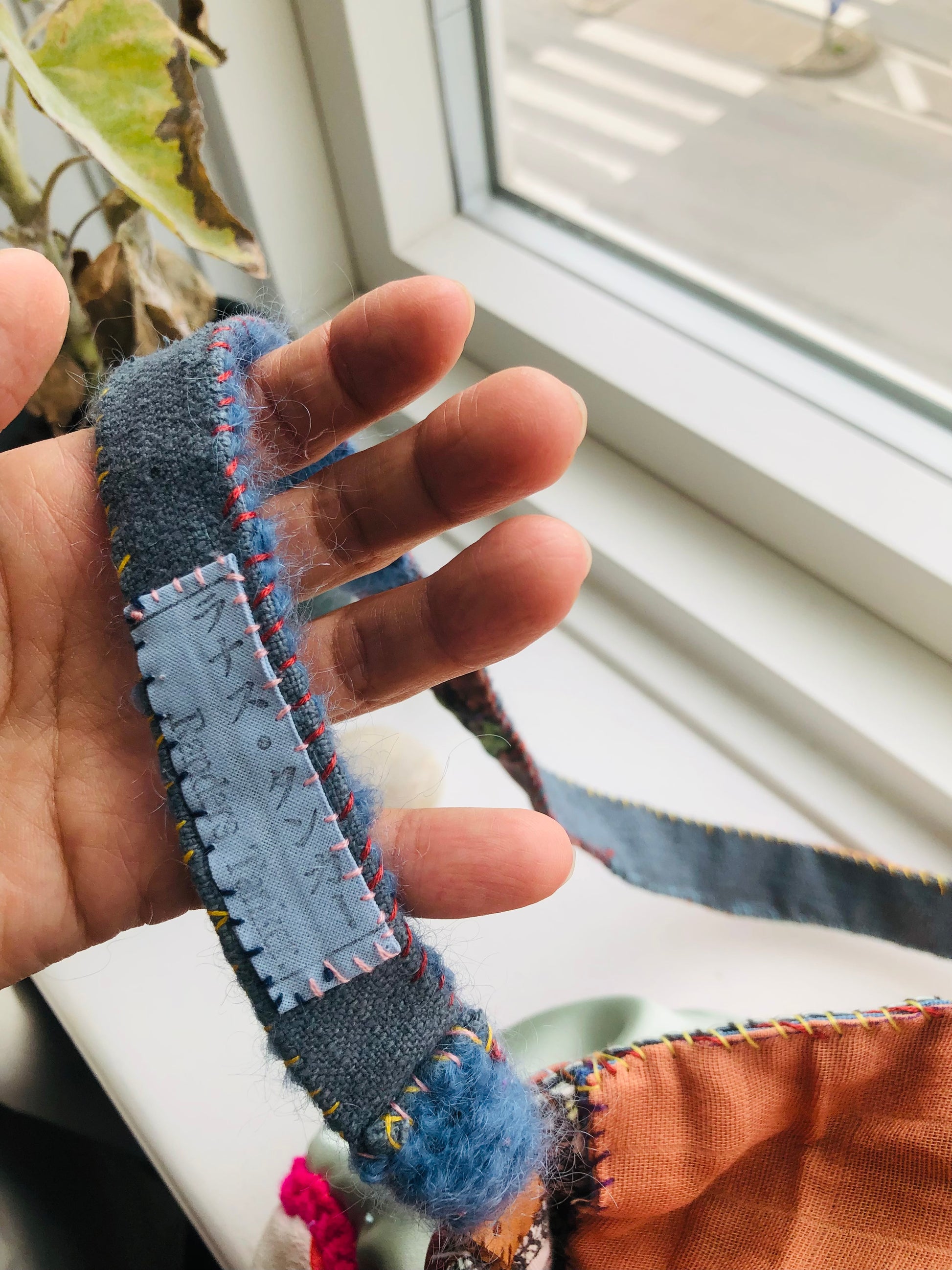Made of fabric. Hand sewn.