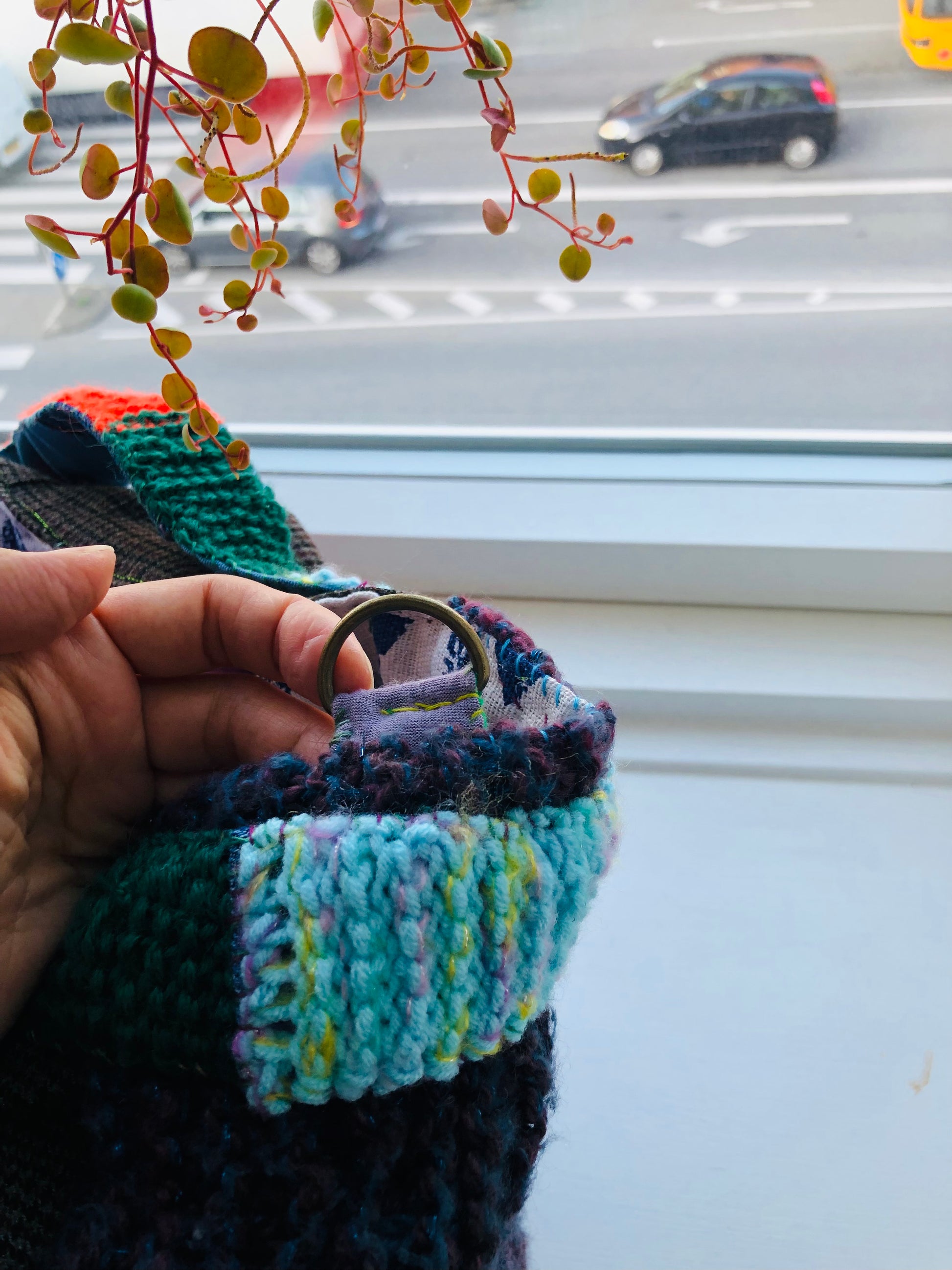 ⭕️The handle is hand-knitted and short.