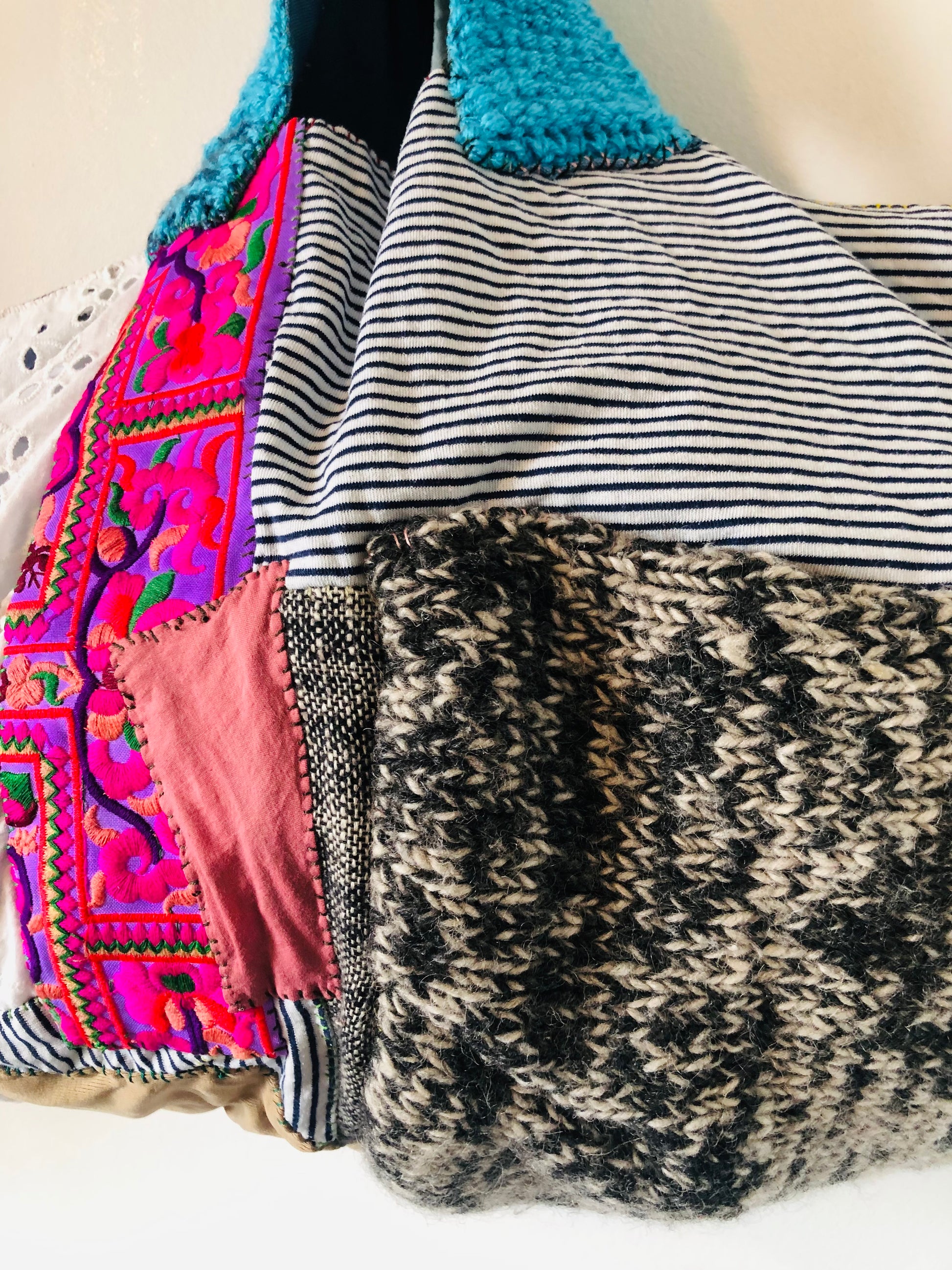 Bag Hand-sewn Fabric Tote Bag Slow Fashion Handmade 2277