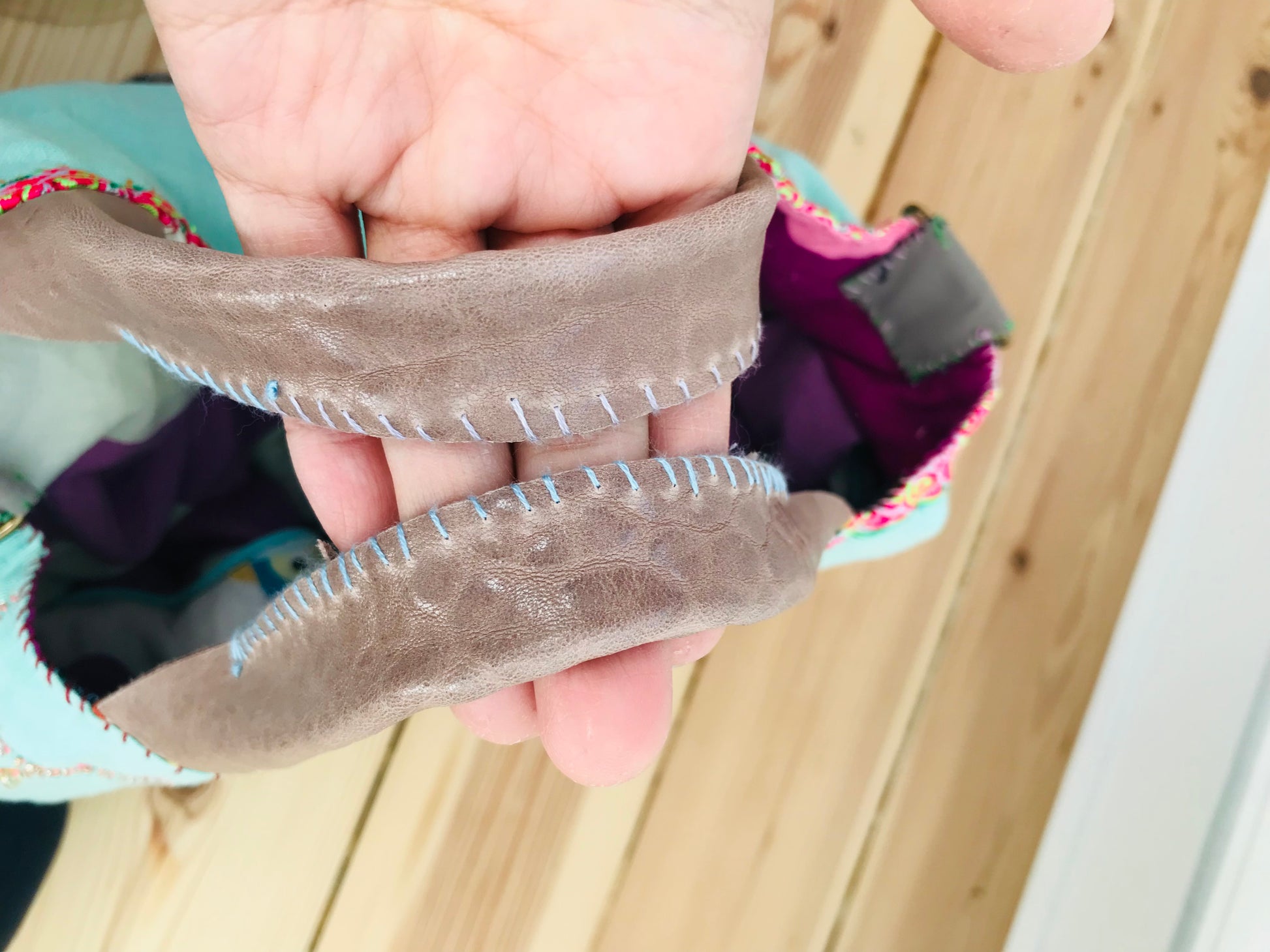 A bag with almost all processes hand-sewn.