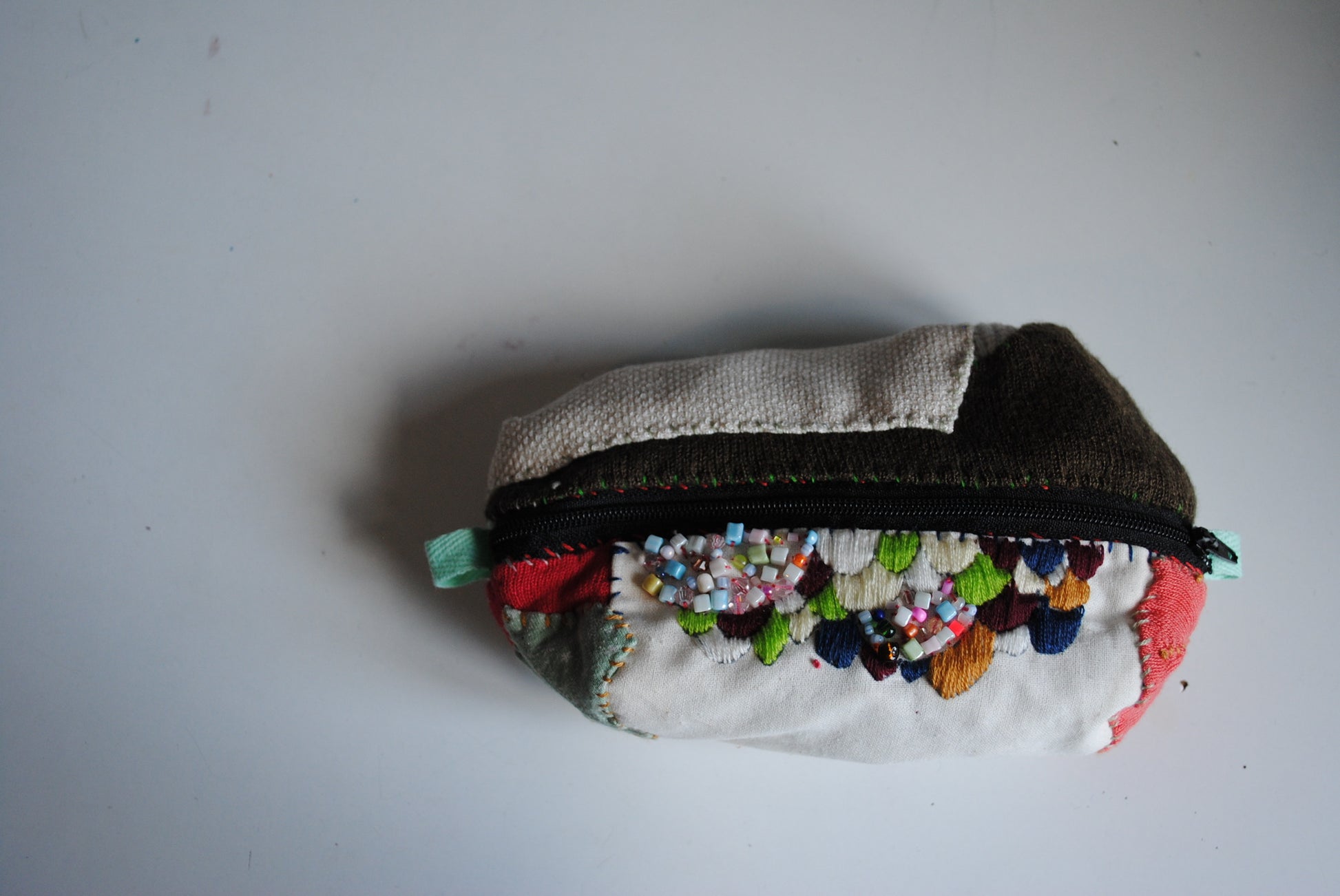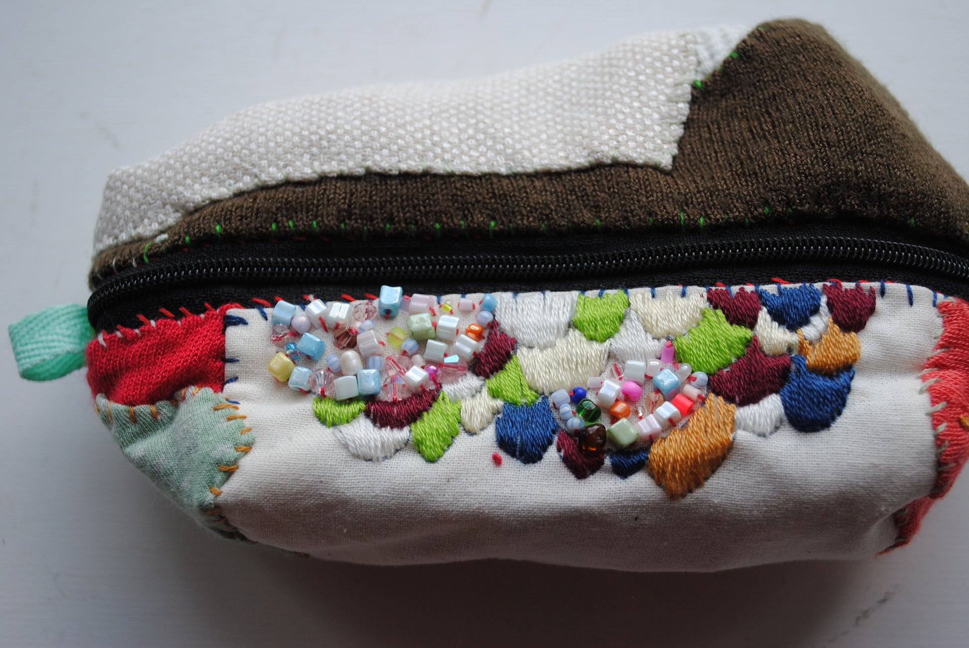 ポーチ 手縫い 布製 ハンドメイド ビーズ刺繍 1604