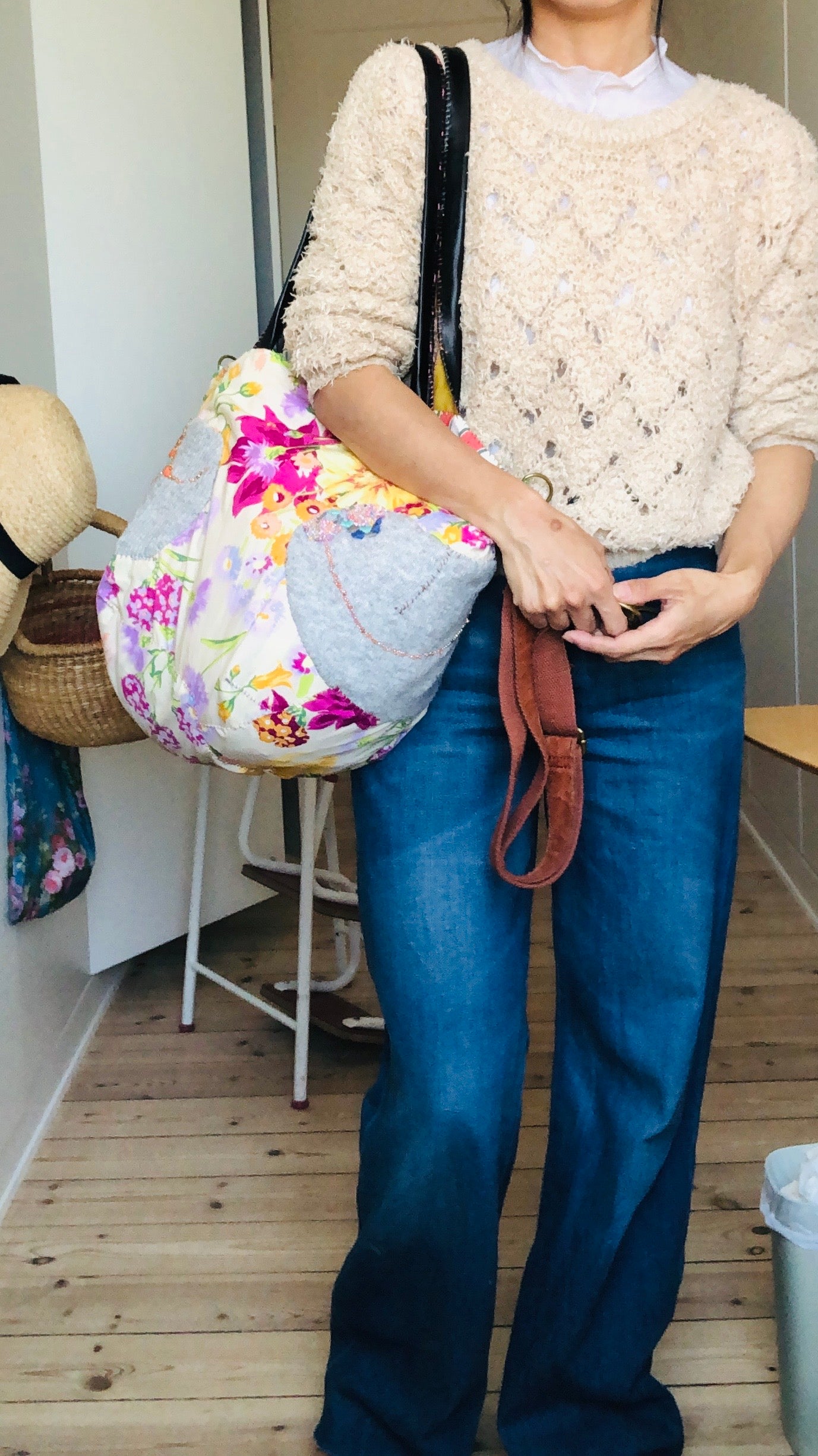 Remade based on No. 1709. Comes with side metal fittings. Handles long enough to be worn over the shoulder.