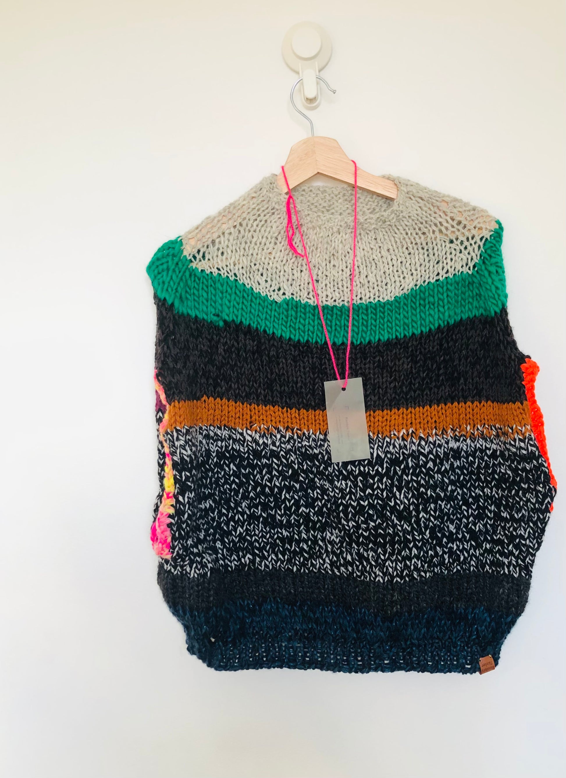 セーター 手編み スローファッション ファンシーヤーン oneofakind ベスト ポンチョ 2304