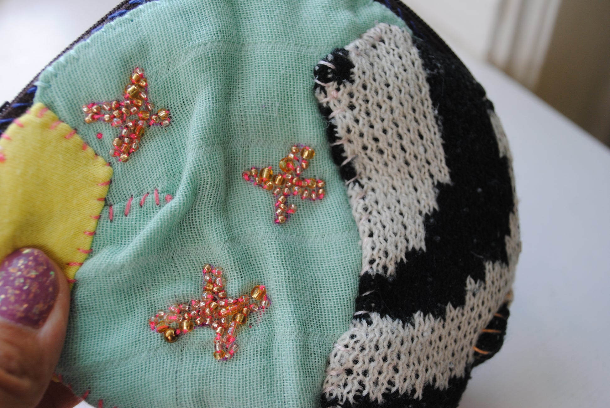 コインケース C1572 ビーズ 手縫い 刺繍 布 小銭入れ ハンドメイド
