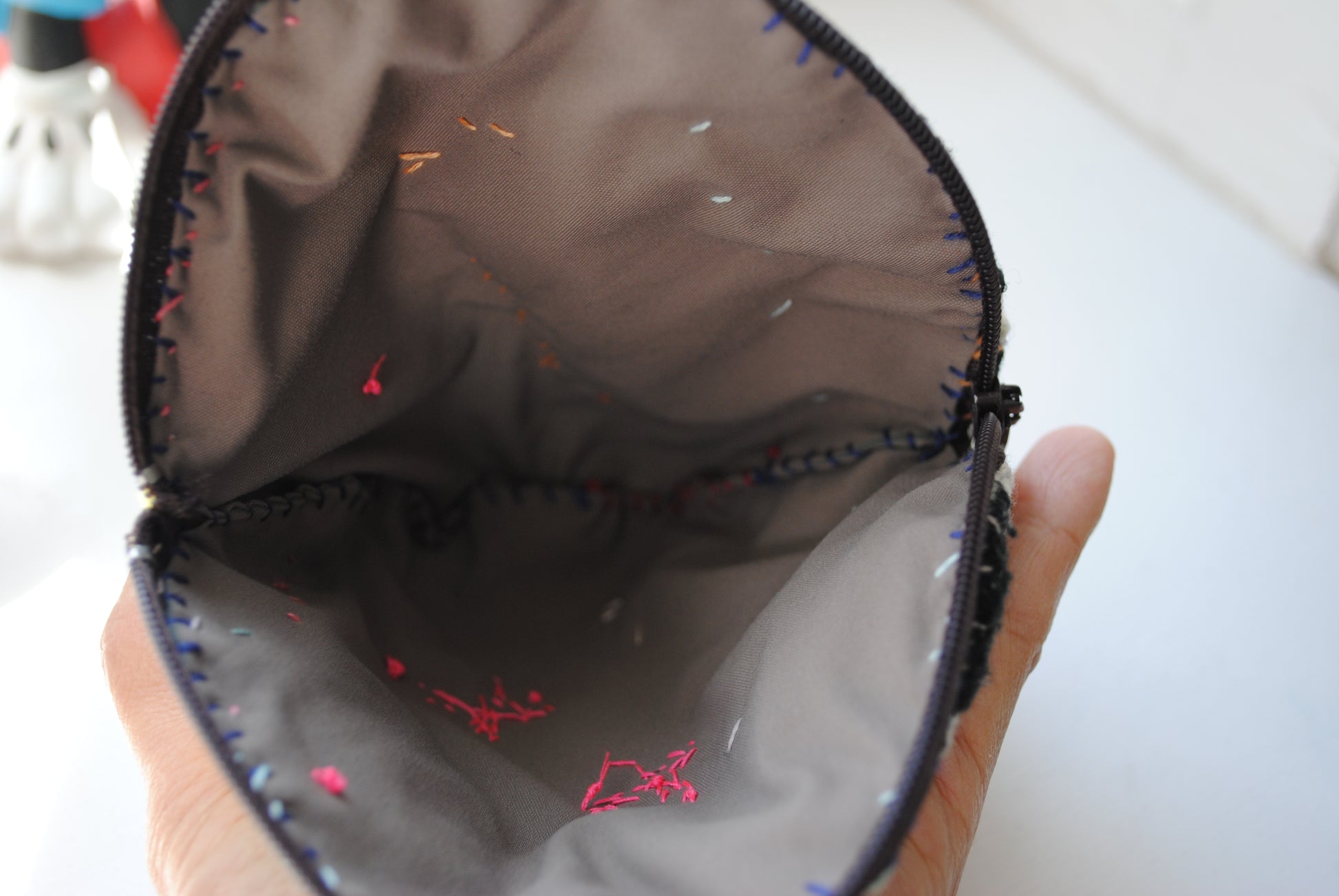 ほぼ全ての工程を手縫いで仕上げたコインケースです。