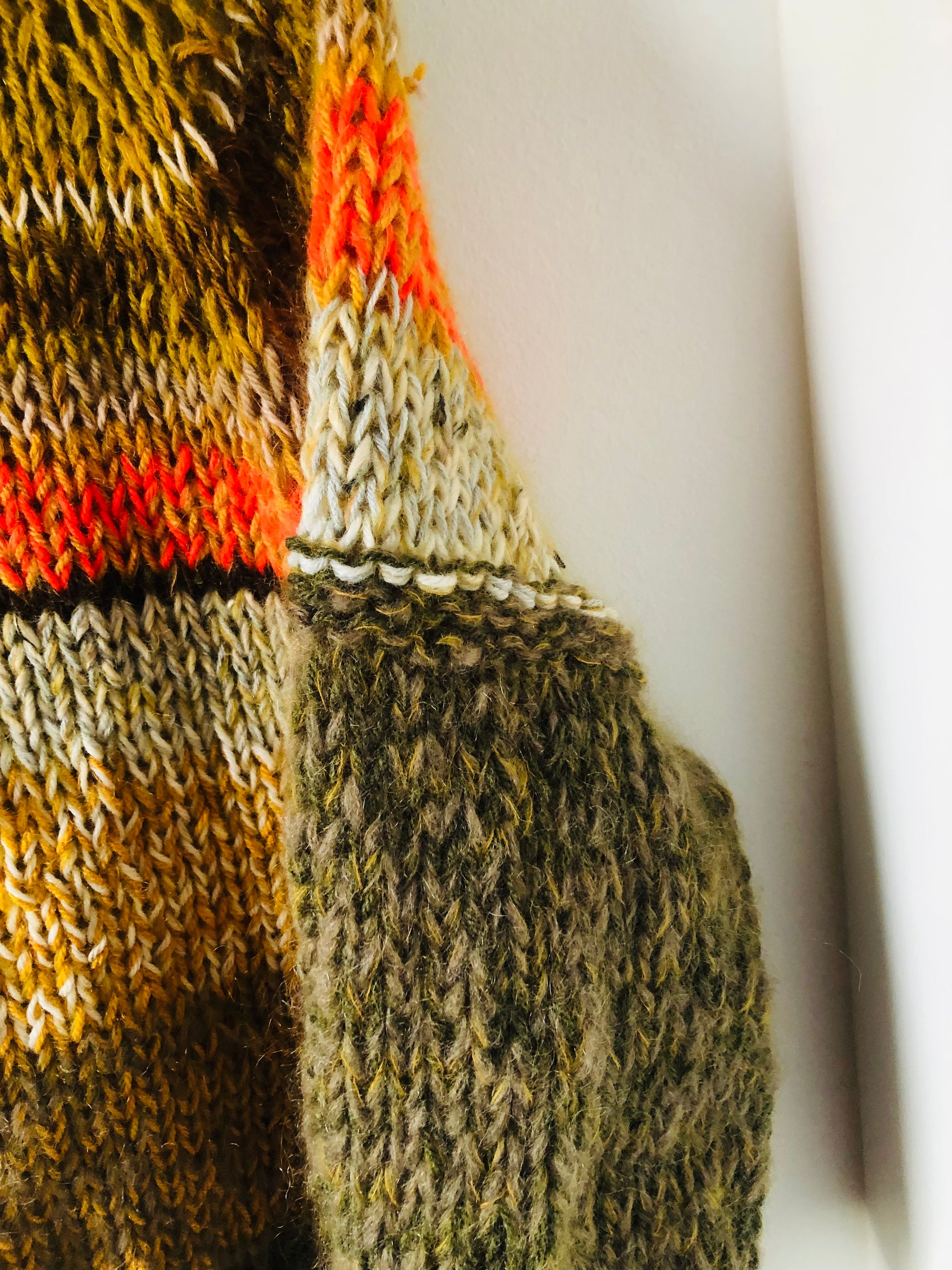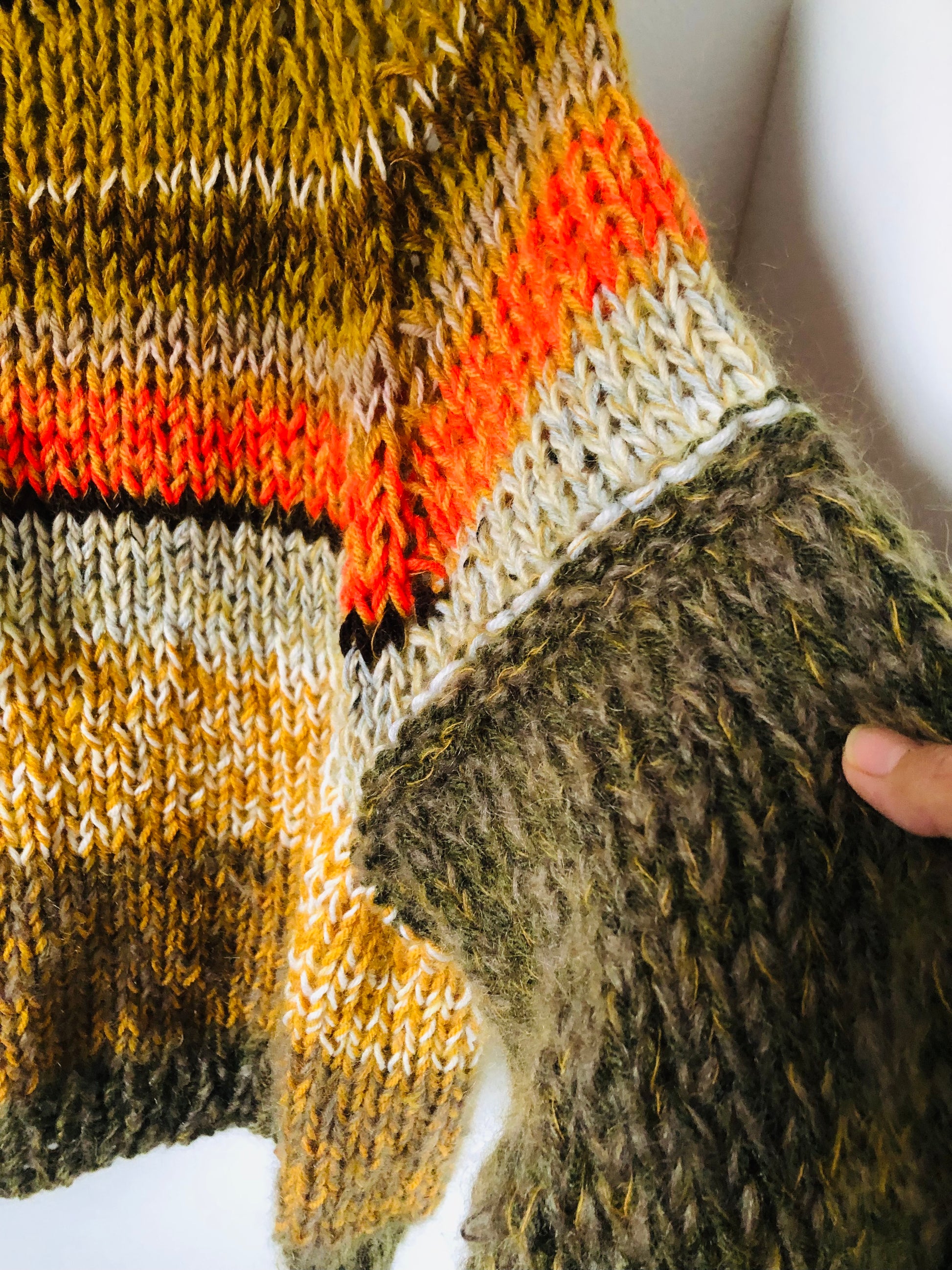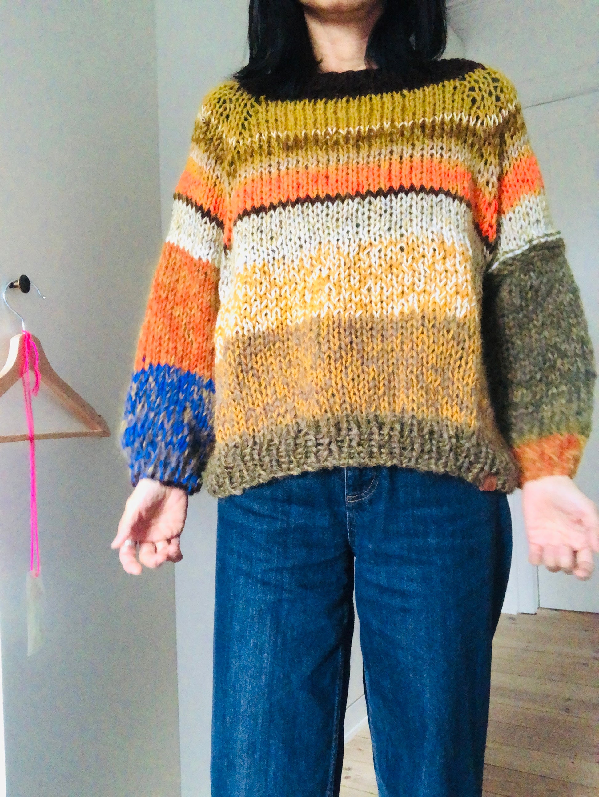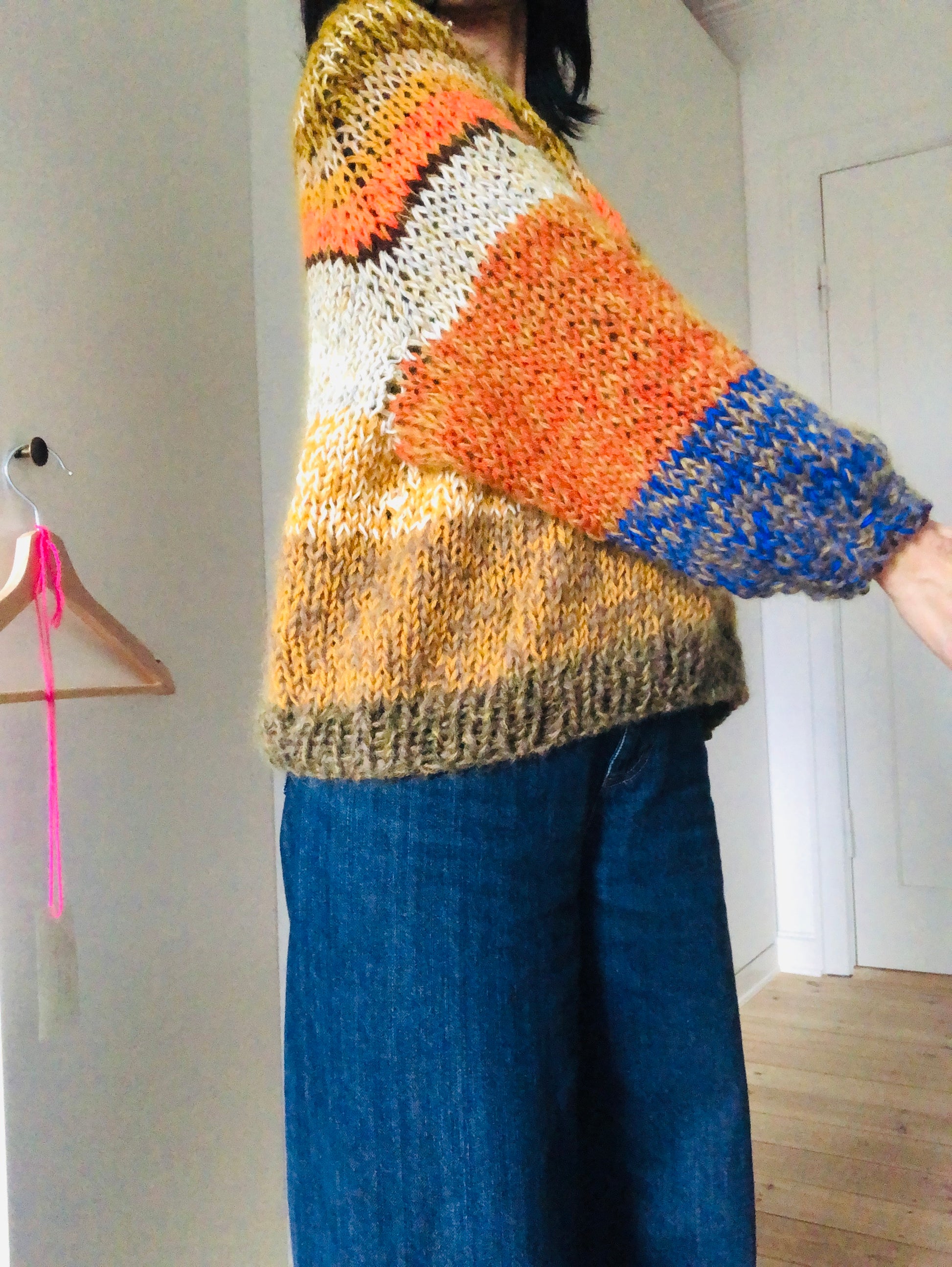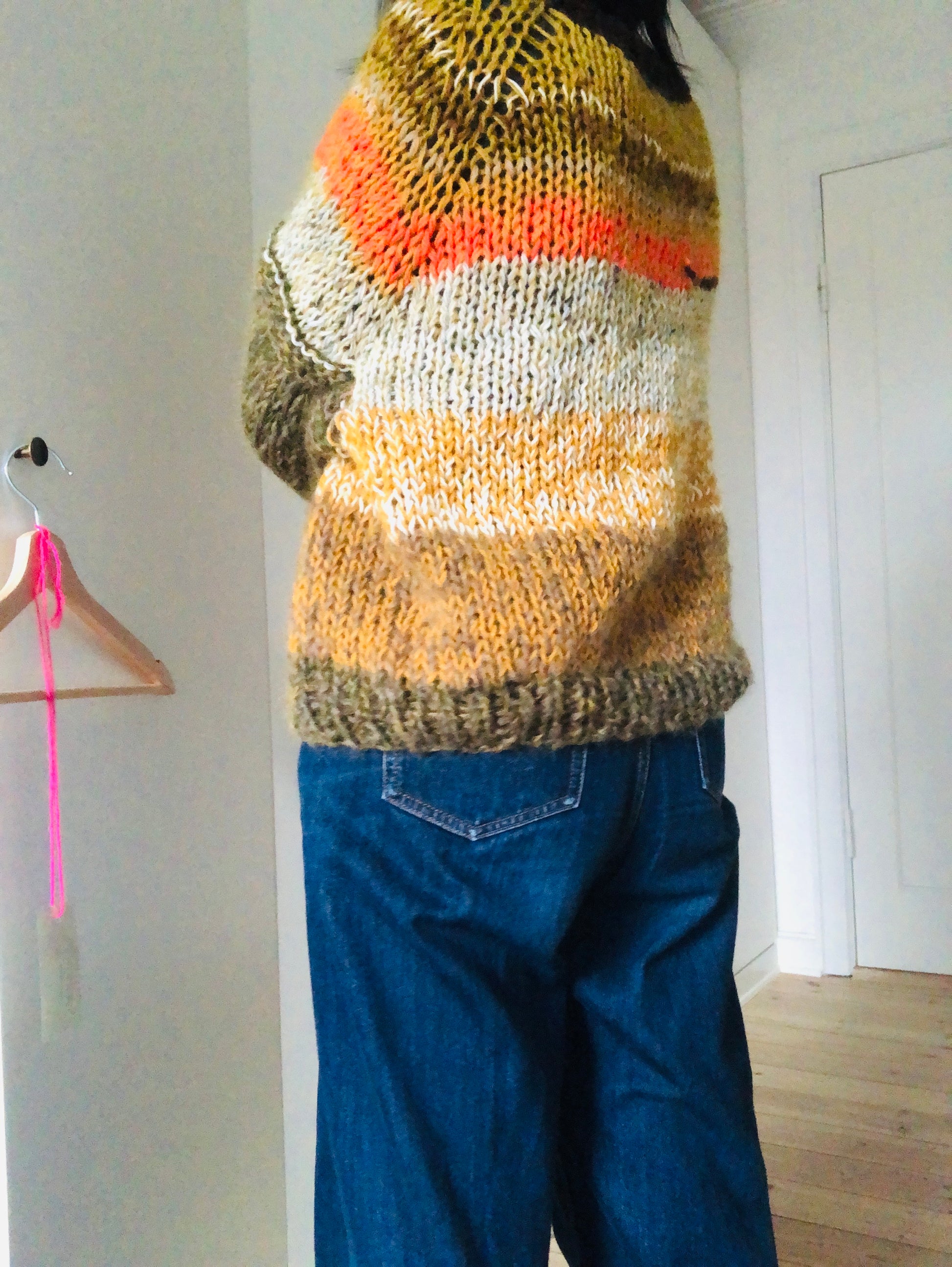 様々な糸を使い、世界に一つのセーターを編みました。