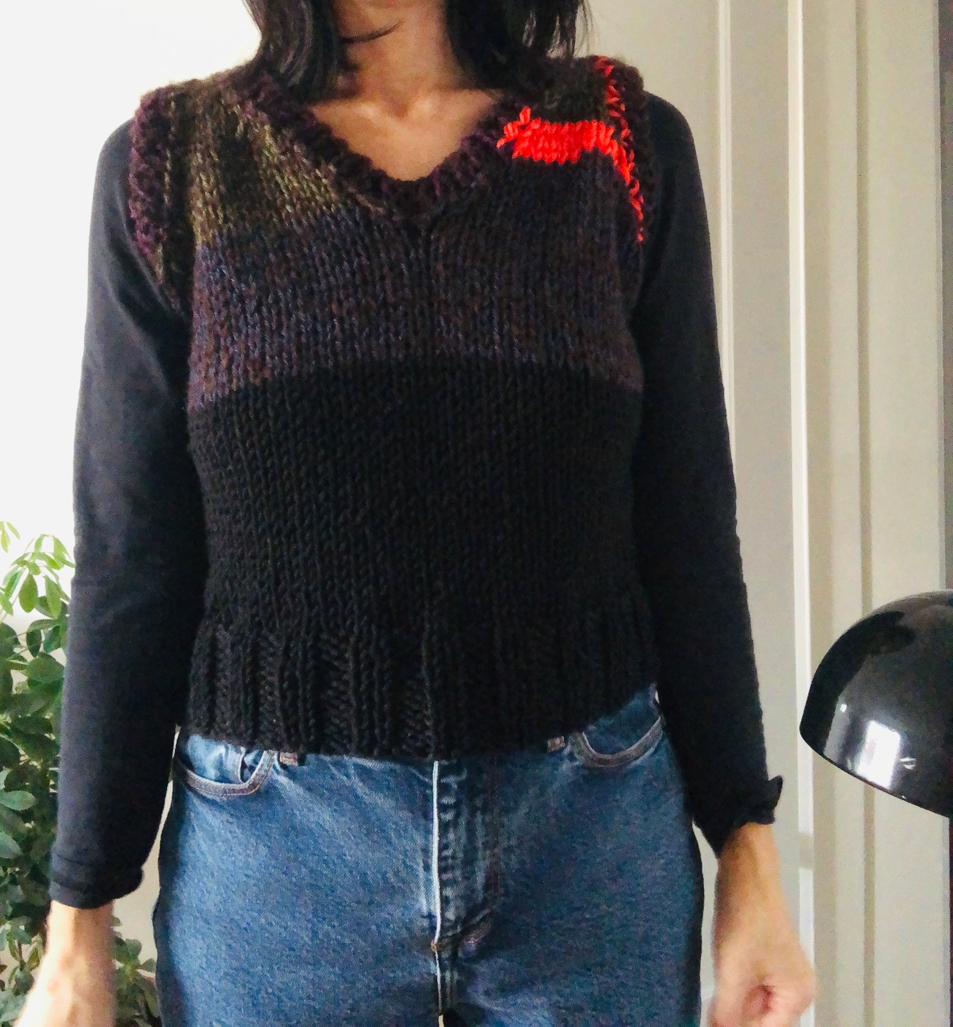 セーター 手編み スローファッション ファンシーヤーン oneofakind ベスト ショート丈 2349
