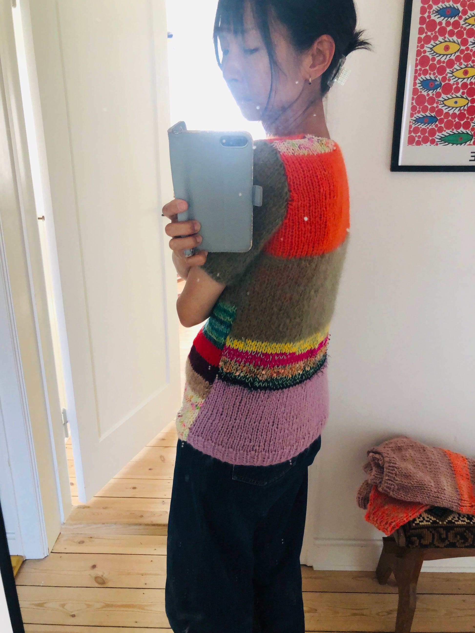 手紡ぎ糸混です❤️ポコポコと変化があって楽しいセーター。