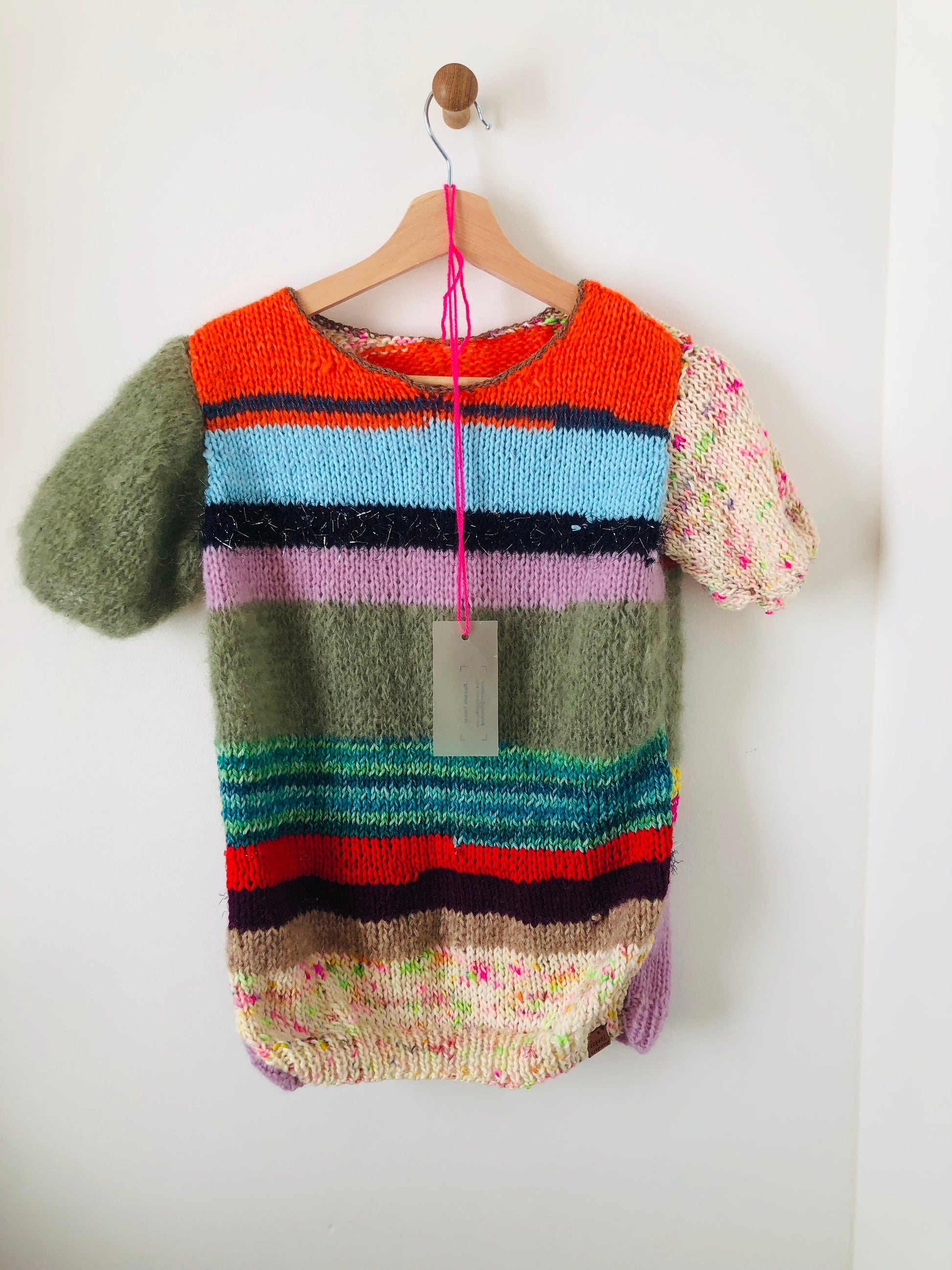 セーター 手編み スローファッション ファンシーヤーン oneofakind 半袖 ショート丈  2278 (コピー)