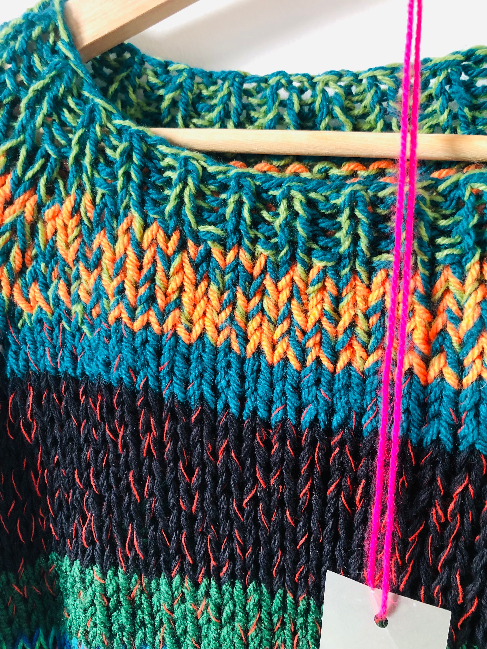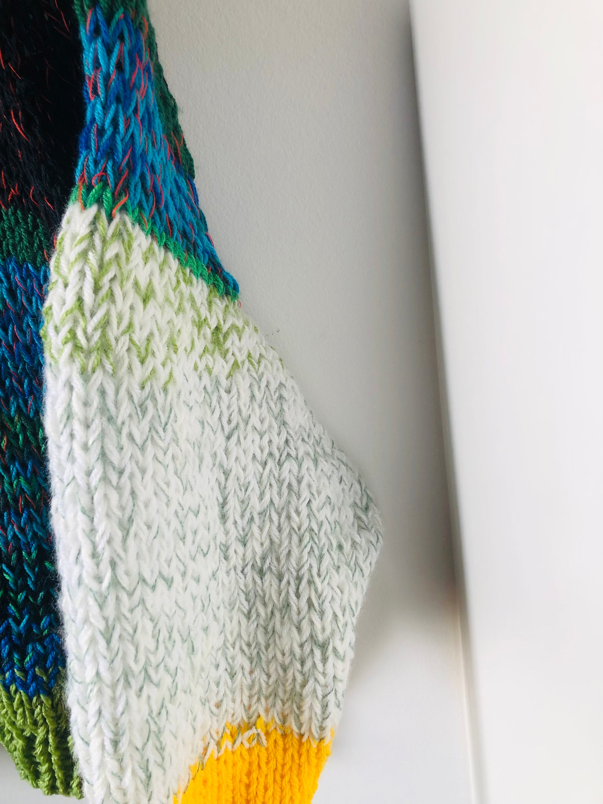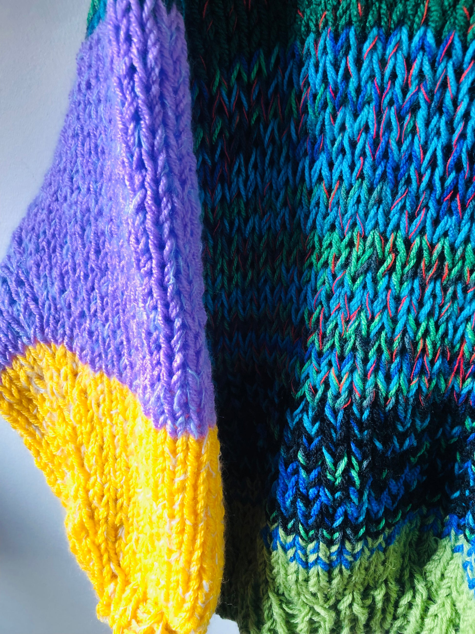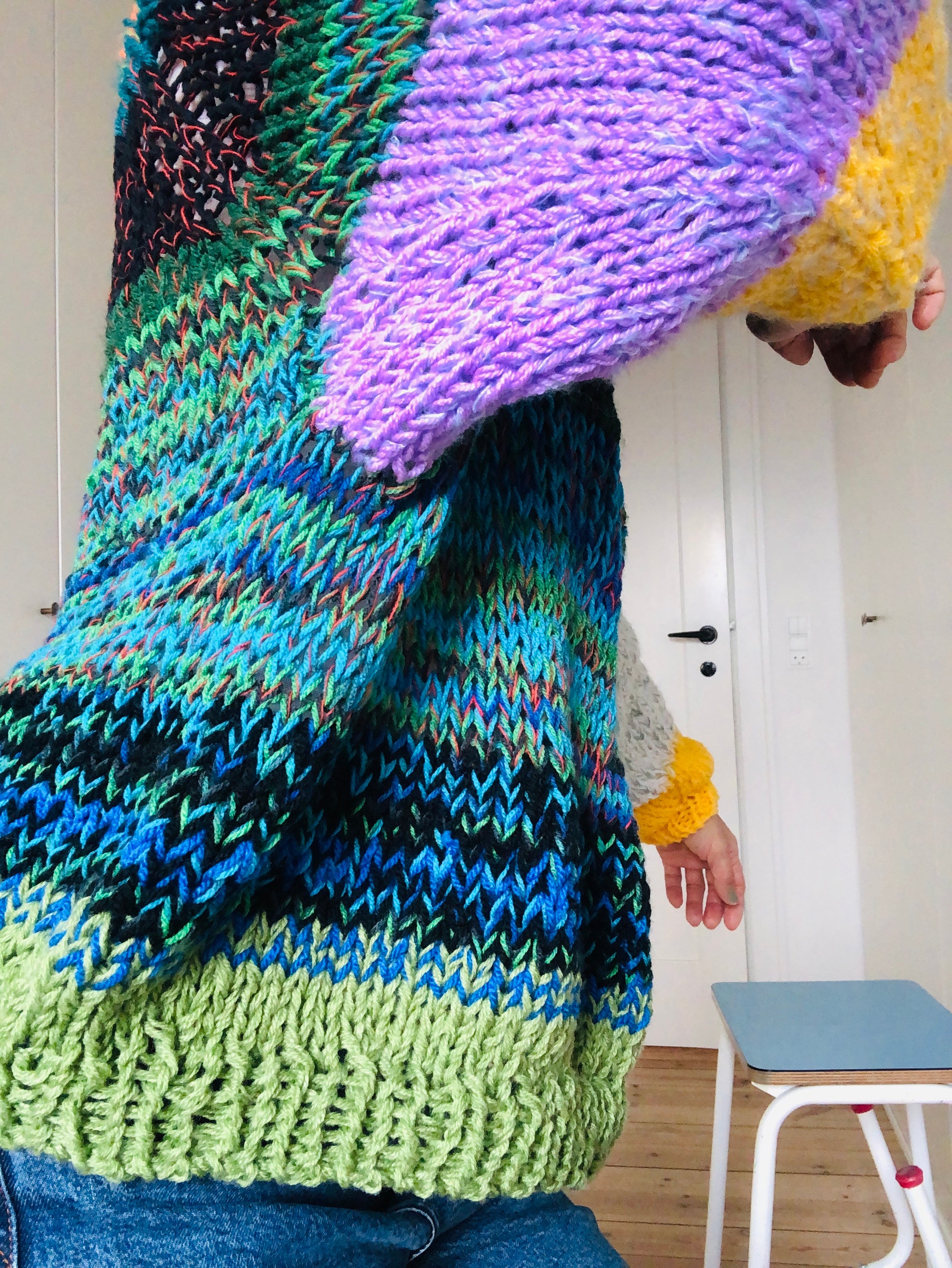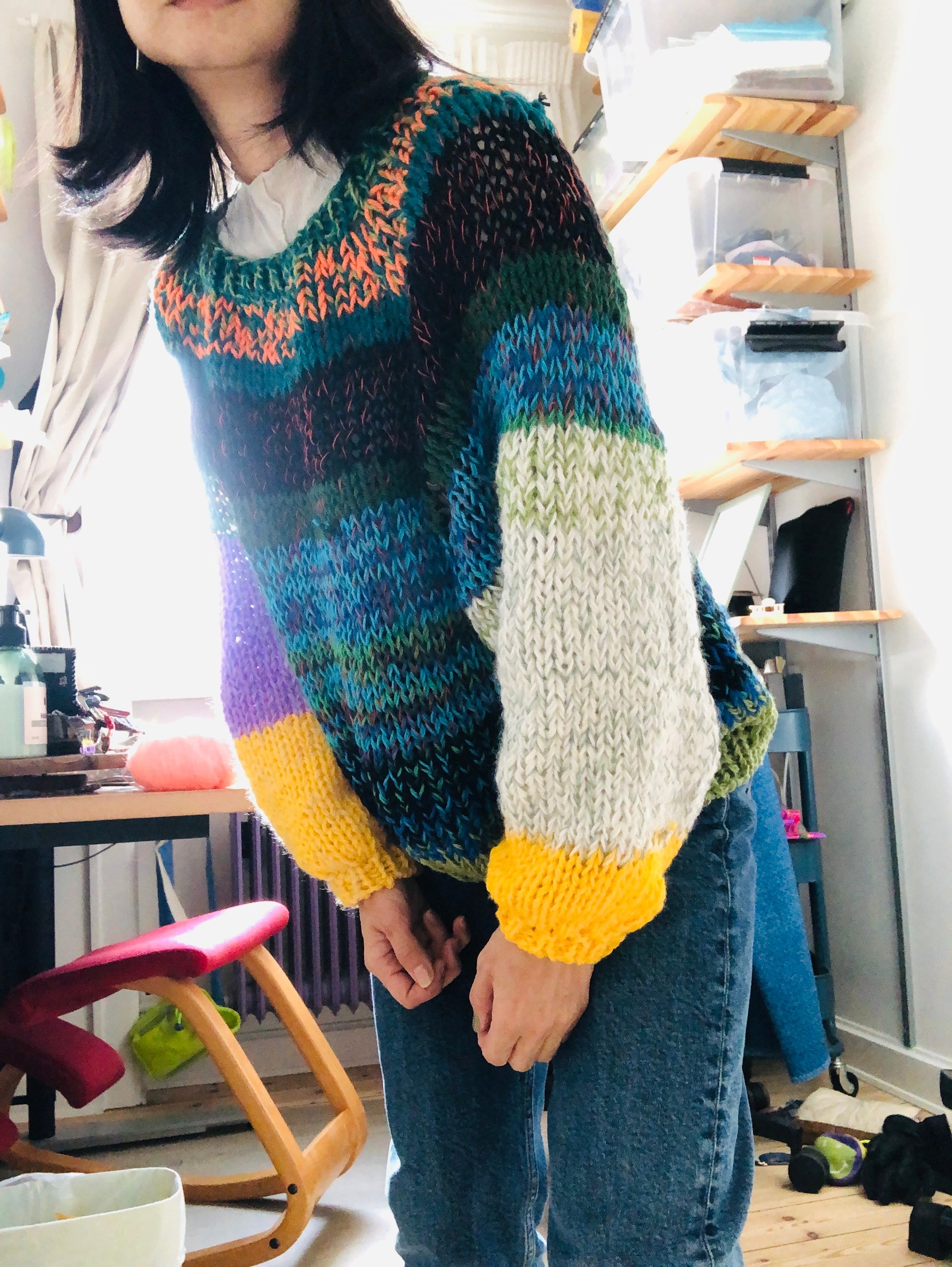 様々な糸を使い、世界に一つのセーターを編みました。