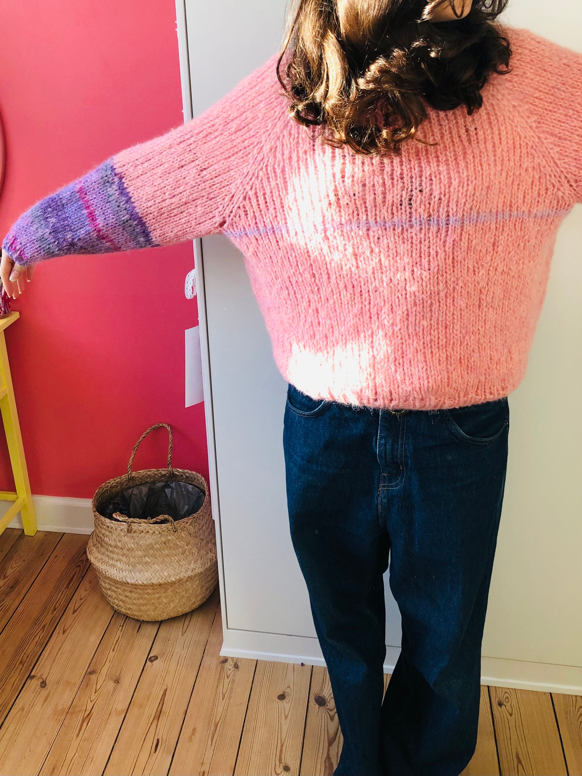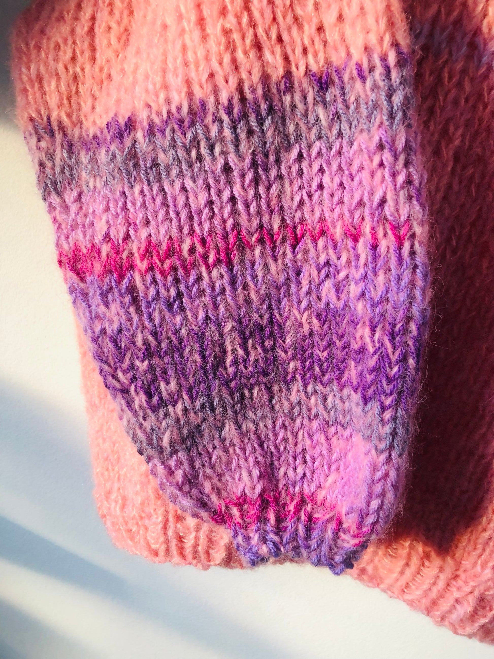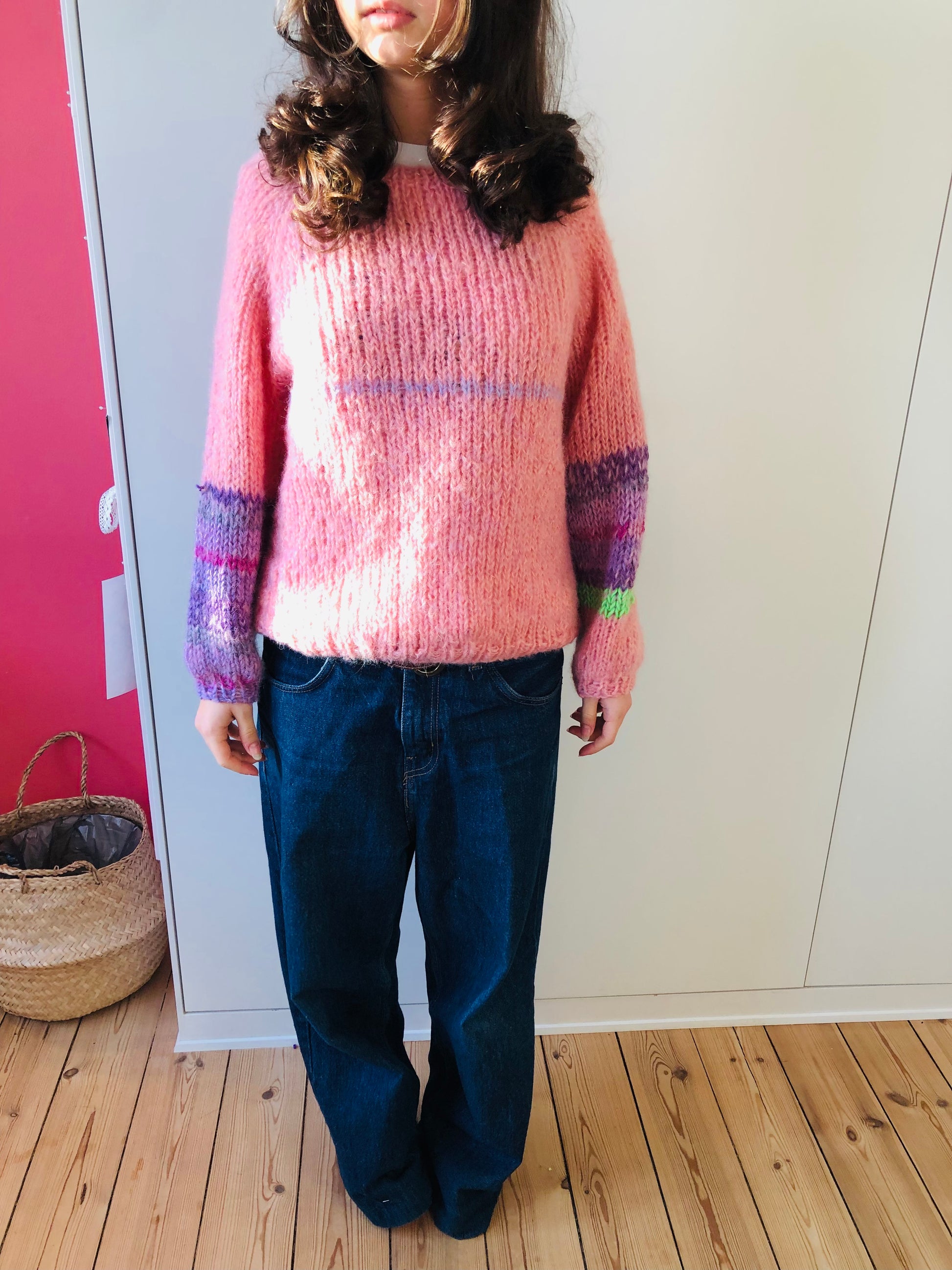 様々な糸を使い、世界に一つのセーターを編みました。