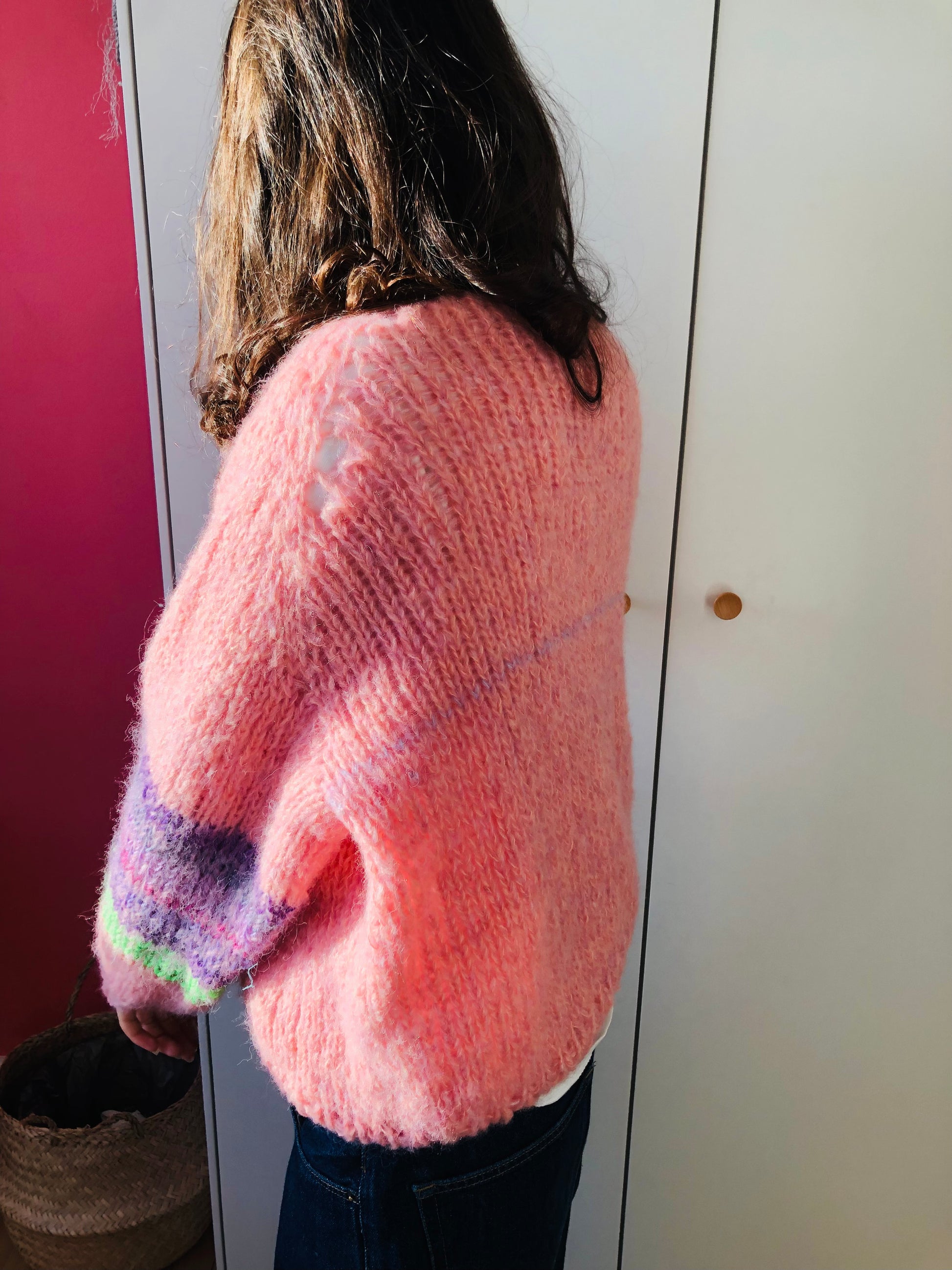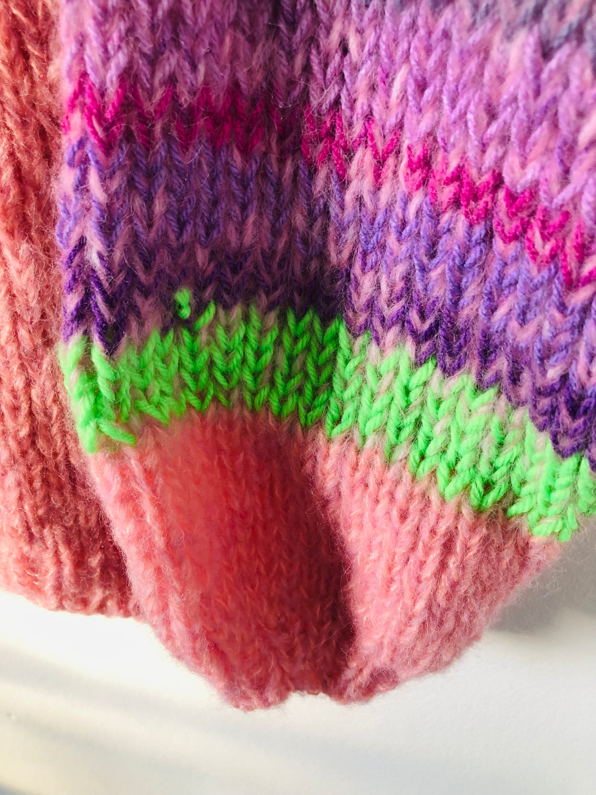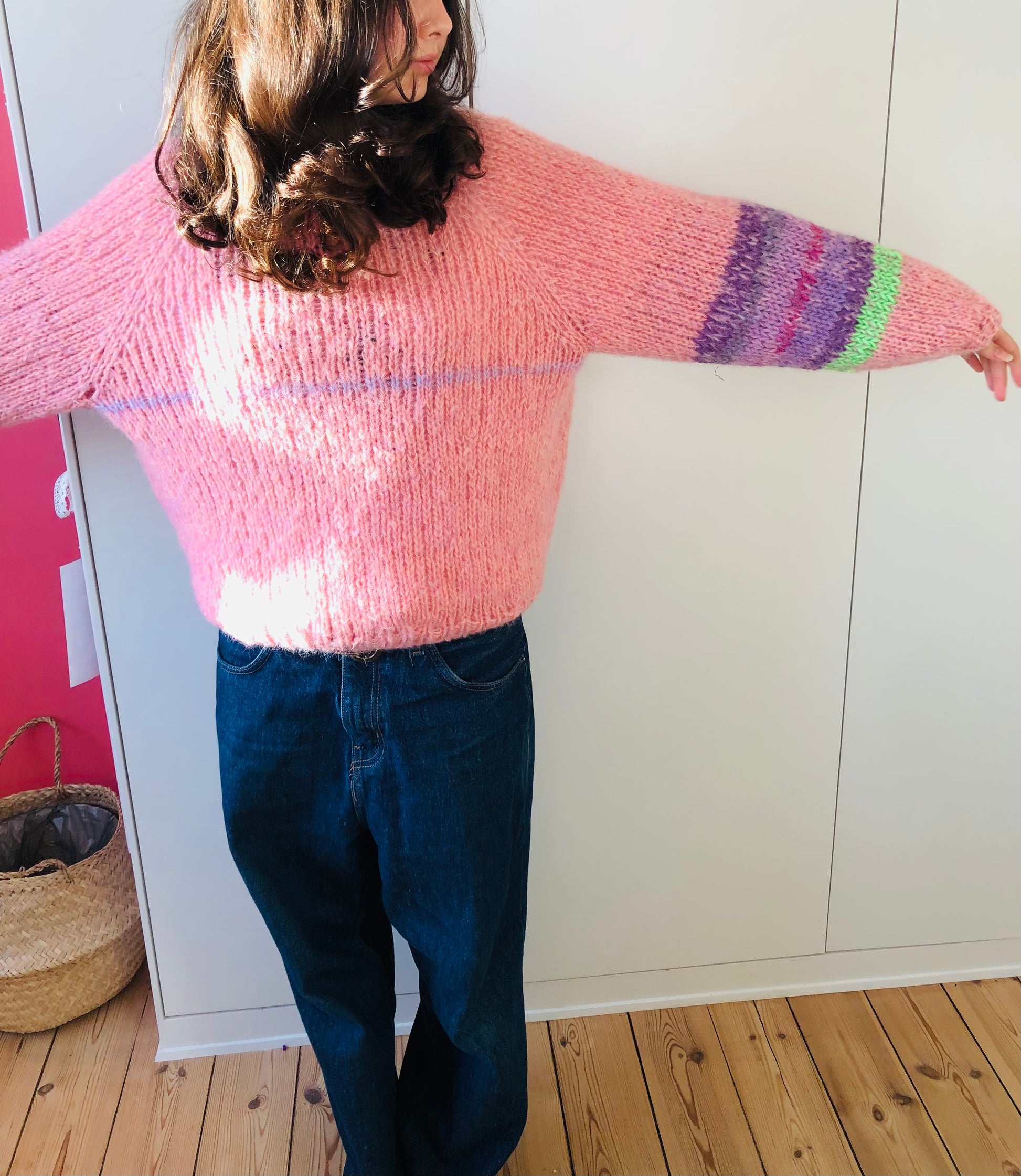 様々な糸を使い、世界に一つのセーターを編みました。
