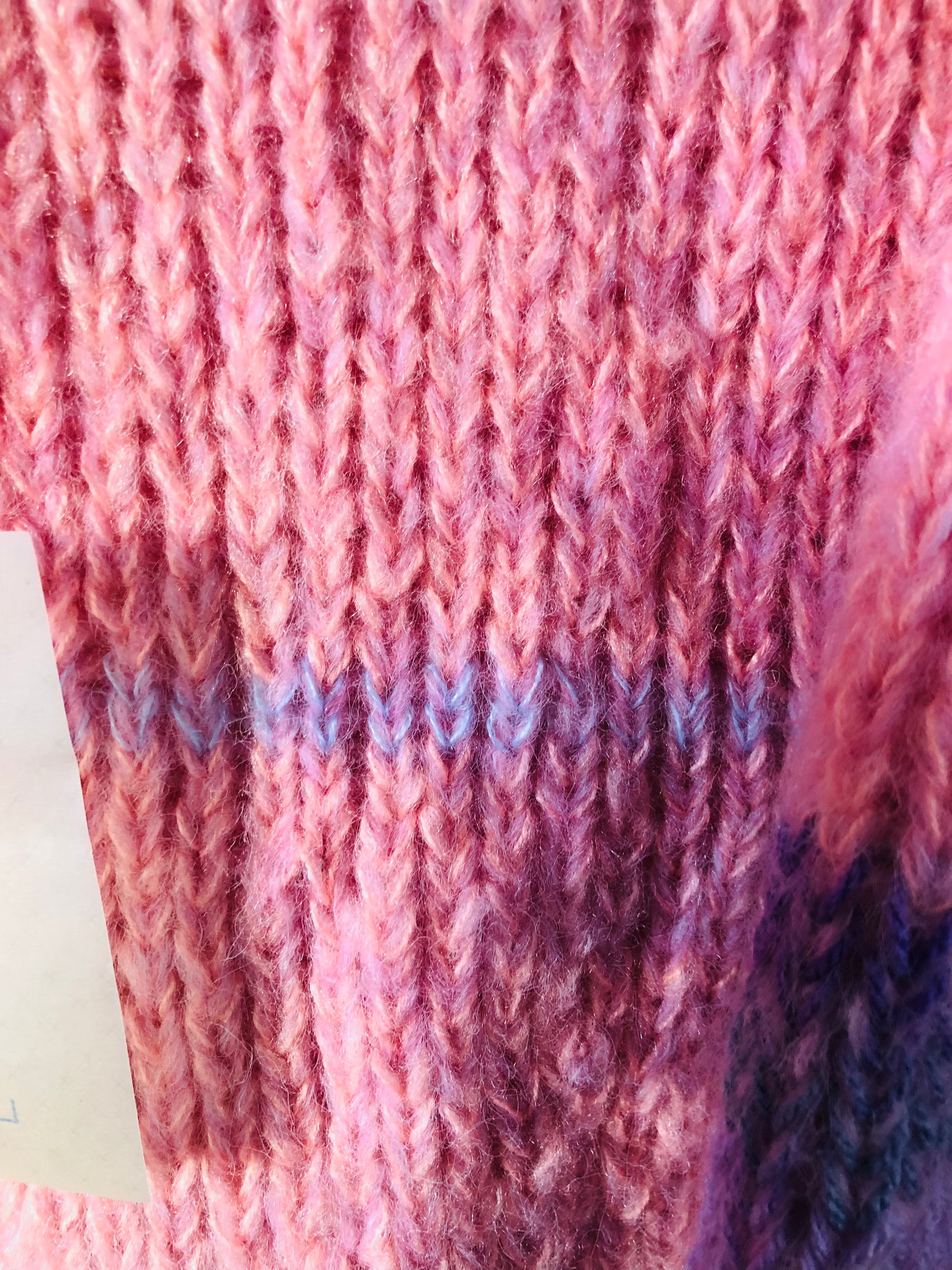 いろいろな毛糸を使っているので、ポコポコと変化があって楽しいセーター。