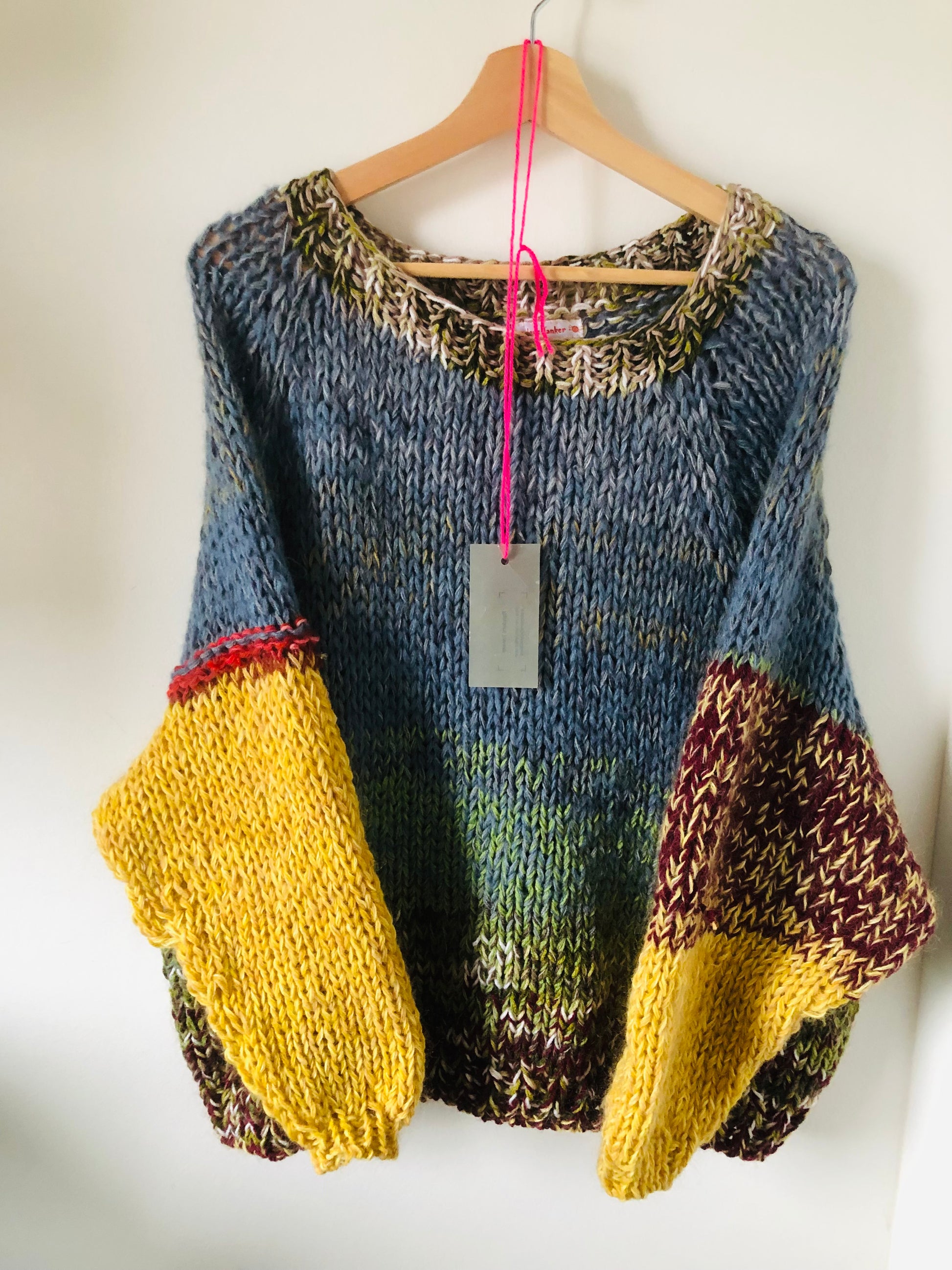 様々な糸を使い、世界に一つのセーターを編みました。