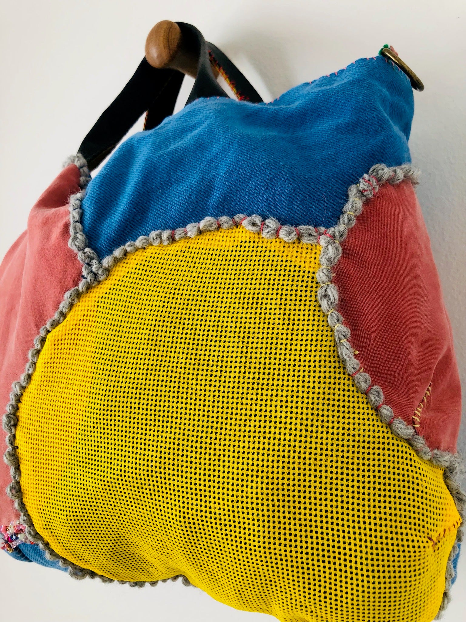 さまざまな種類の生地を使用しています。いくつか色落ちする素材もございます。(革部分など)