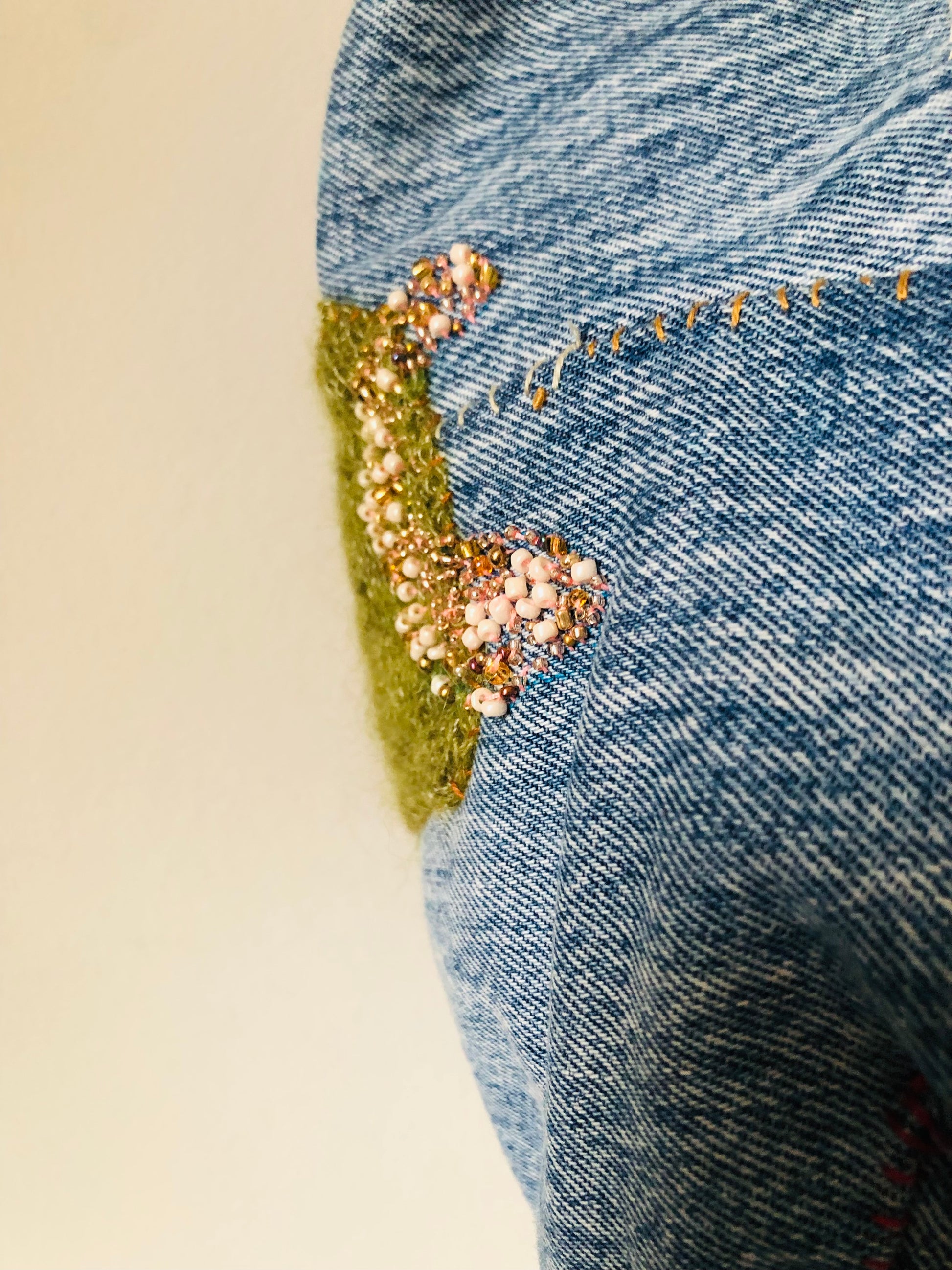 さまざまな種類の生地を使用しています。いくつか色落ちする素材もございます。(革部分など)