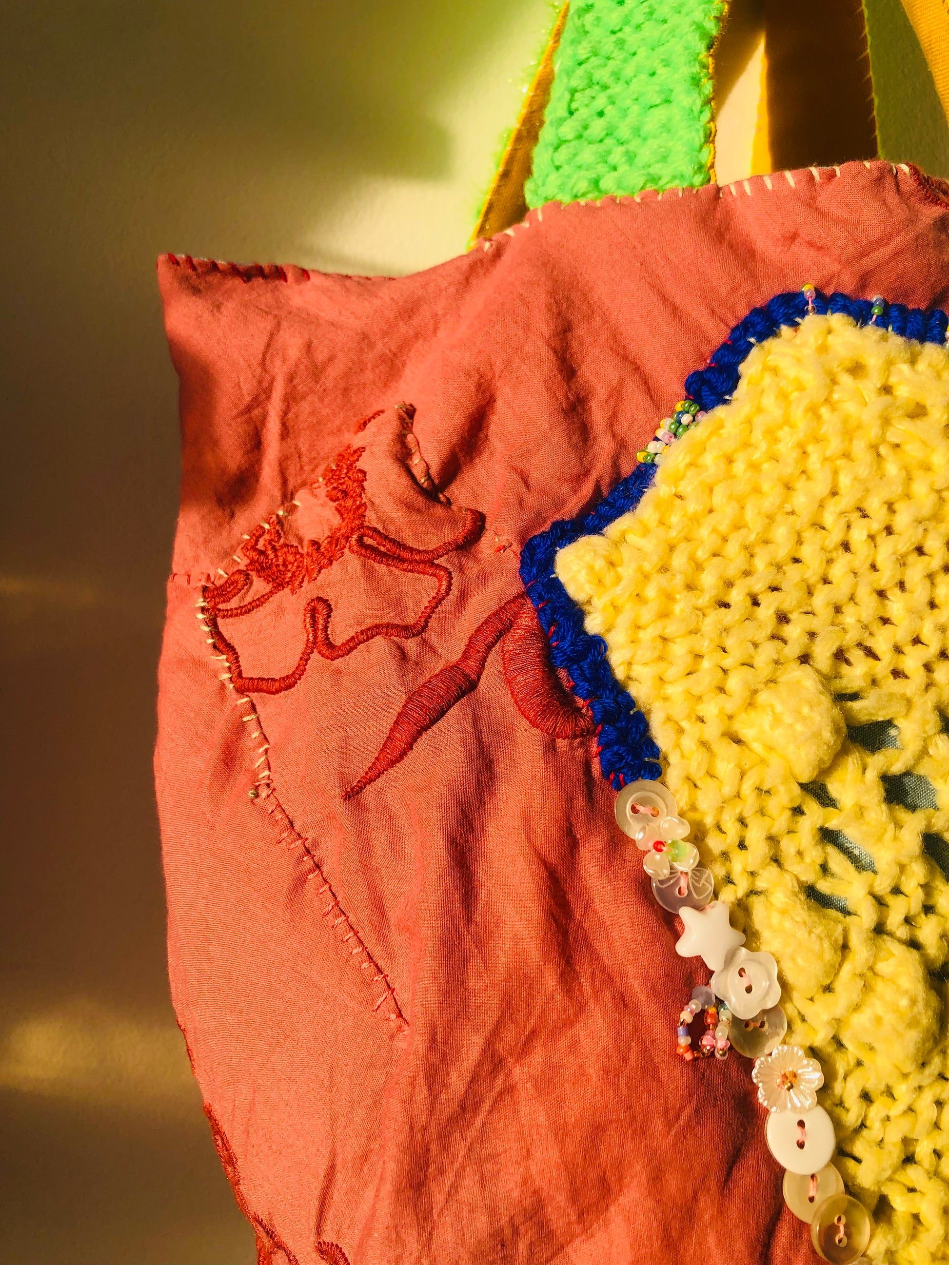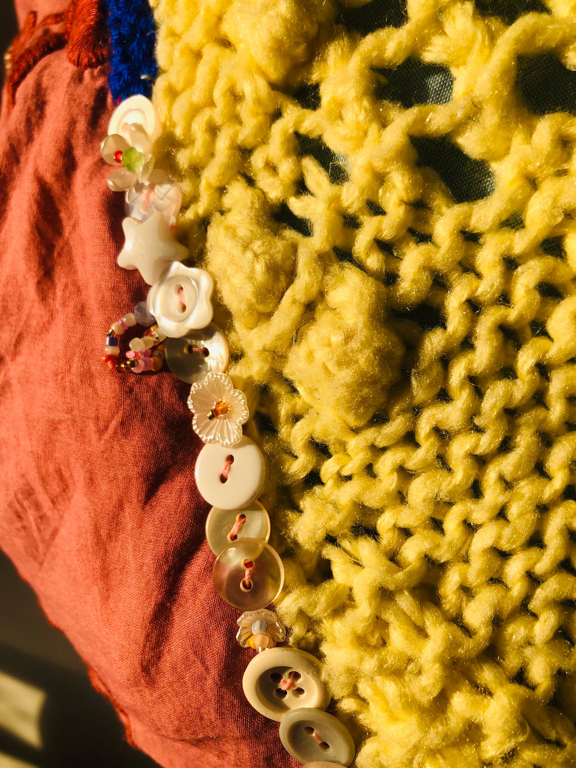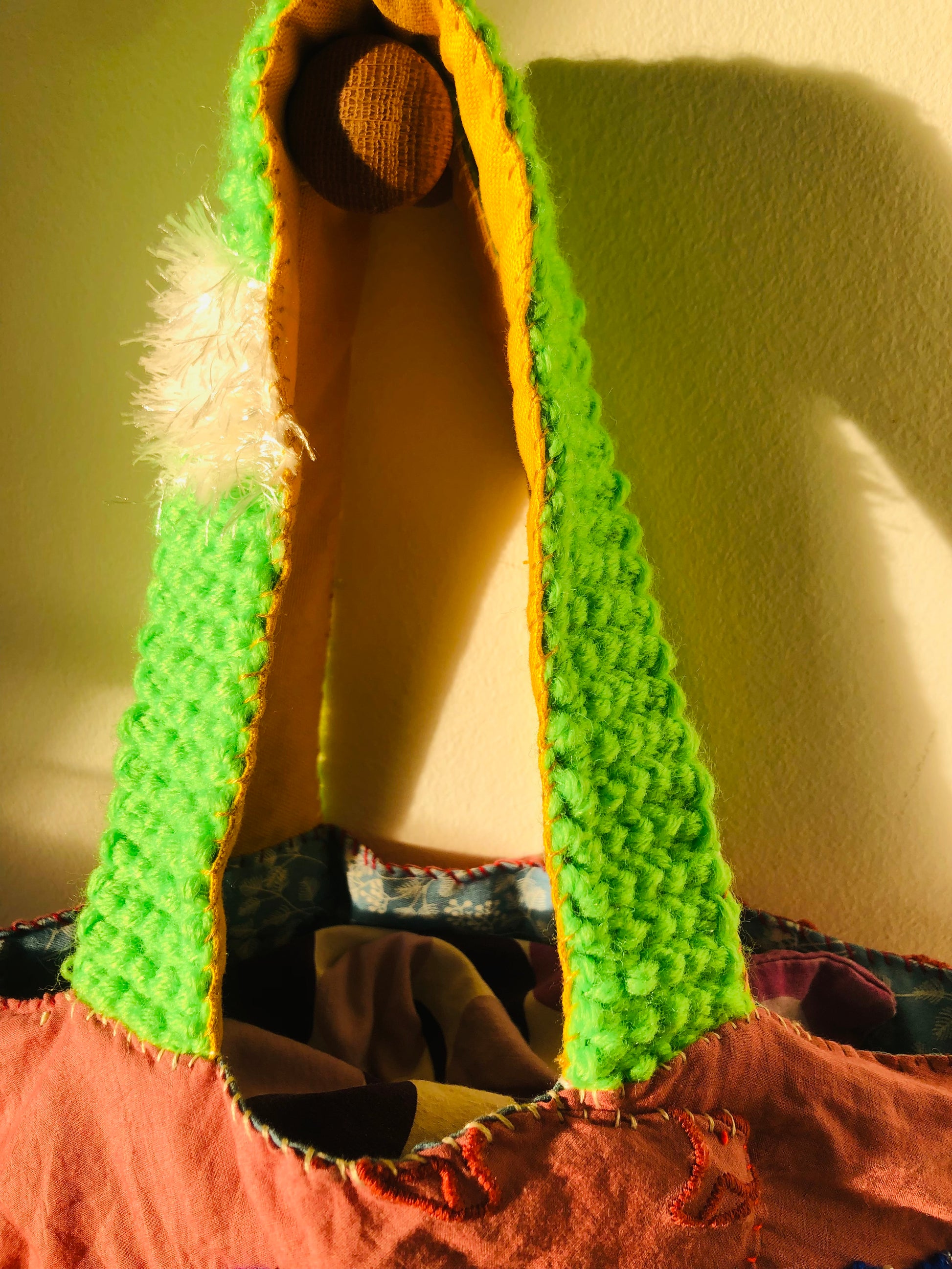 ⭕️持ち手はニット。アフガン編みで編みました。