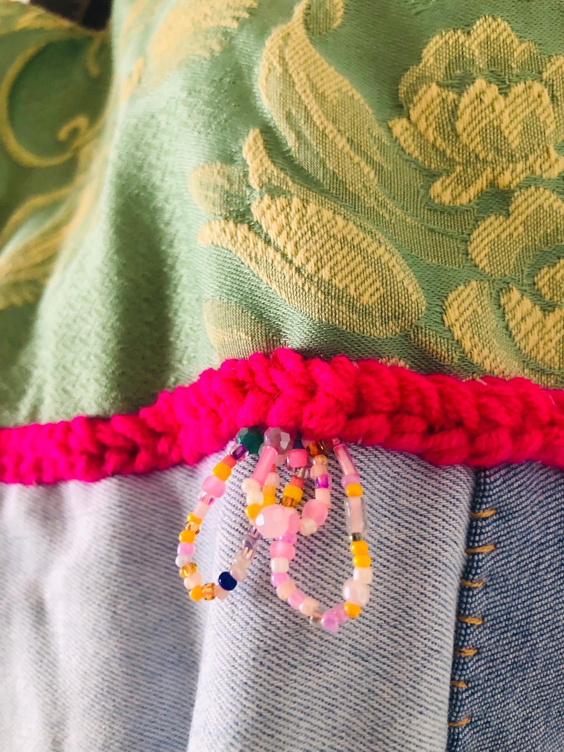 さまざまな種類の生地を使用しています。いくつか色落ちする素材もございます。(革部分など)