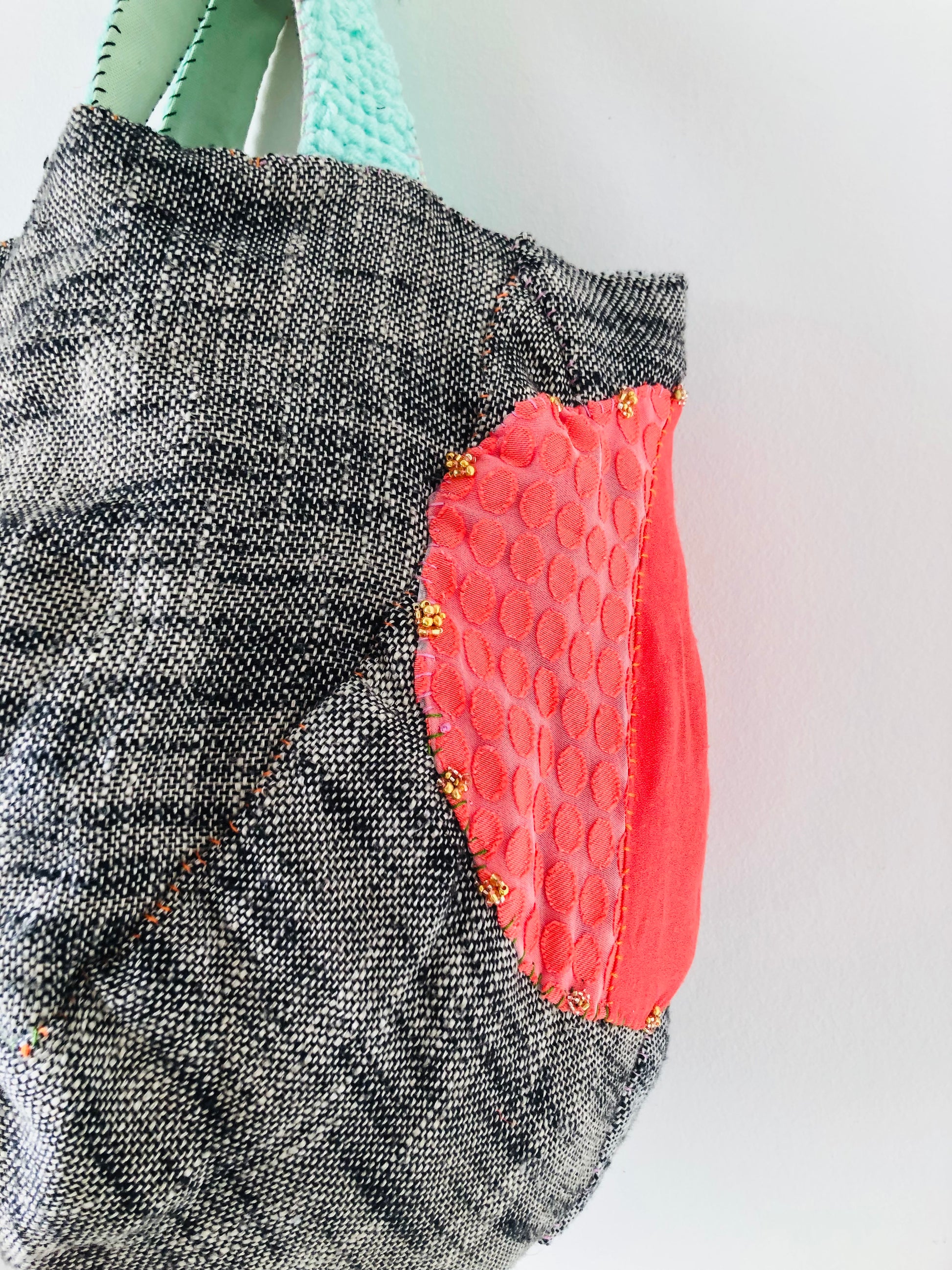 手縫いと手編みで仕上げたバッグです🧵