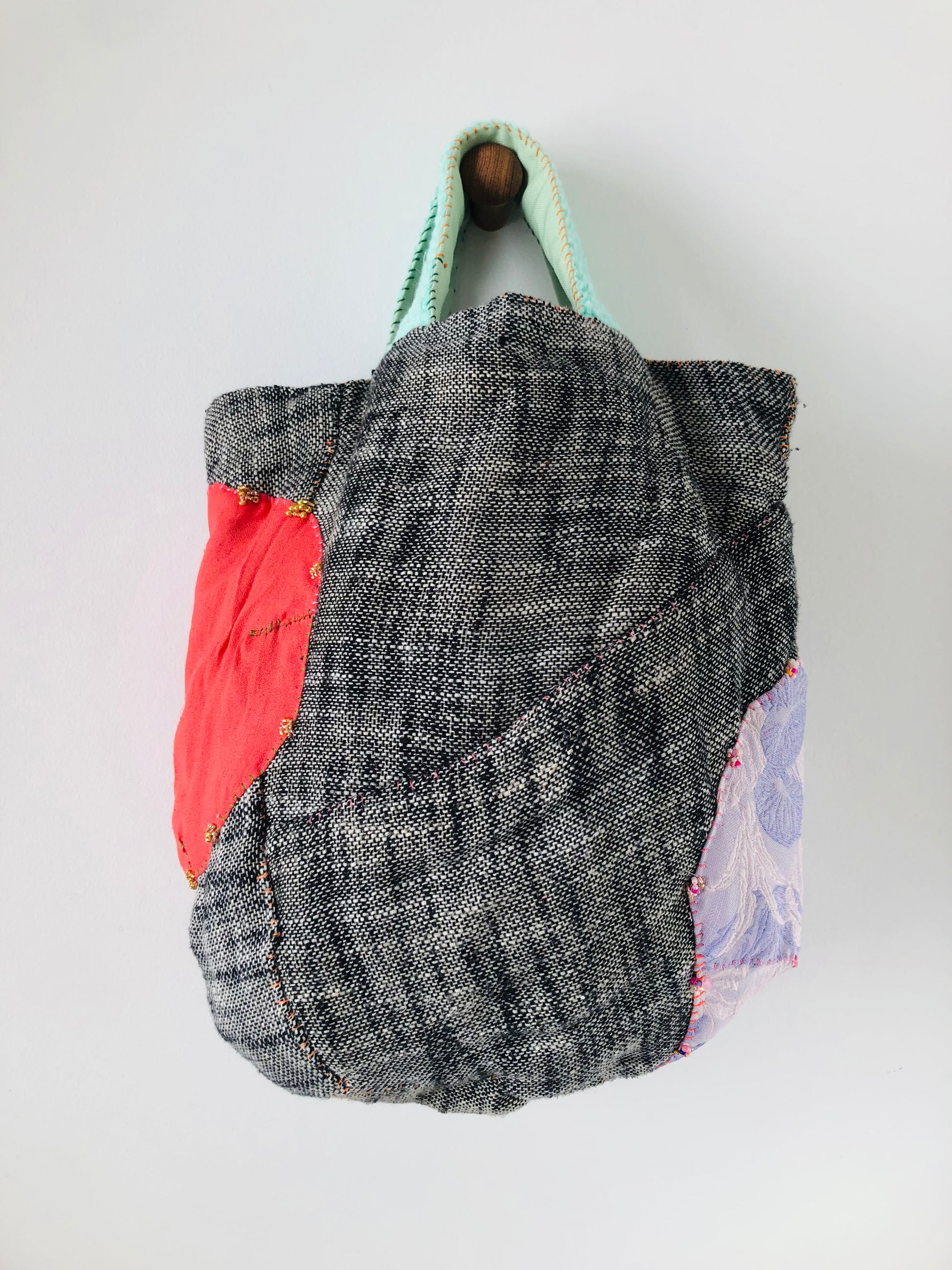 Bag 手縫いのバッグ 布製 トートバッグ スローファッション ワンハンドルバッグ ハンドメイド 2383