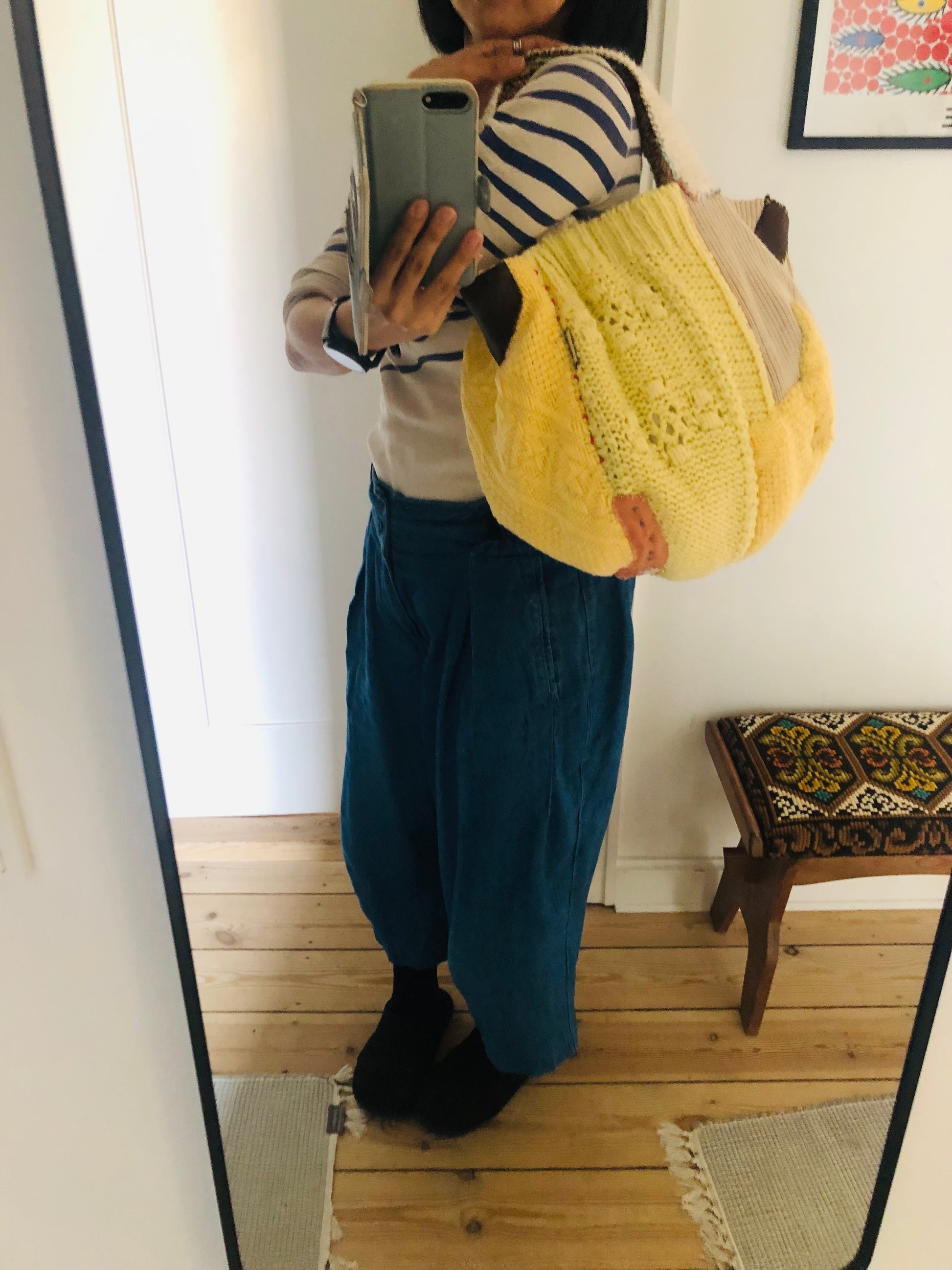 Bag 手縫いのバッグ 布製 トートバッグ スローファッション ワンハンドルバッグ ハンドメイド 2409