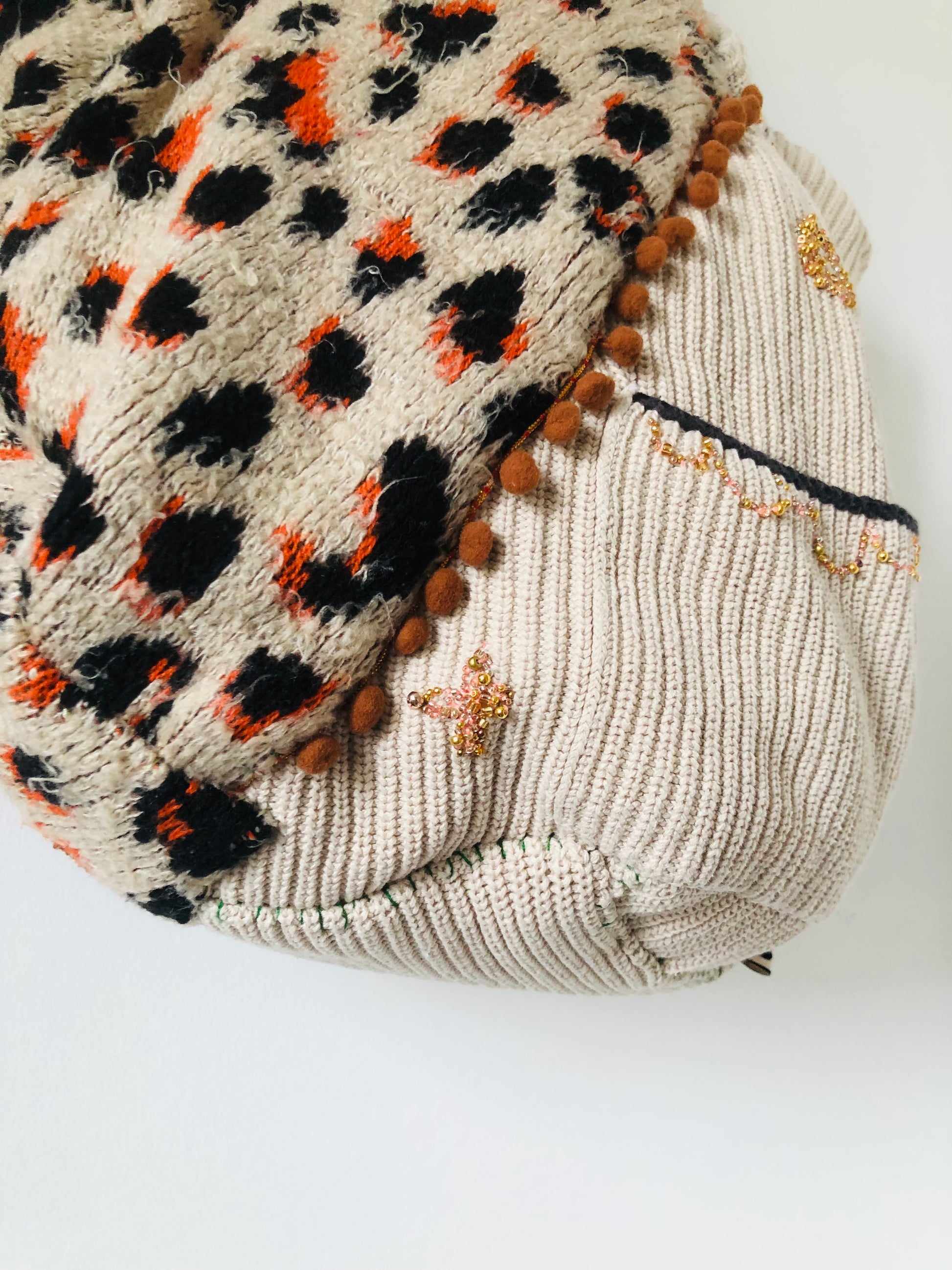 さまざまな種類の生地を使用しています。いくつか色落ちする素材もございます。(革部分など)