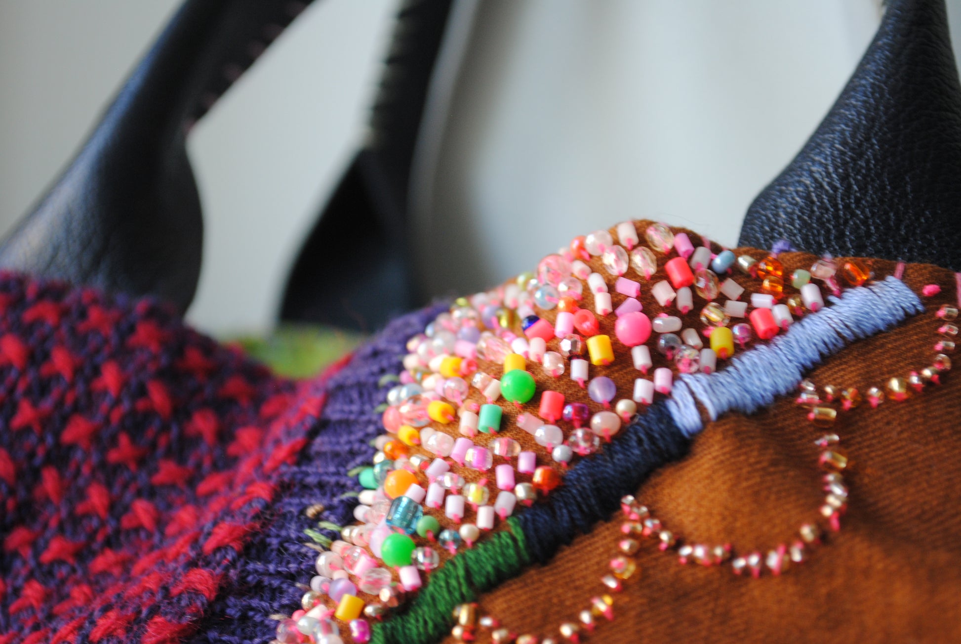 さまざまな種類の生地を使用しています。いくつか色落ちする素材もございます。(革部分など)