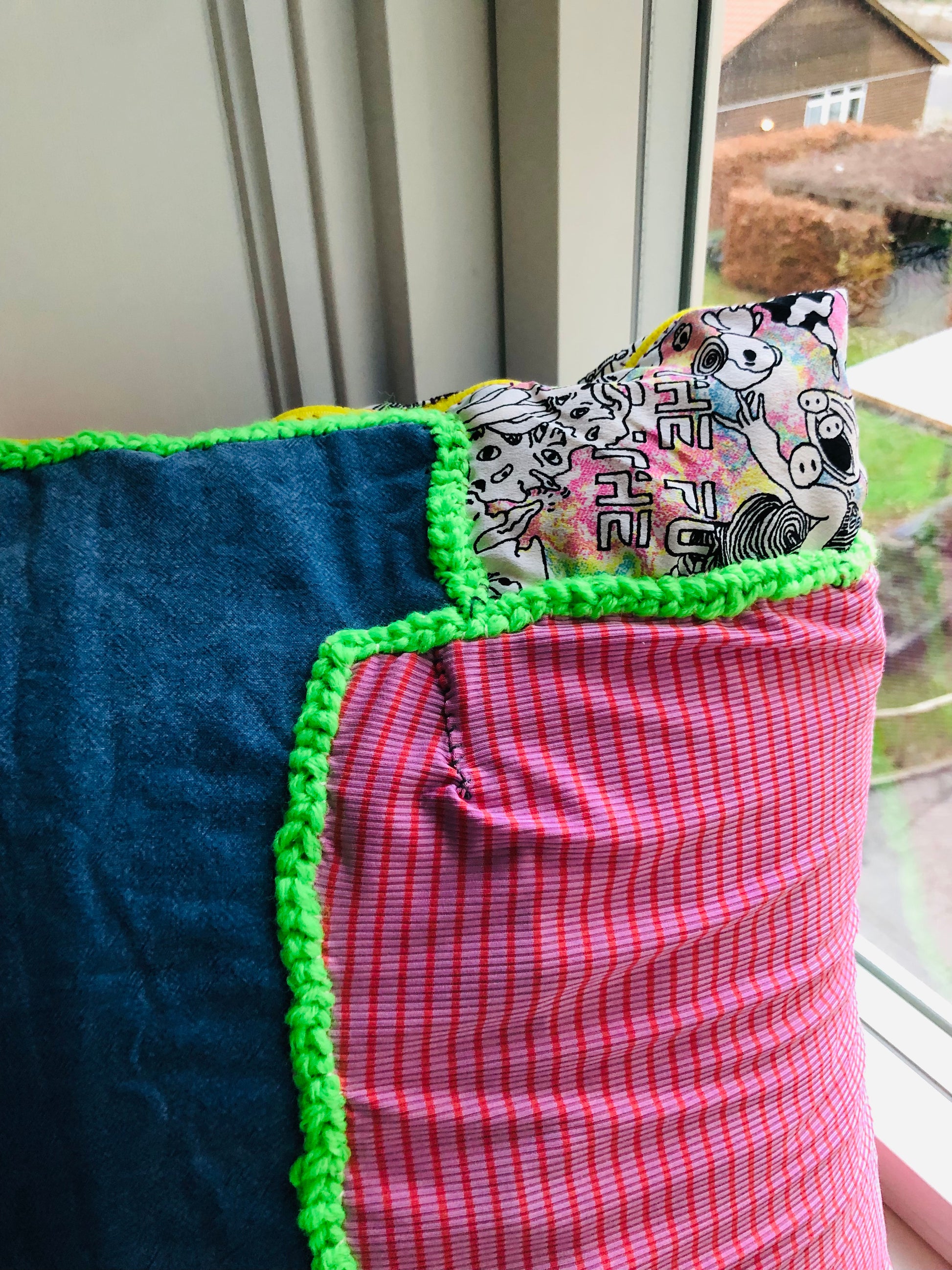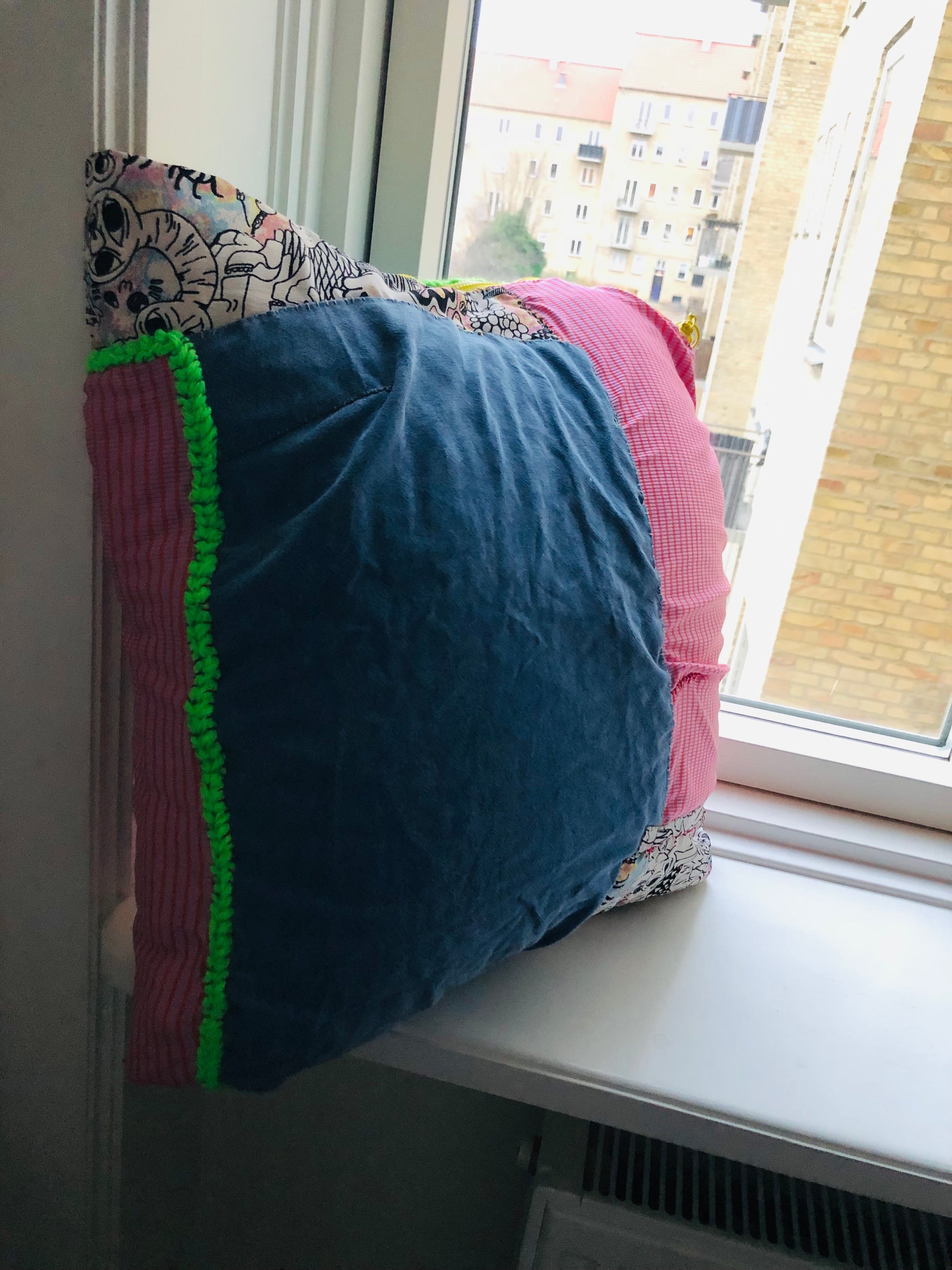 ほとんど手縫いで縫い上げたクッションカバーです🧵